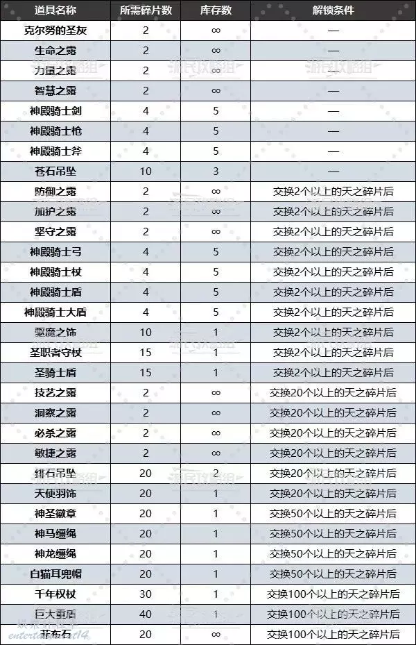 天之碎片可兌換道具