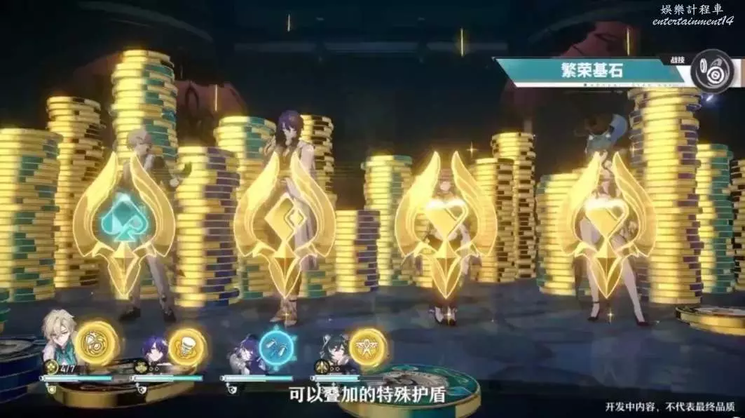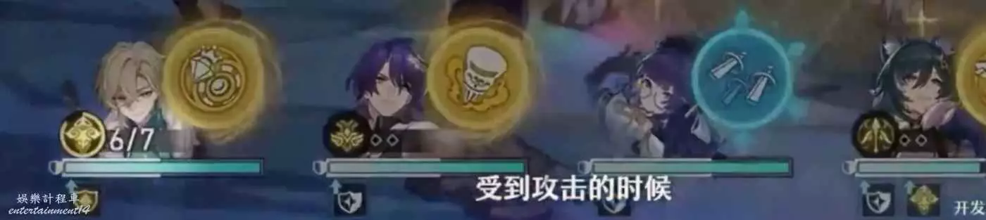 ①隊友帶著護盾受到攻擊時,砂金疊加【盲注】