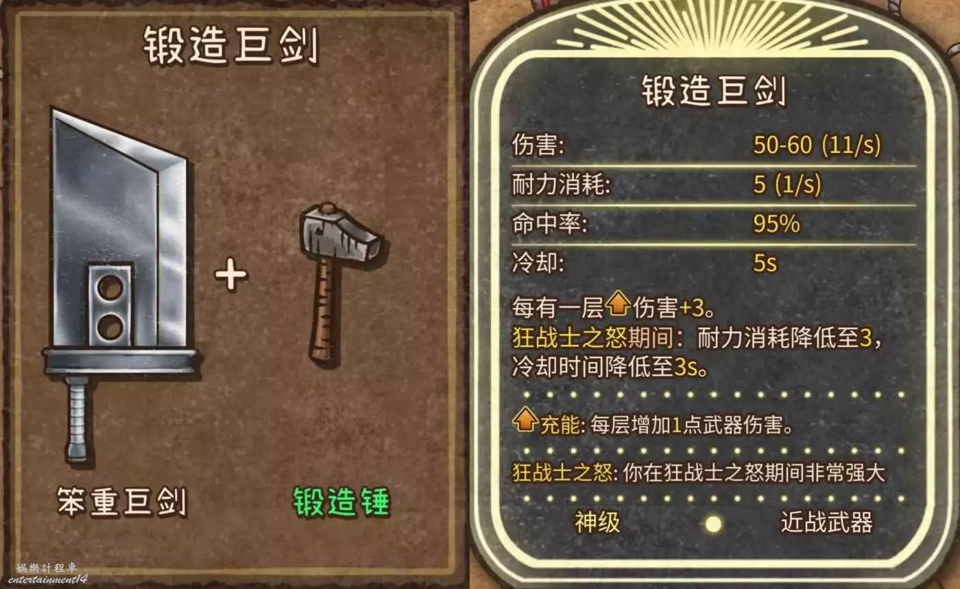 4.鍛造巨劍(神級,近戰武器):笨重巨劍+鍛造錘