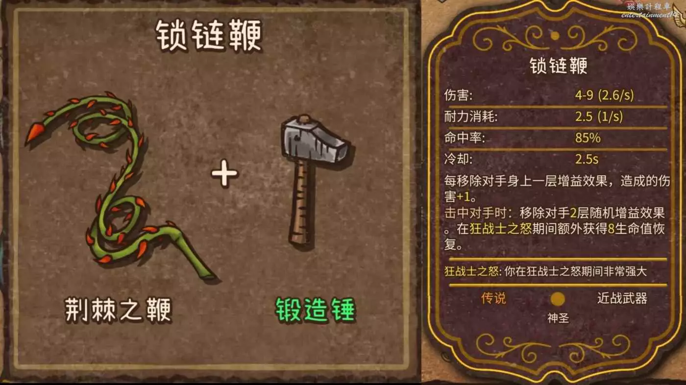 5.鎖鏈鞭(傳說,神聖,近戰武器):荊棘之鞭+鍛造錘