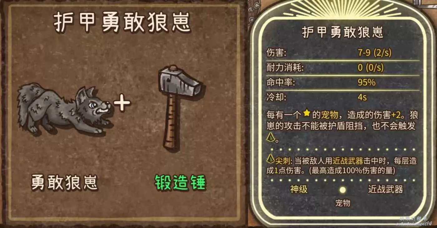 9.護甲勇敢狼崽(神級,寵物,近戰武器):勇敢狼崽+鍛造錘