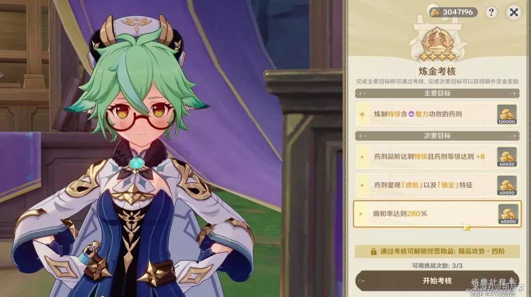 此考核任務會在第26週期出現,也是最後一個煉金考核;推薦儘量達成更多的要求以獲得更多資金。