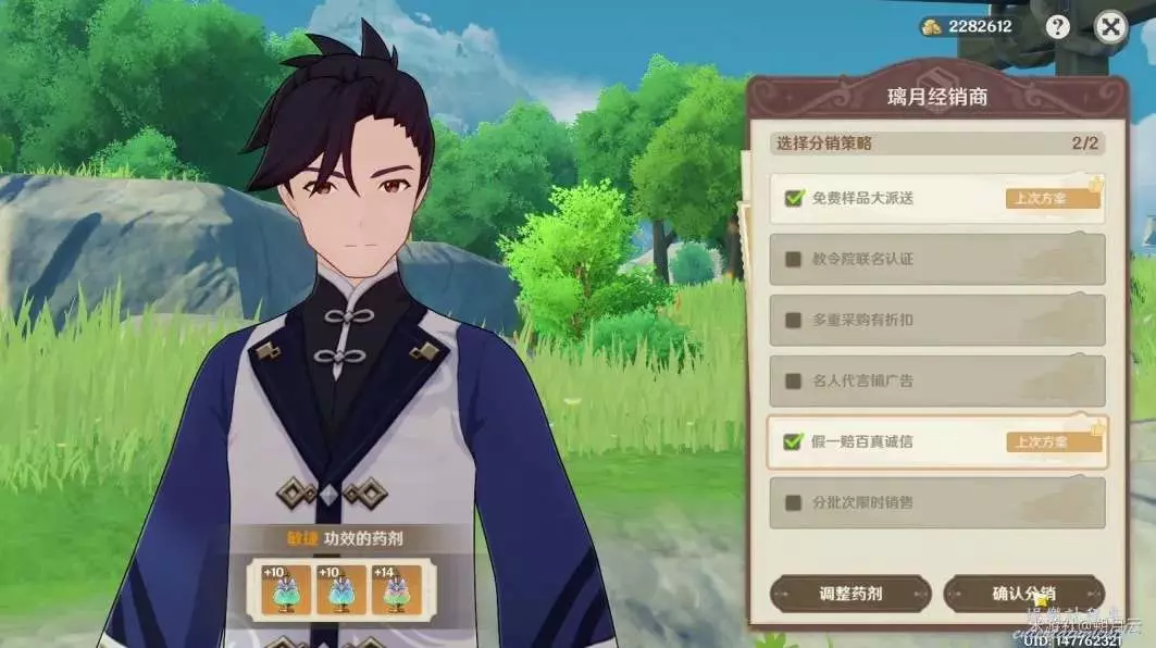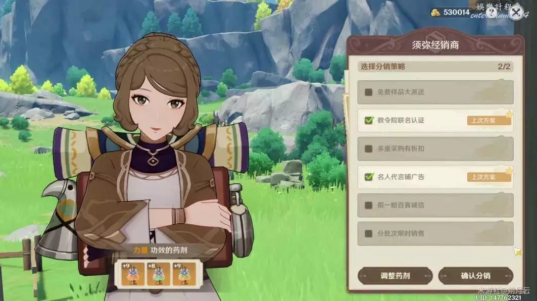 對於須彌經銷商,最佳的分銷策略是“名人代言鋪廣告”與“教令院聯名認證”: