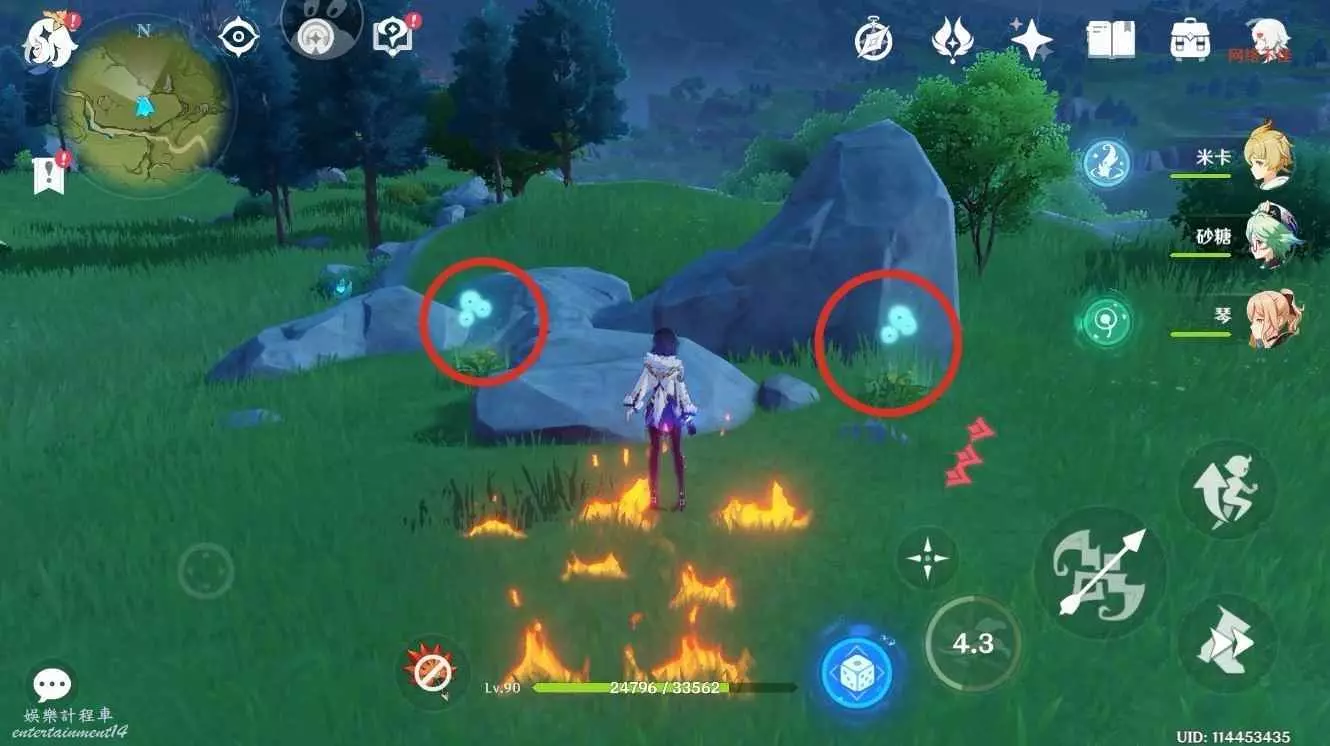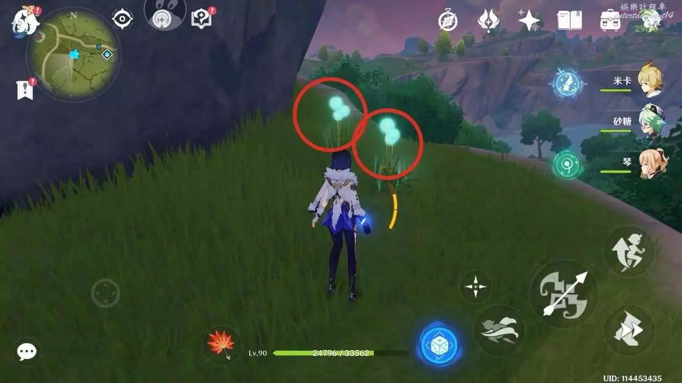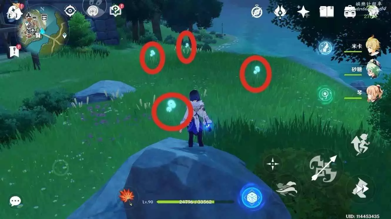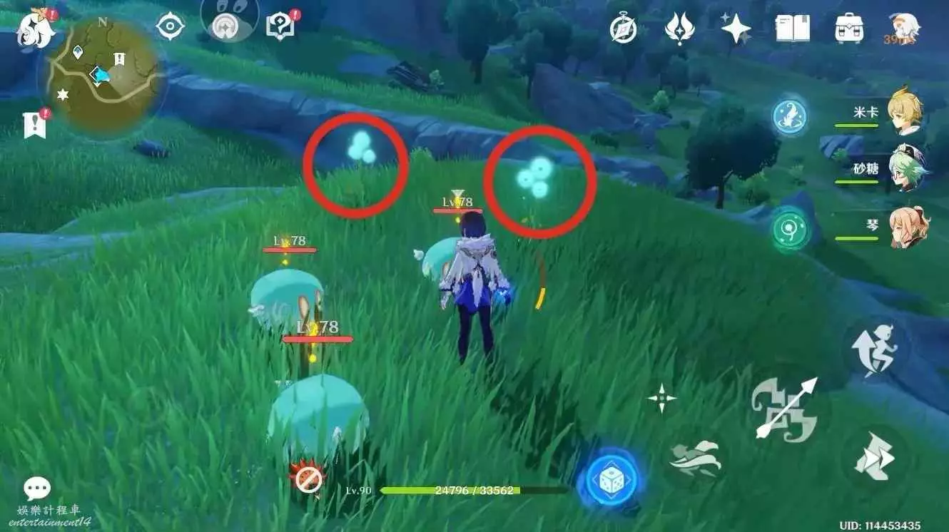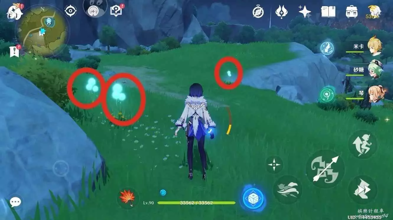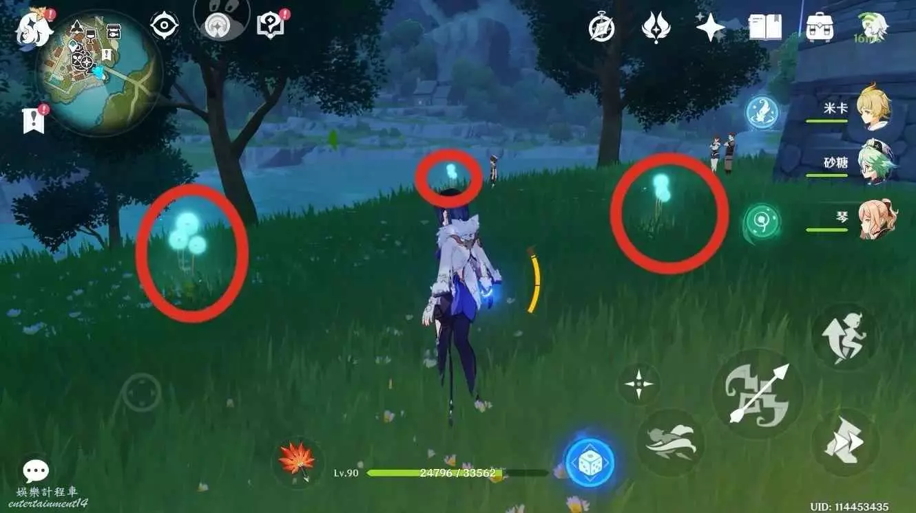 最好還可以帶可莉和米卡,這兩個人的固有天賦是在小地圖顯示蒙德區域特產