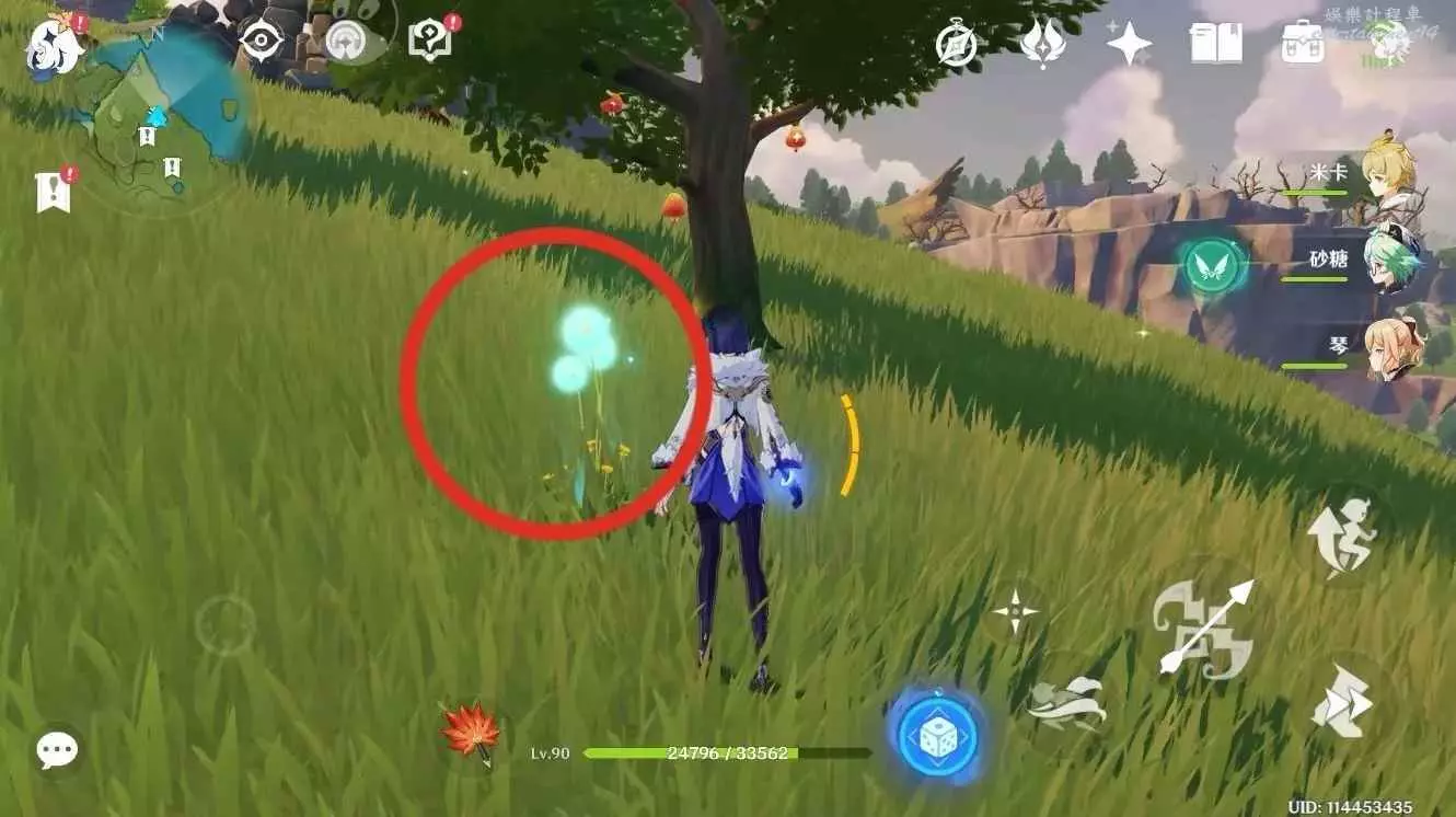 遇到蒲公英後使用風元素技能將蒲公英吹散後方可採集。