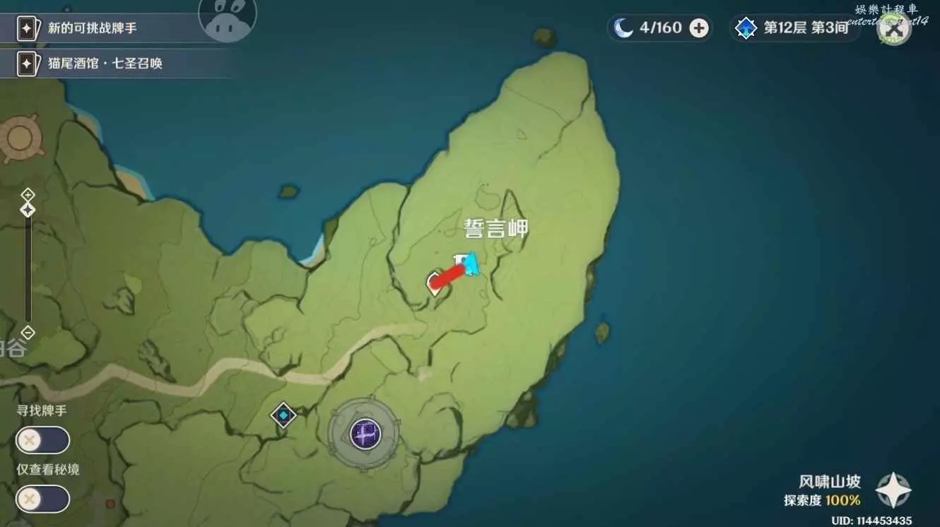 此秘境位於達達烏帕谷上方以及風起地下方,是一個元素試煉秘境傳。傳過去之後還是向西直走,爬山