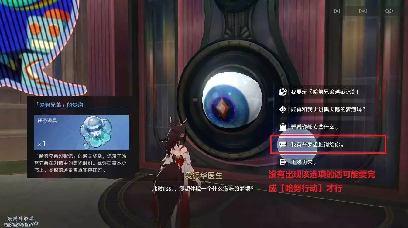 PS:如果沒有出現該選項的話,可能需要【小小哈努行動】後獲得夢泡,之後重登再次對話。