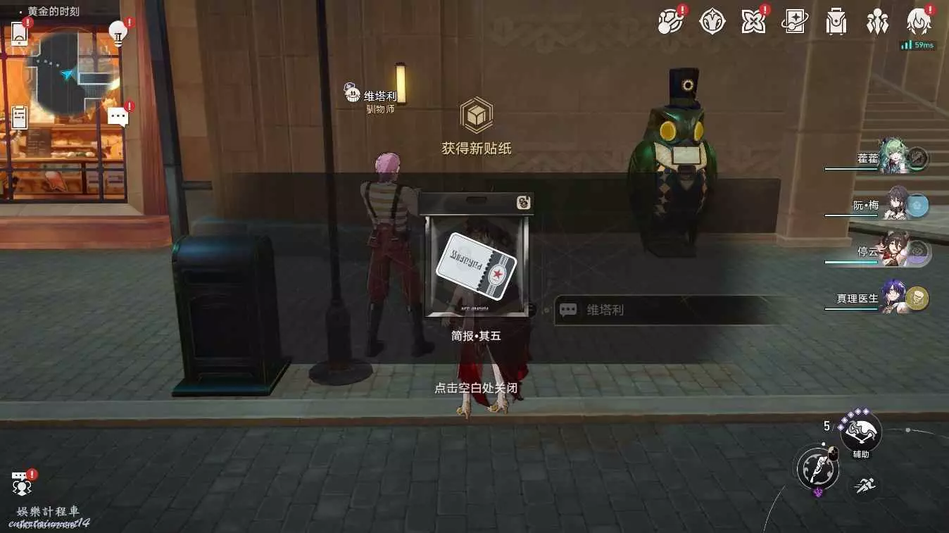 在地圖【黃金的時刻】2層與npc維塔利對話,完成對話後即可獲得貼紙“簡報·其五”。