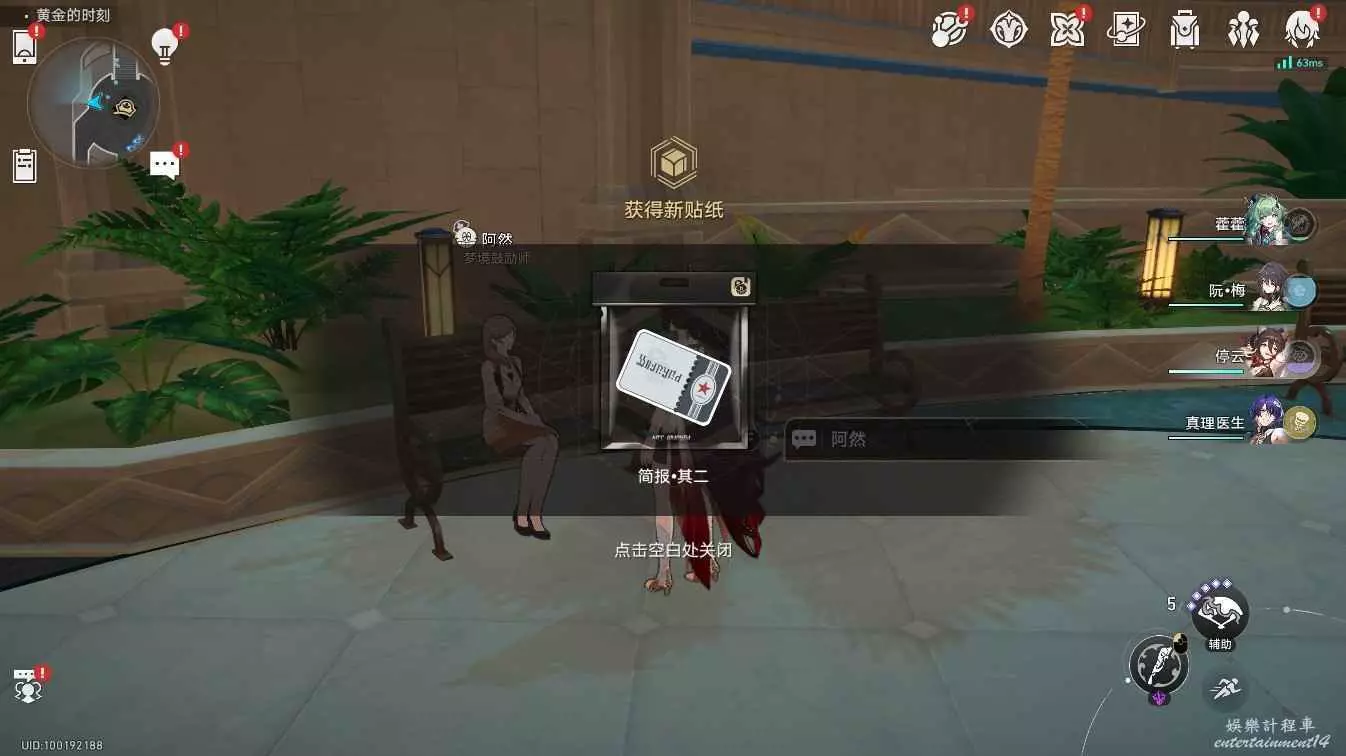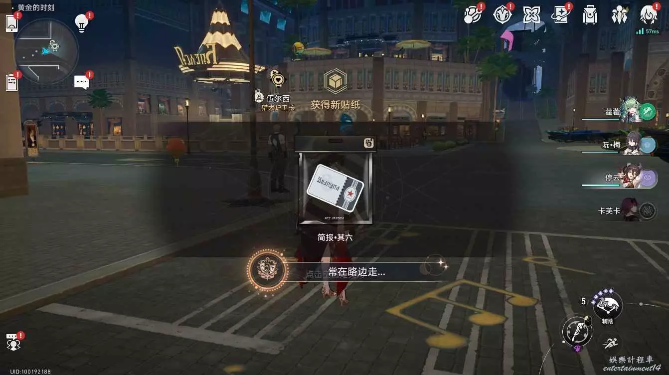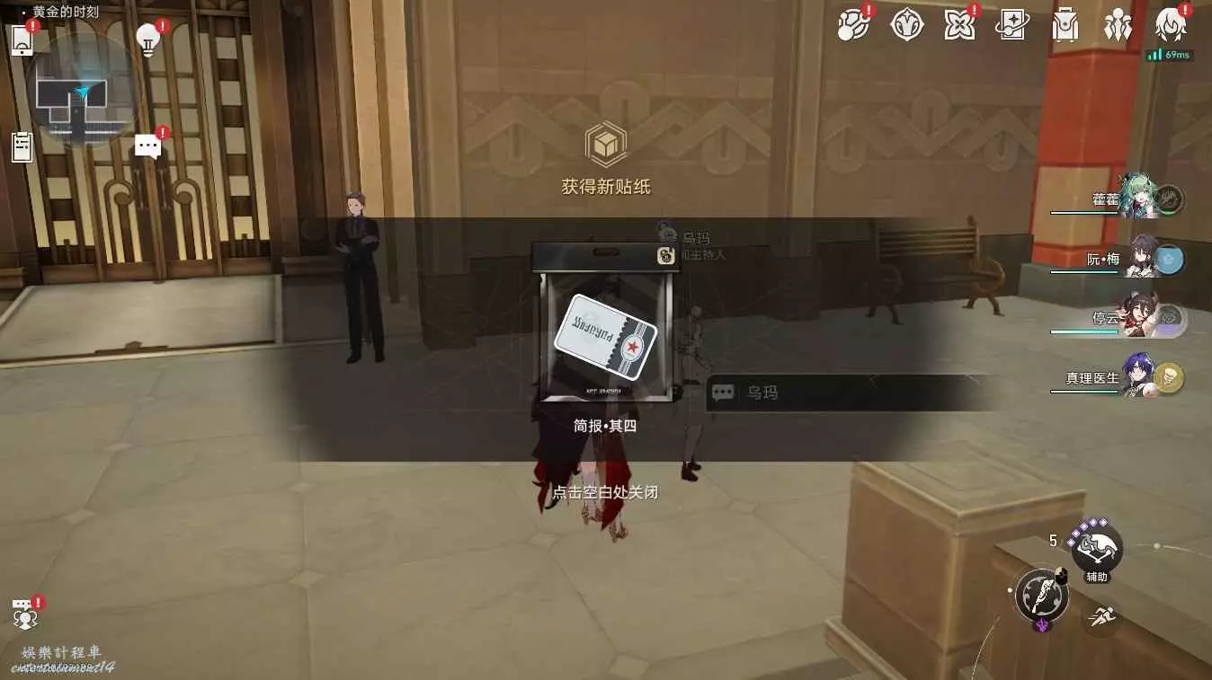 在地圖【黃金的時刻】2層與npc烏瑪對話,完成對話後即可獲得貼紙“簡報·其四”。