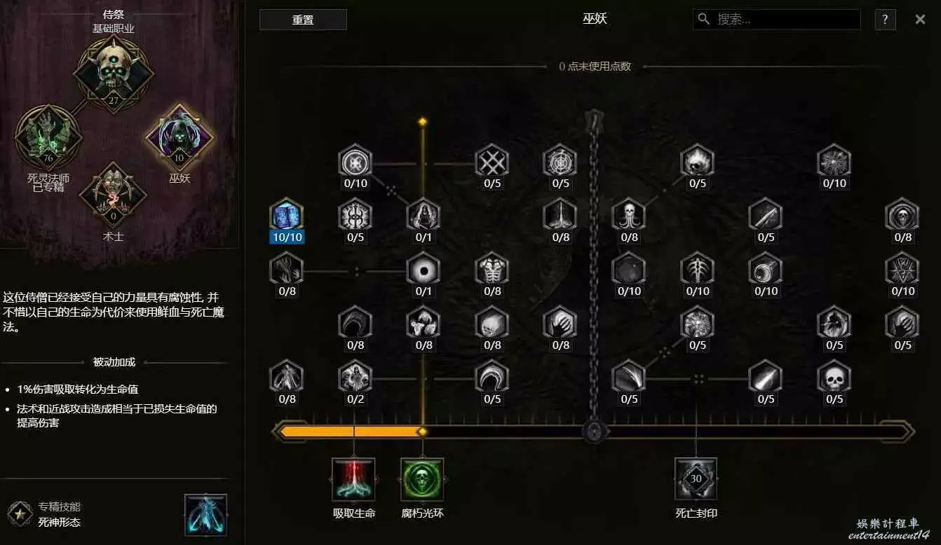 有額外的天賦點就儘量點到最下面左邊的家族之死,大量提高我們憎惡的攻擊速度。