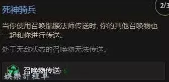 骷髏法師在本BD的作用就是被吃,然後輔助打破甲,還有就是自帶傳送技能,因為我們基本就只有6個召喚物,所以最左邊的死神騎兵只需要點兩級就可以帶著我們所有的召喚物起飛。