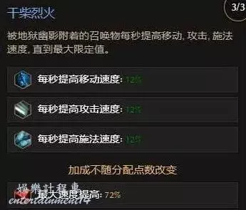 乾柴烈火和腐蝕,最大72%的攻擊速度提高,還有附近敵人每秒2層的破甲效果,大幅提高我們大哥的傷害。