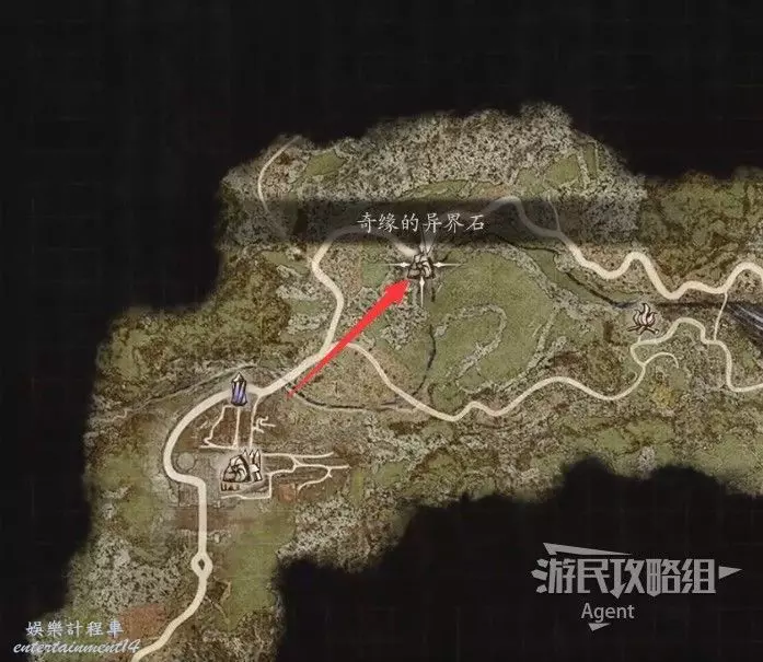 之前打通捷徑後,我當時建議你留個返回的基石在這裡,此時發揮大作用了,直接傳送過去就行。在下圖箭頭位置的高地上,山頂草窩裡撿到“初心之證”。