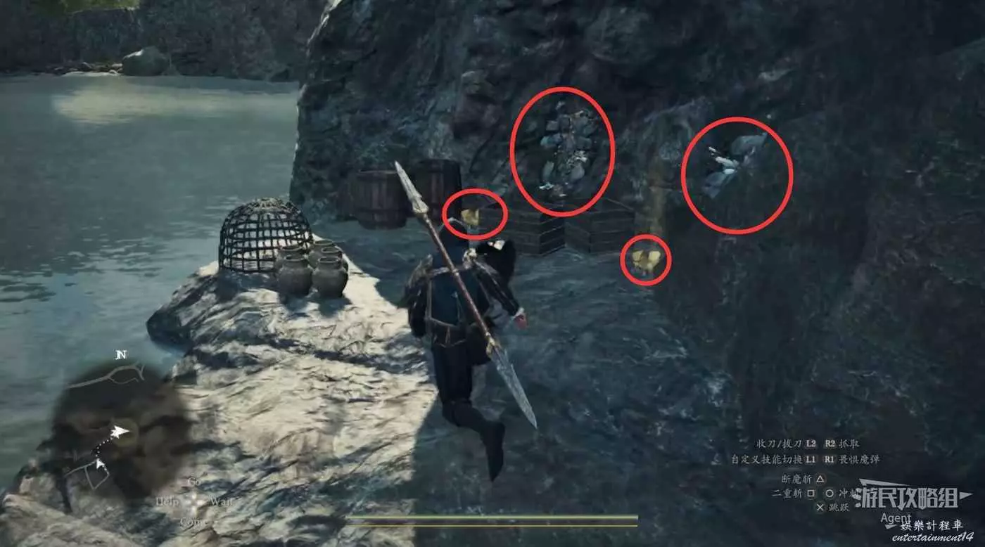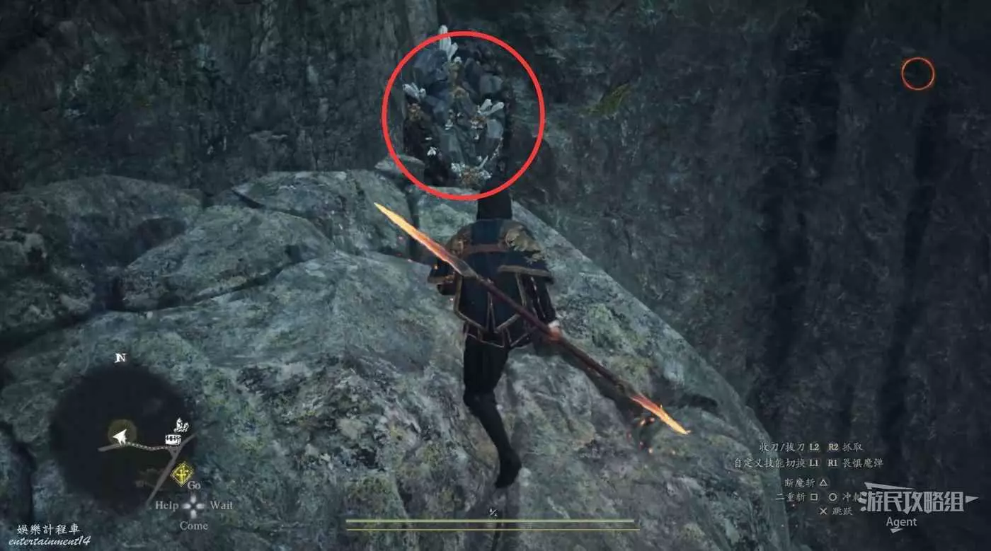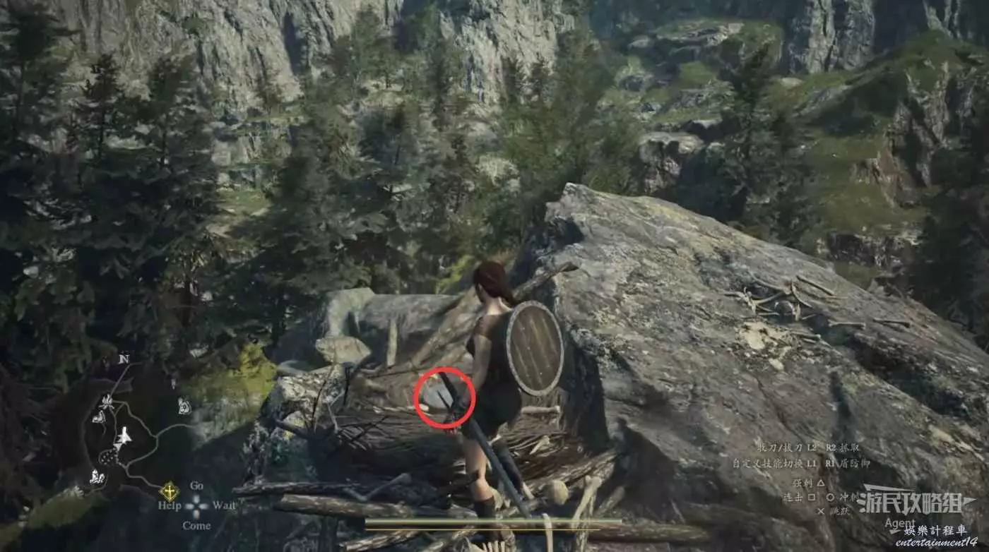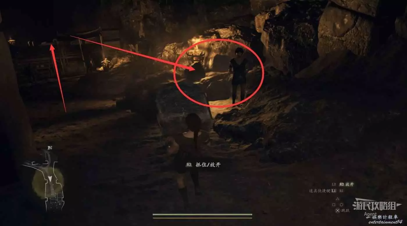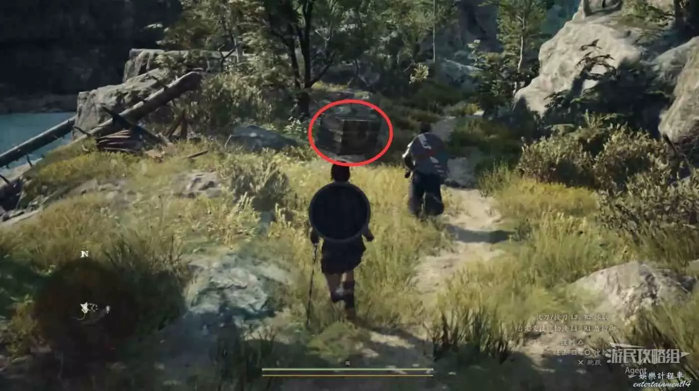 到下圖圈出的位置,可以拿到之前拿不到的寶箱,同時放下梯子解鎖回營地的捷徑。