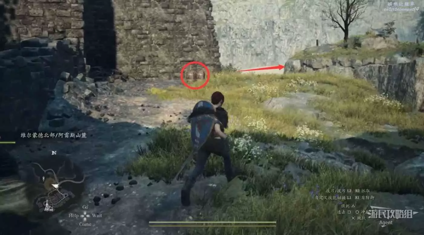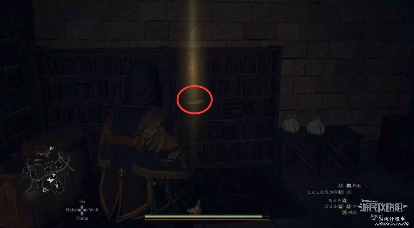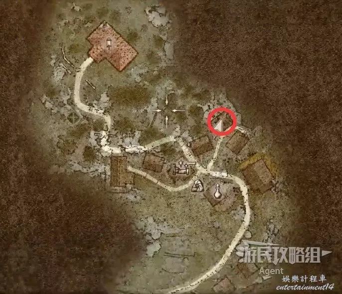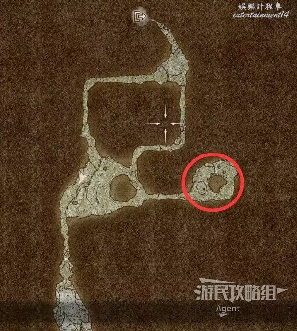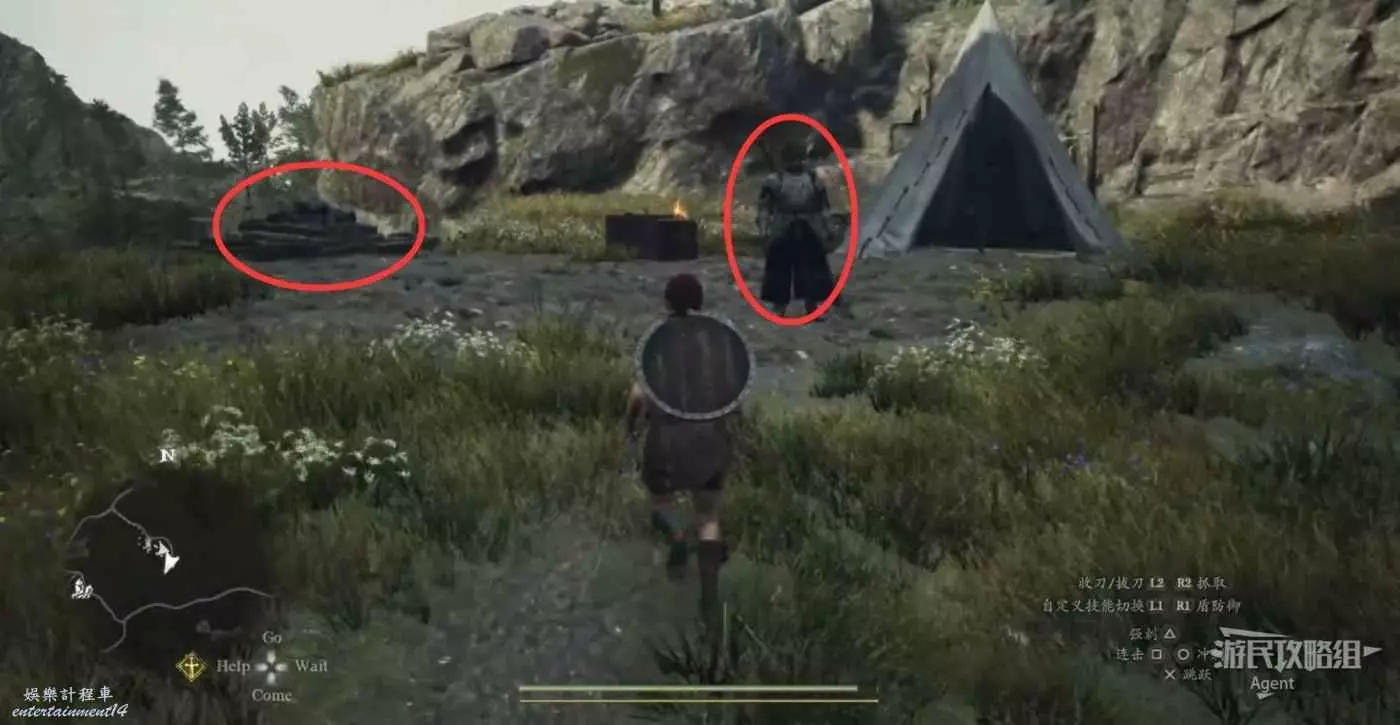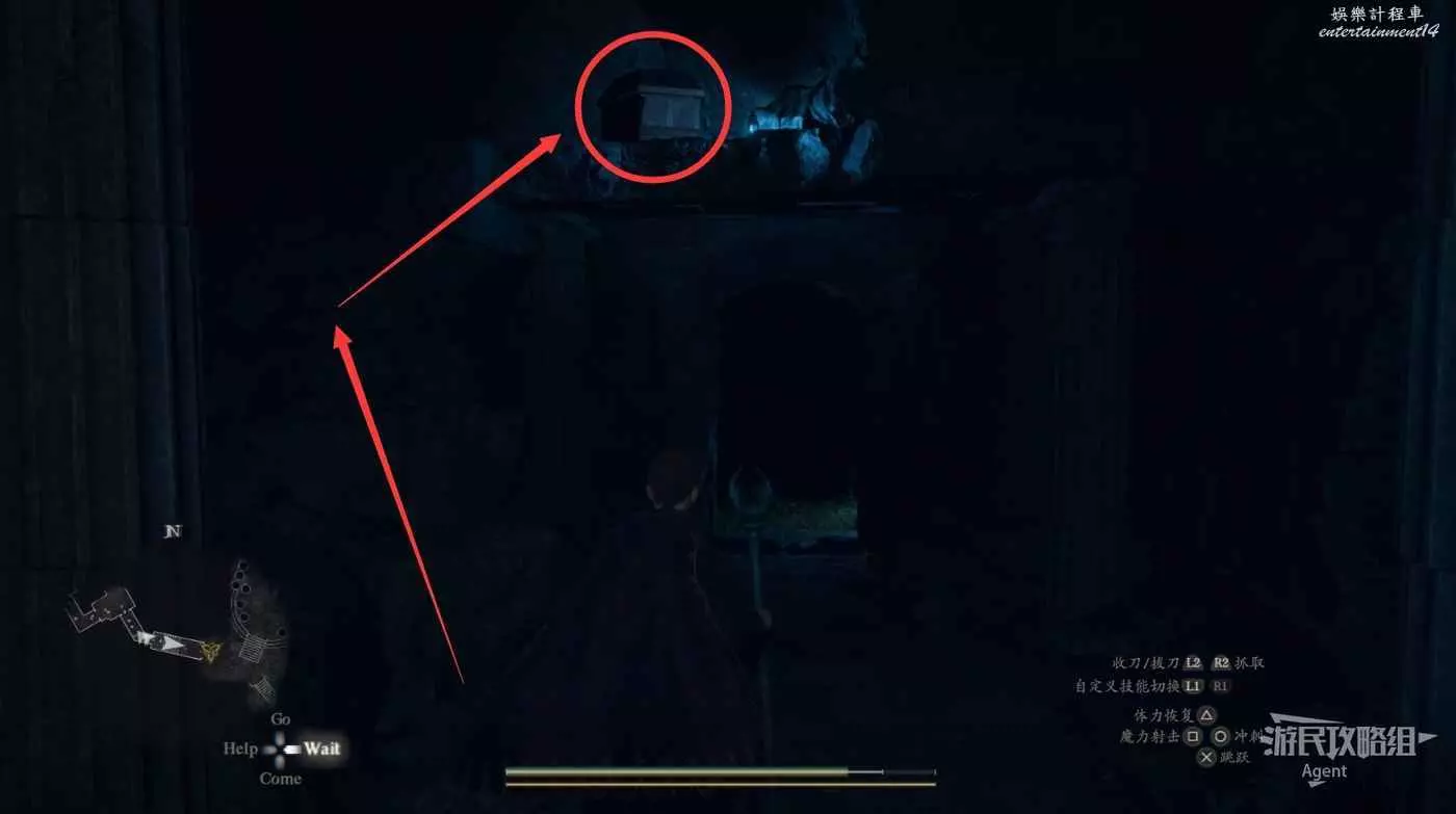 到下圖圈出的位置,可以拿到之前拿不到的寶箱,同時放下梯子解鎖回營地的捷徑。