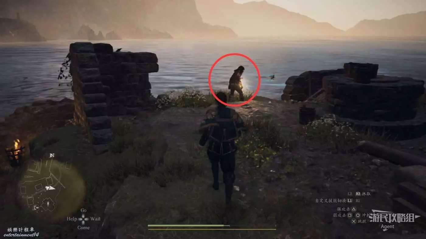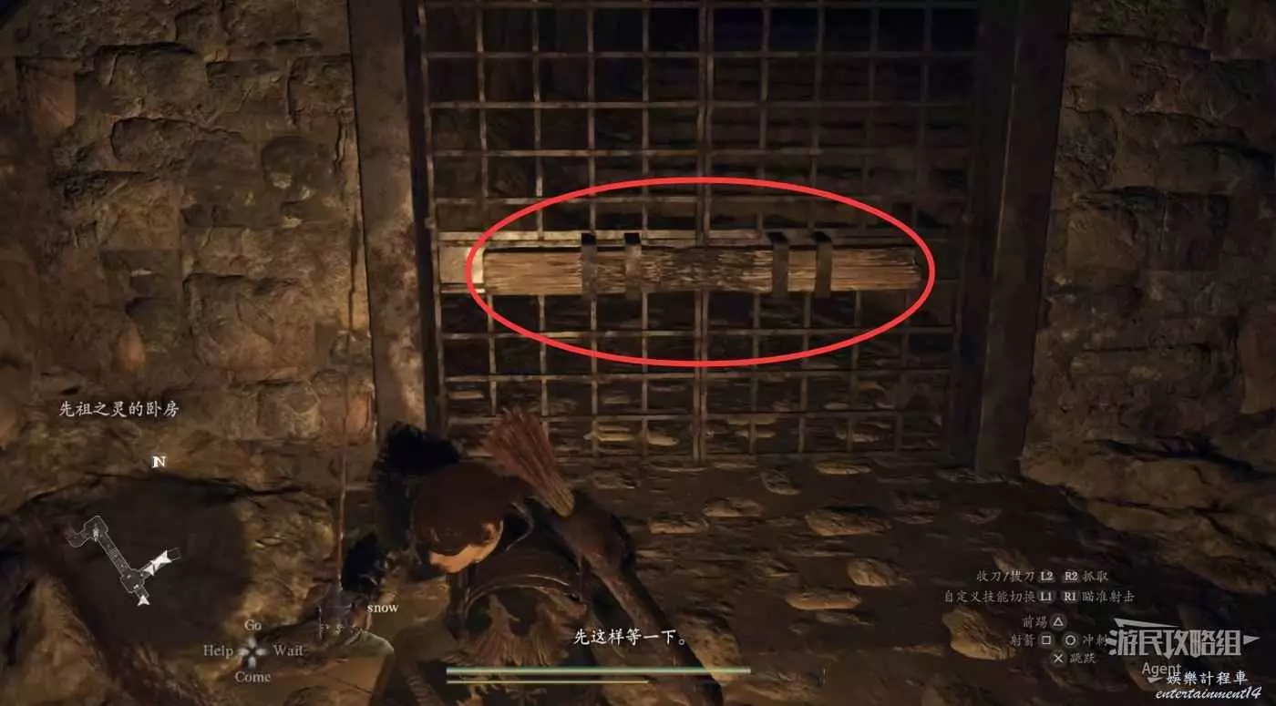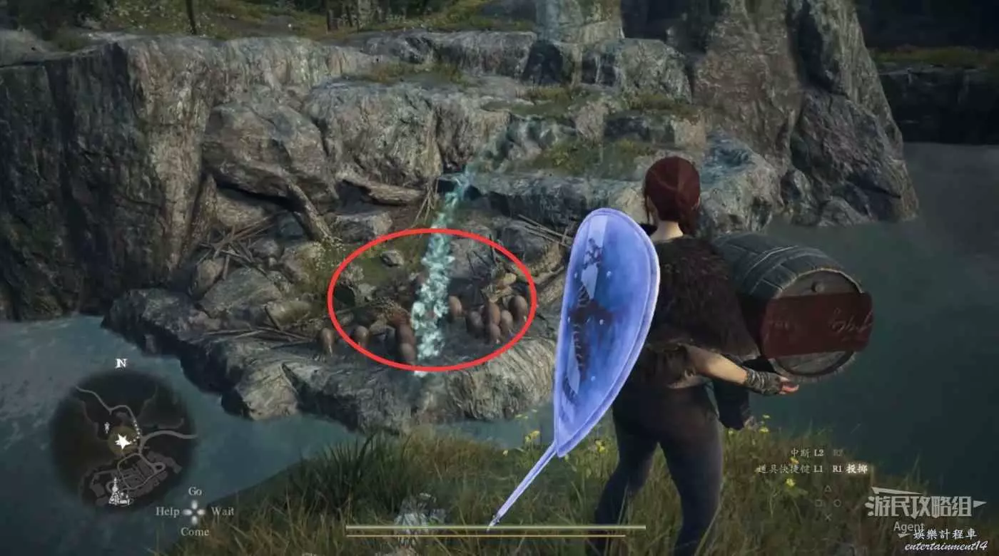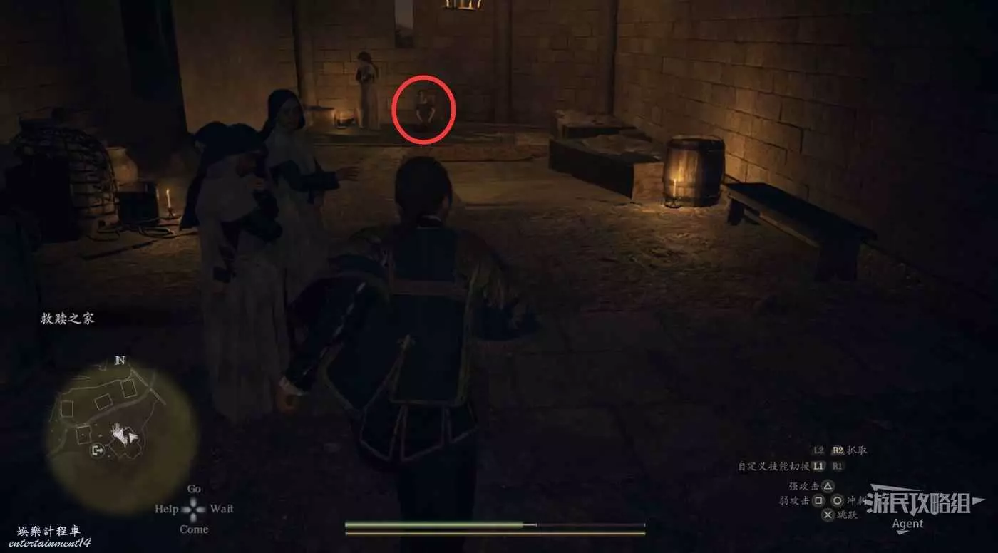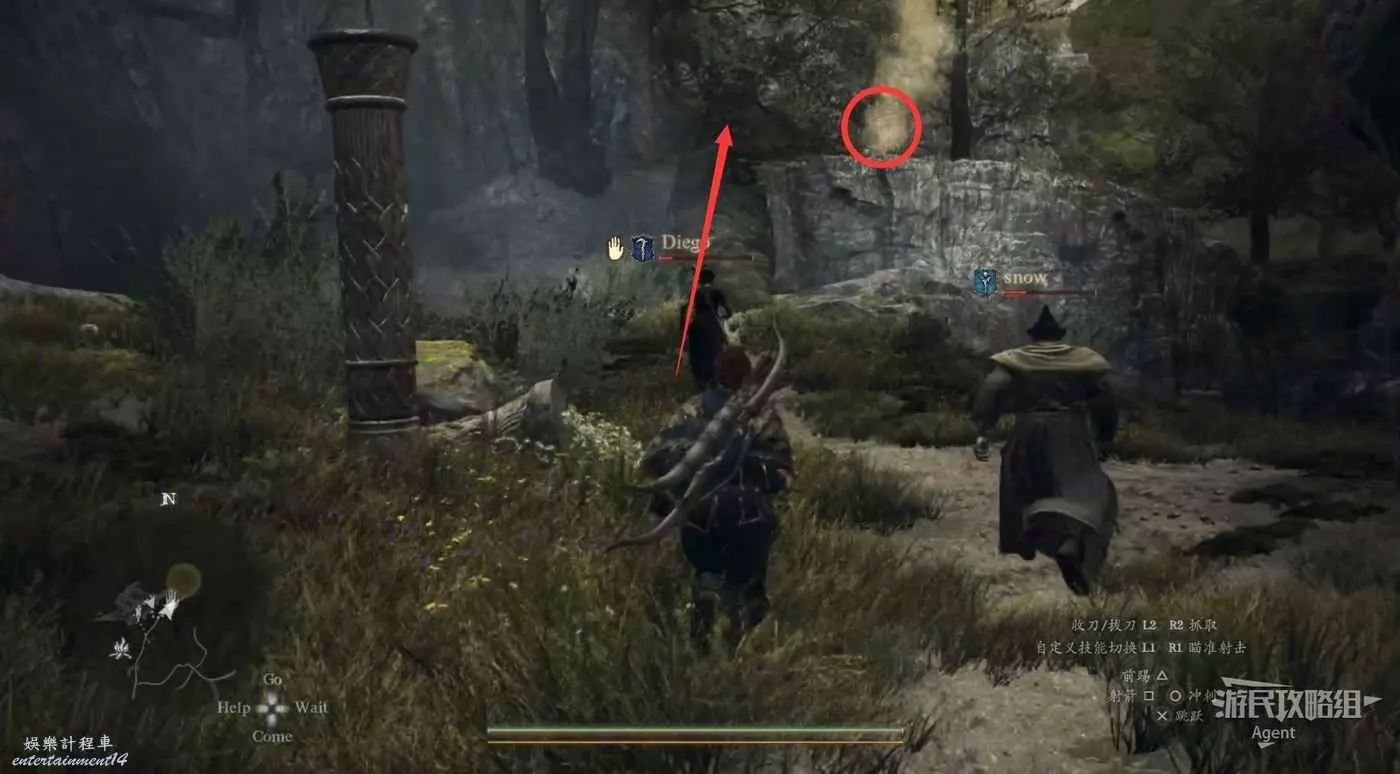 到下圖圈出的位置,可以拿到之前拿不到的寶箱,同時放下梯子解鎖回營地的捷徑。