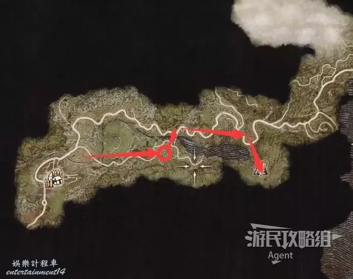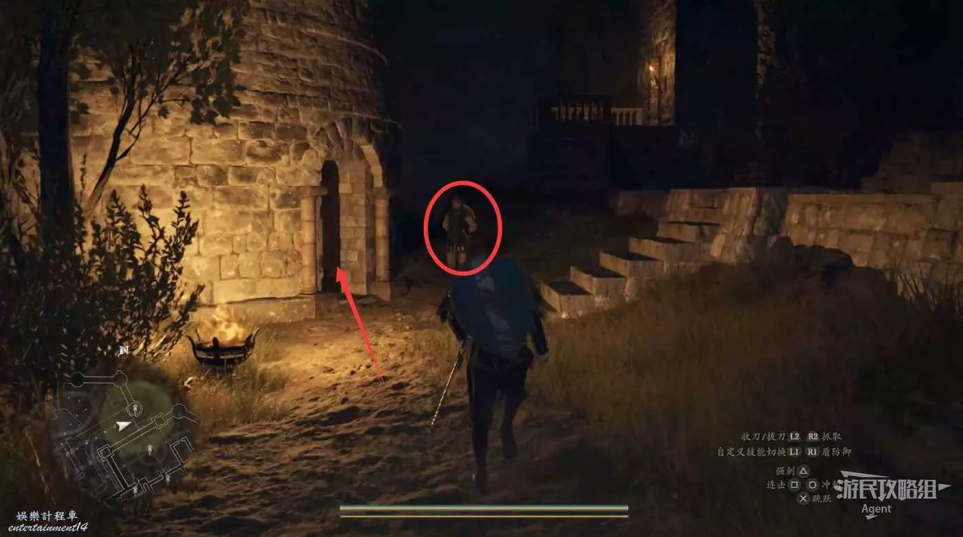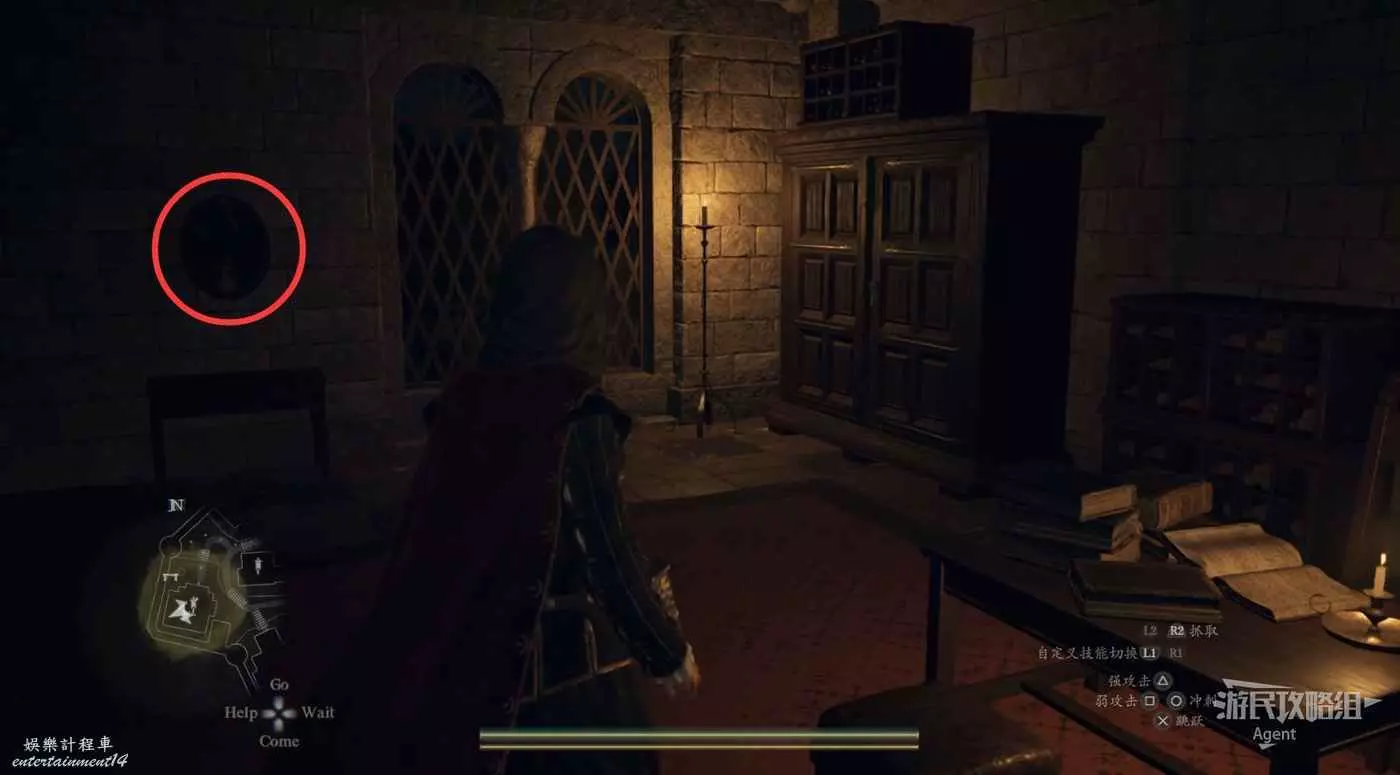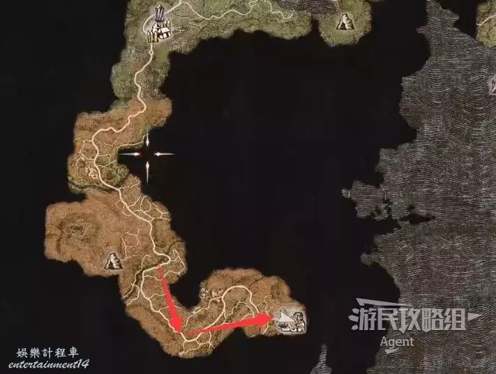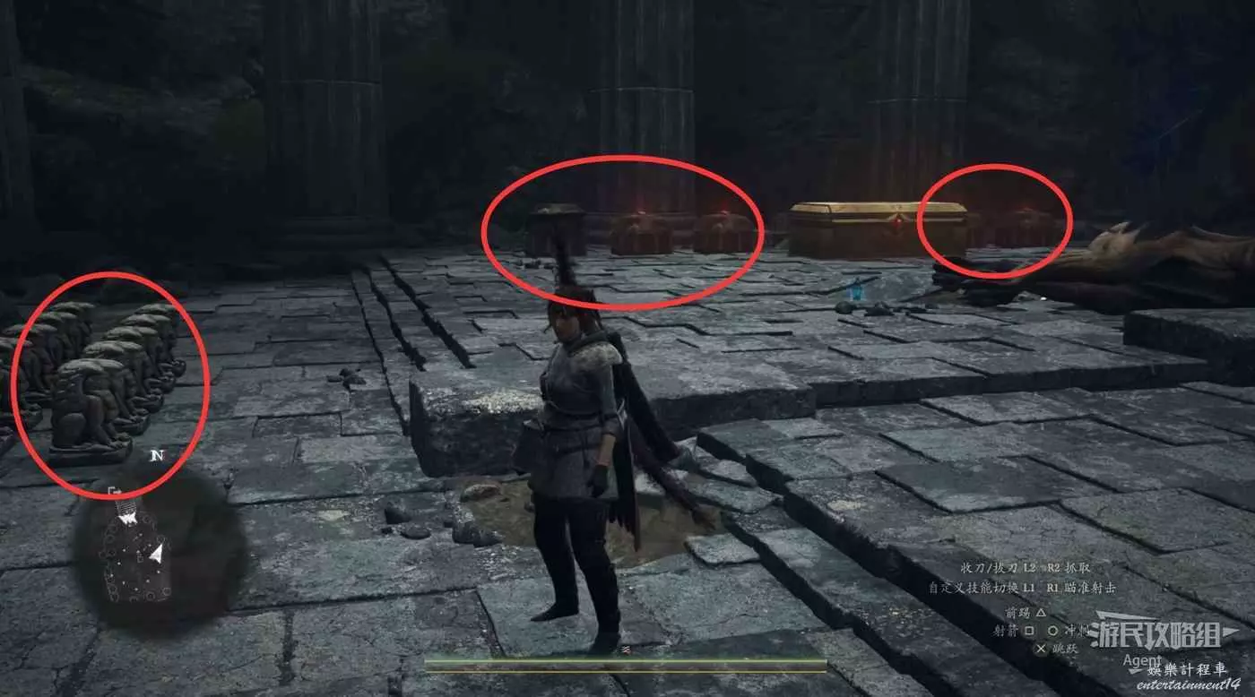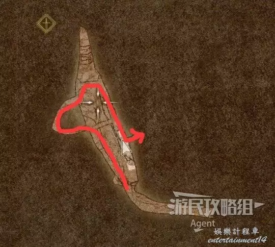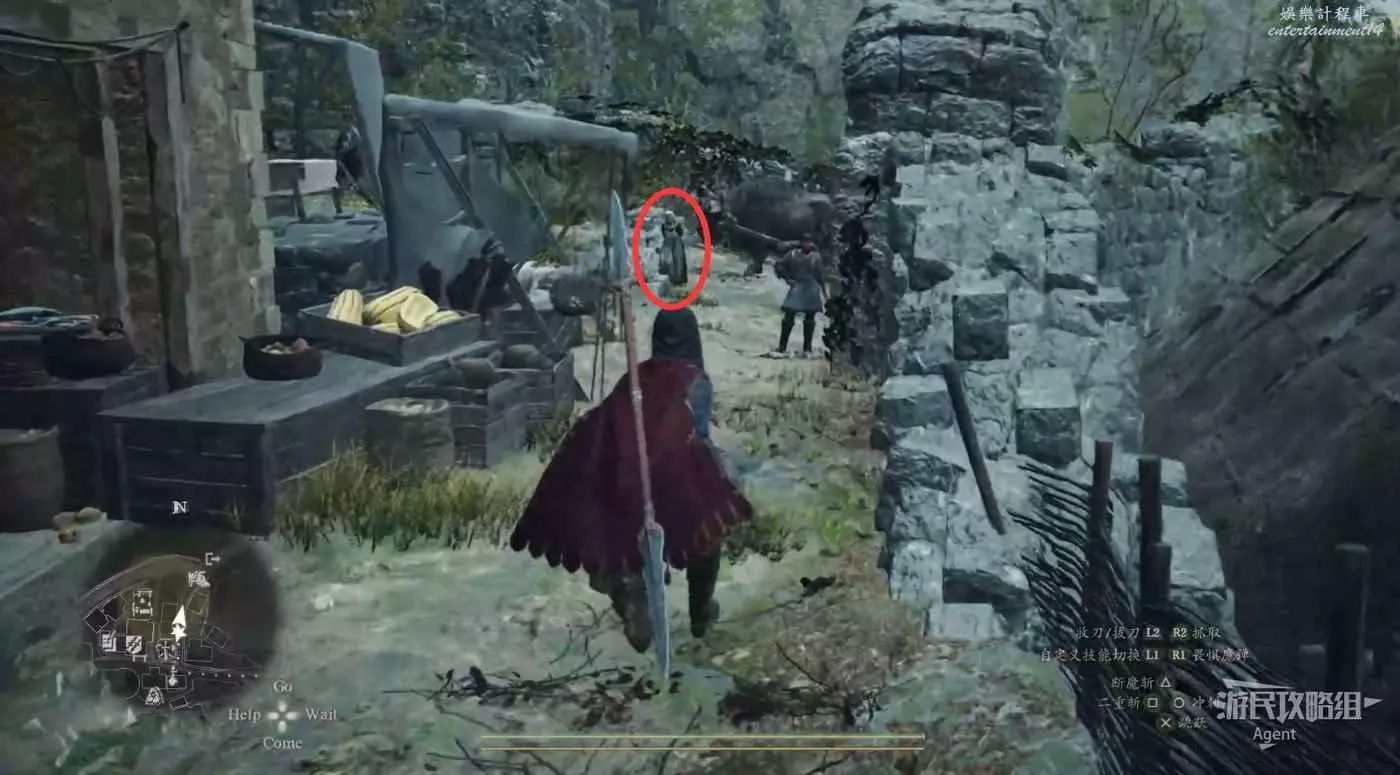 到下圖圈出的位置,可以拿到之前拿不到的寶箱,同時放下梯子解鎖回營地的捷徑。