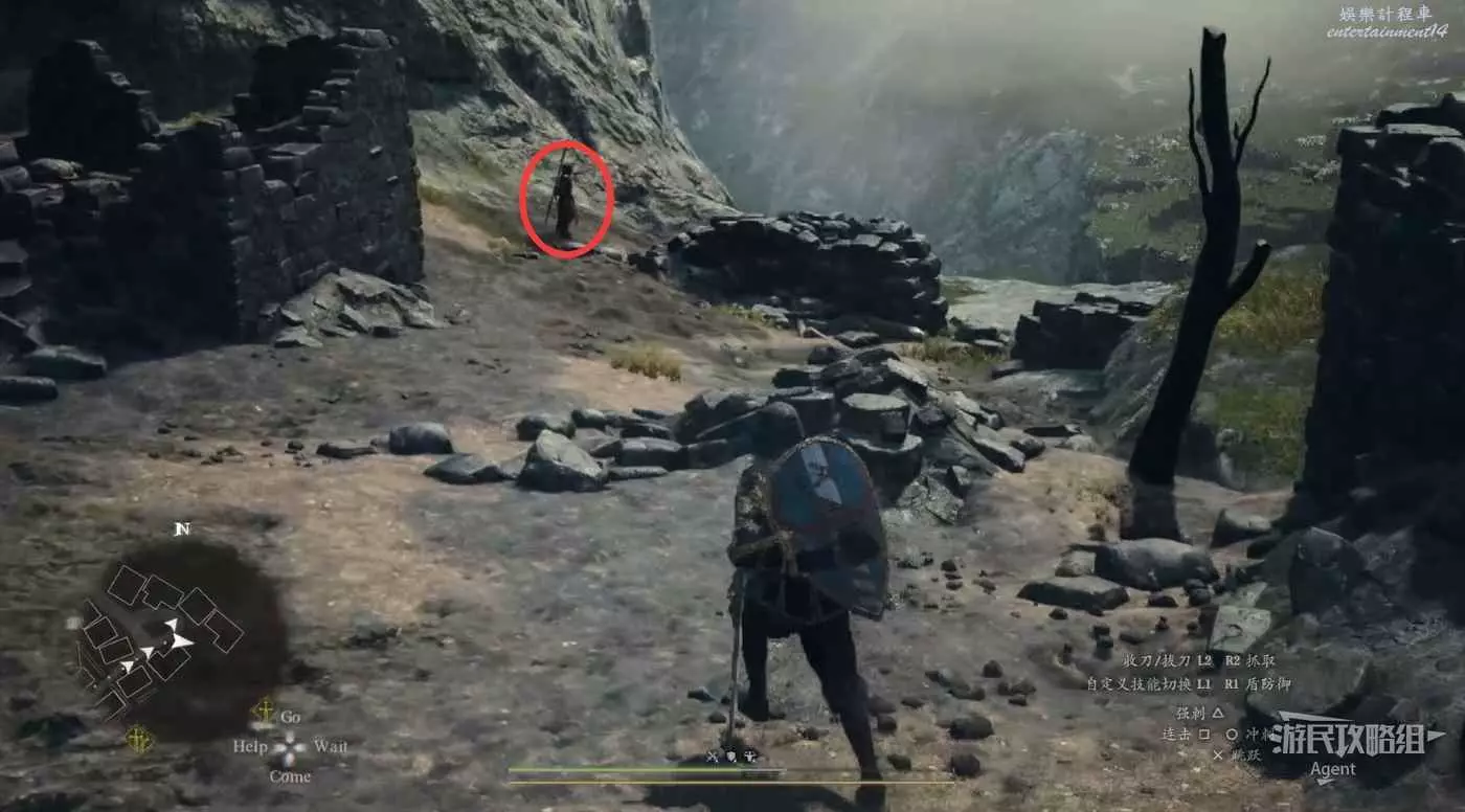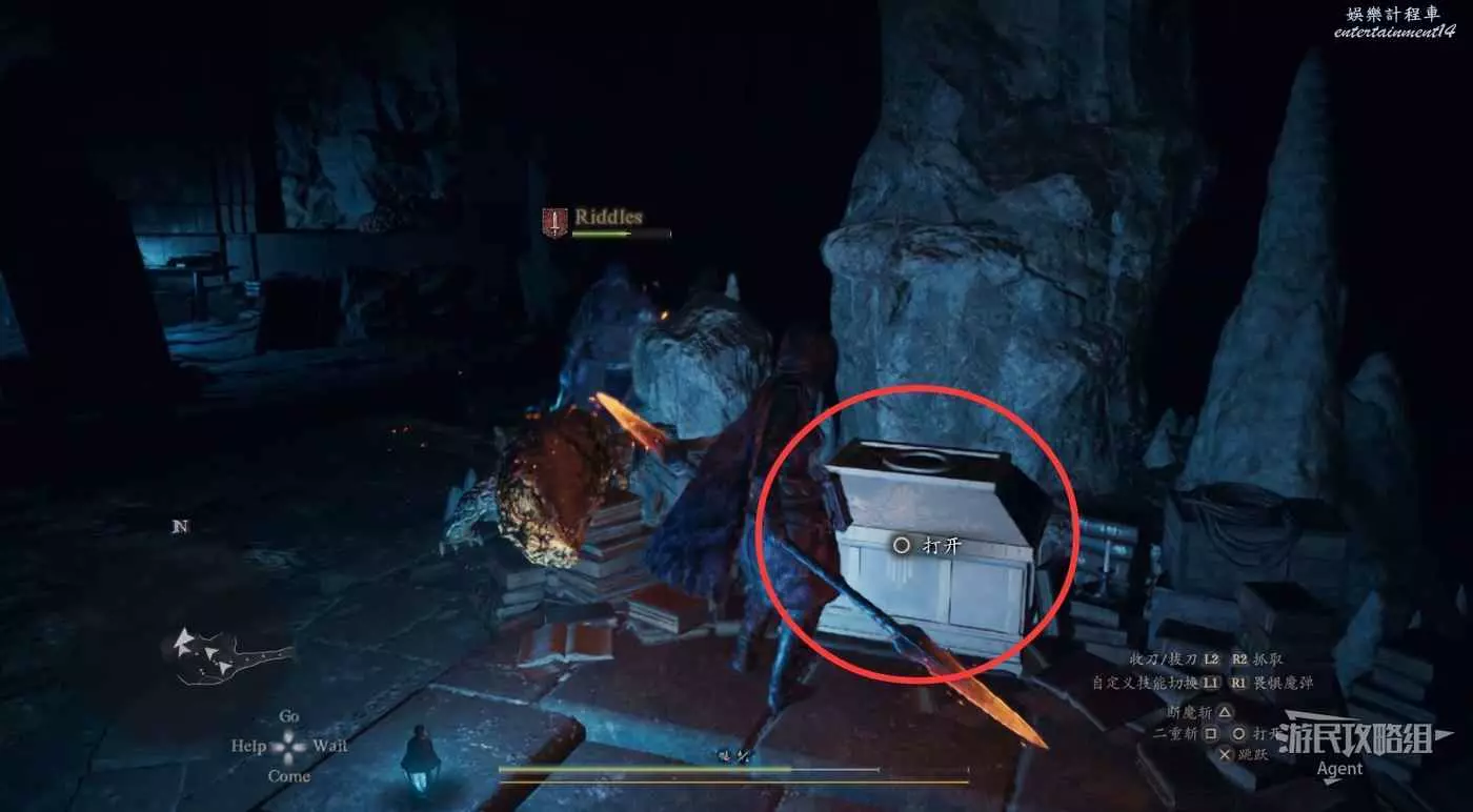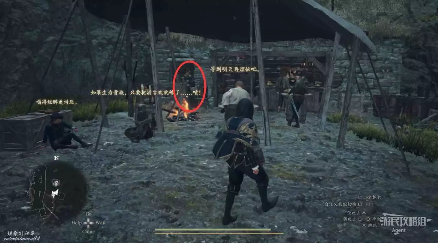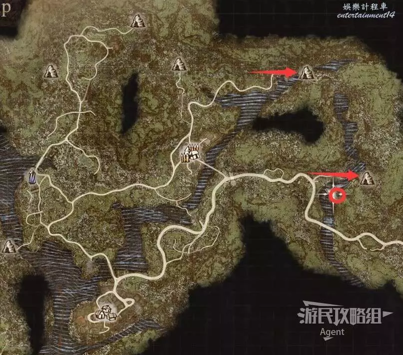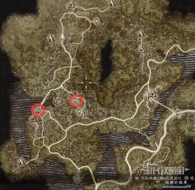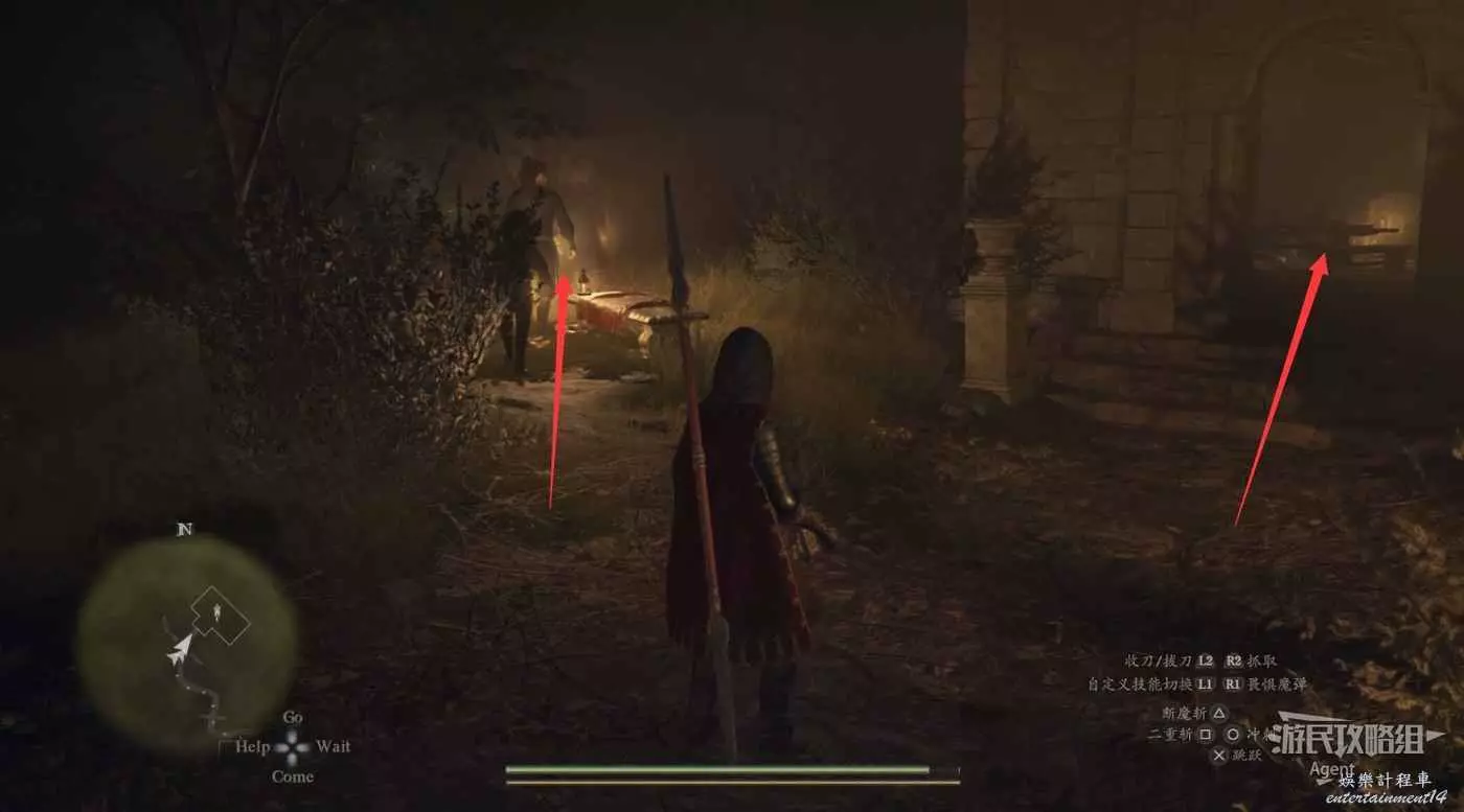 到下圖圈出的位置,可以拿到之前拿不到的寶箱,同時放下梯子解鎖回營地的捷徑。