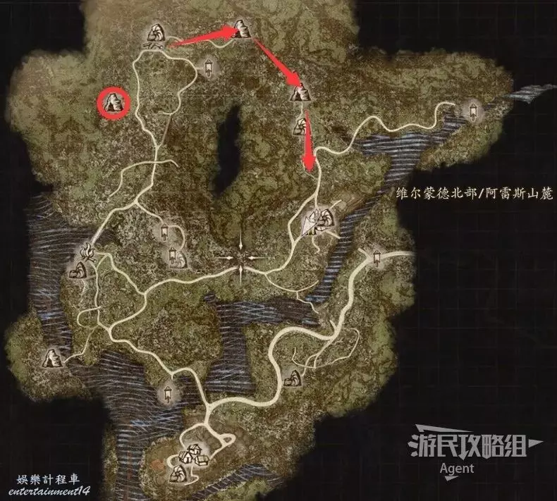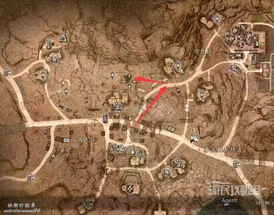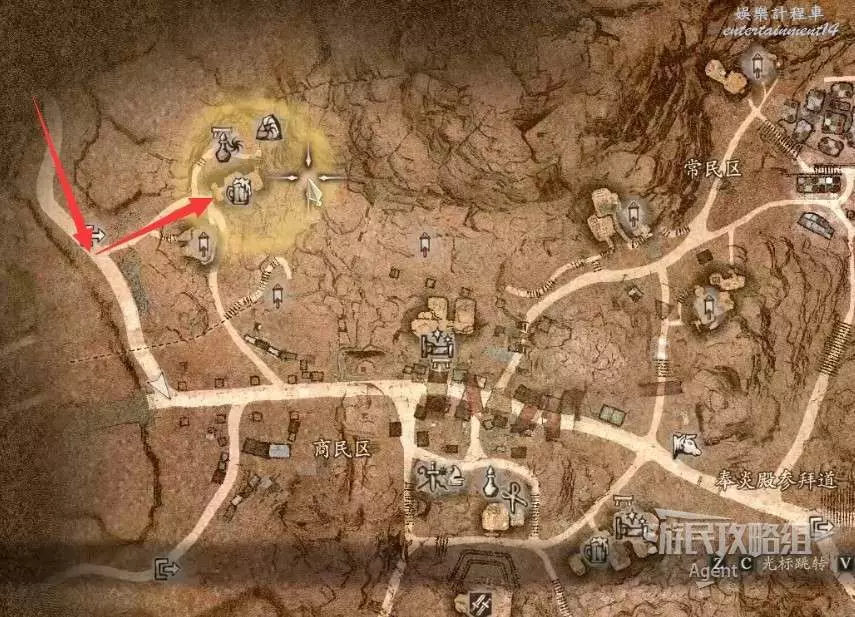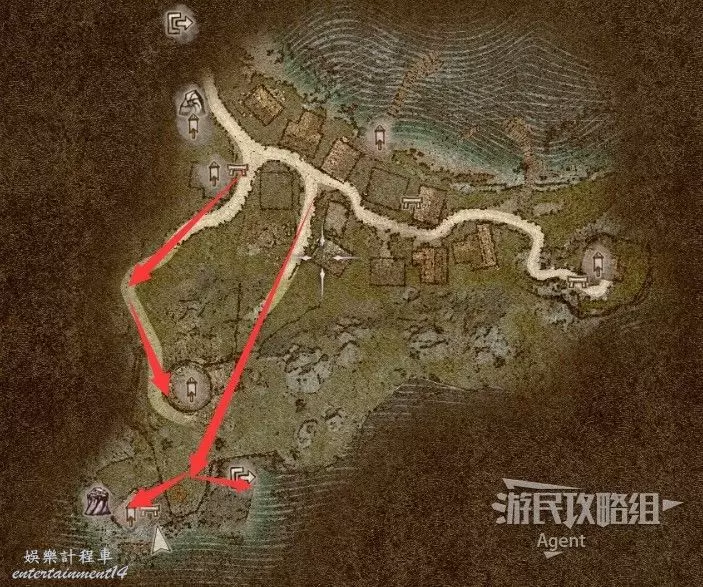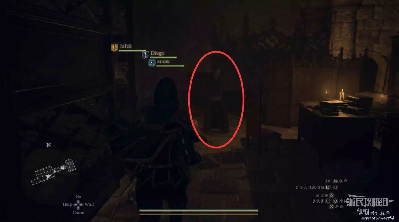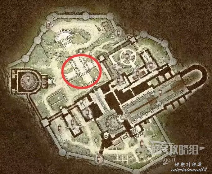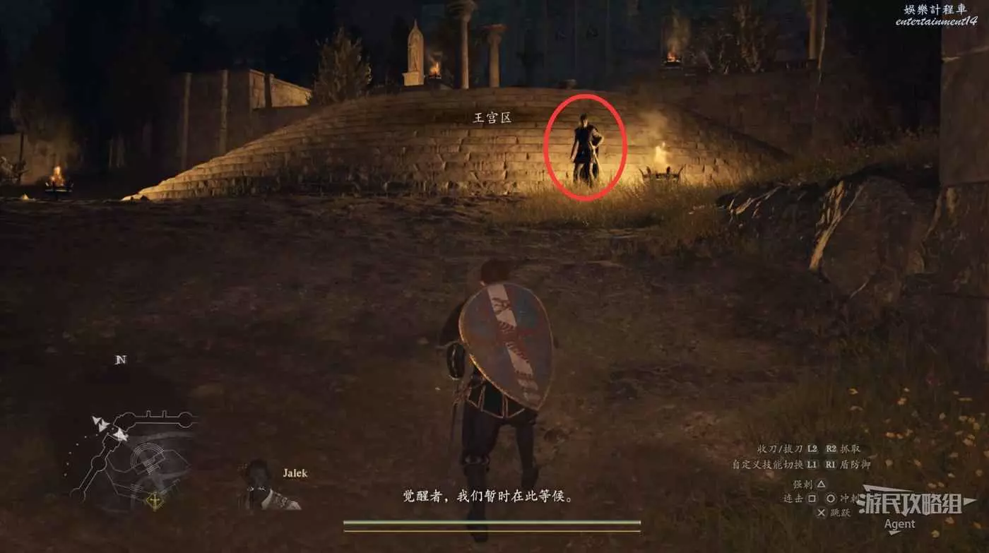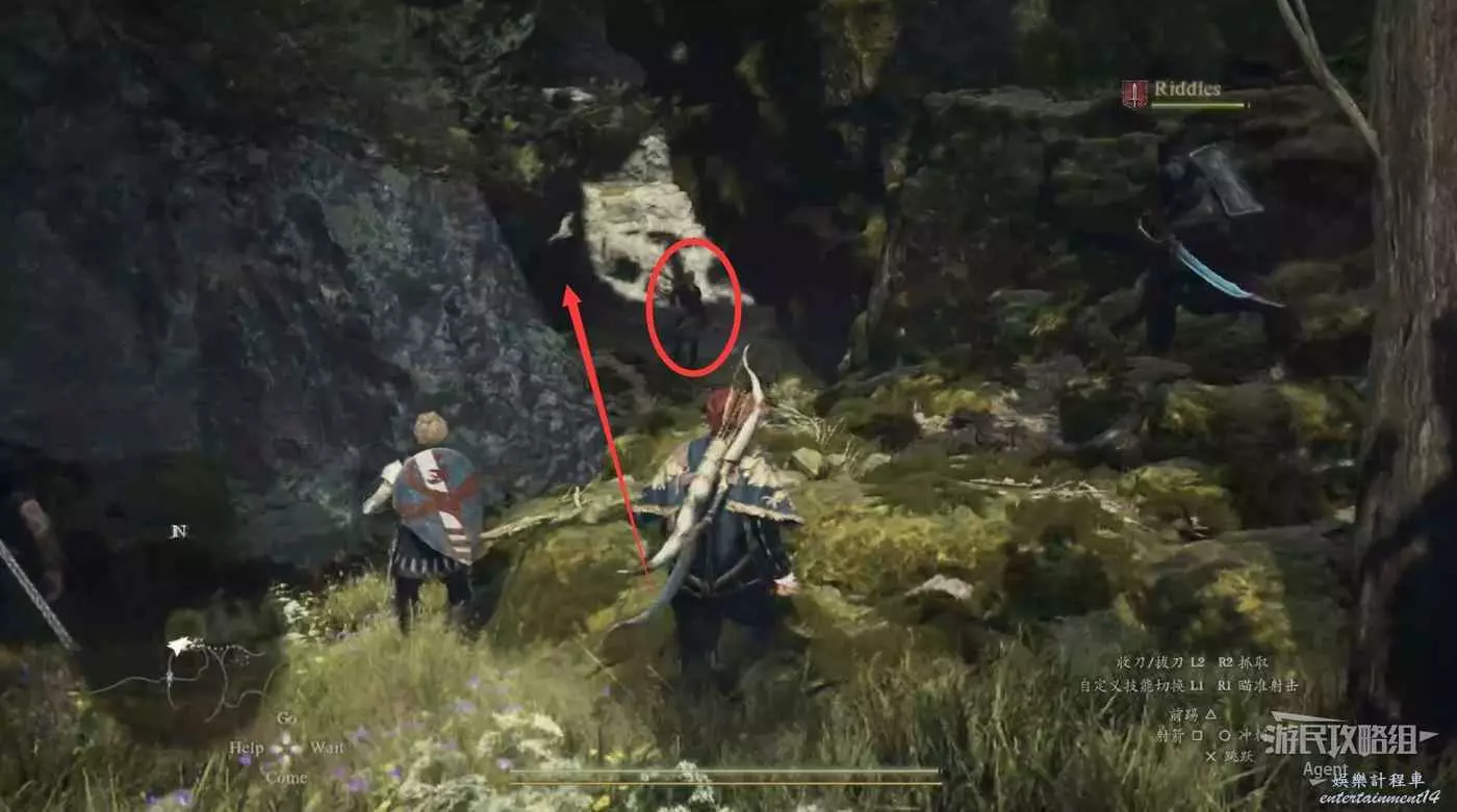 到下圖圈出的位置,可以拿到之前拿不到的寶箱,同時放下梯子解鎖回營地的捷徑。