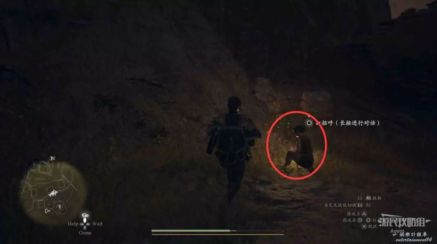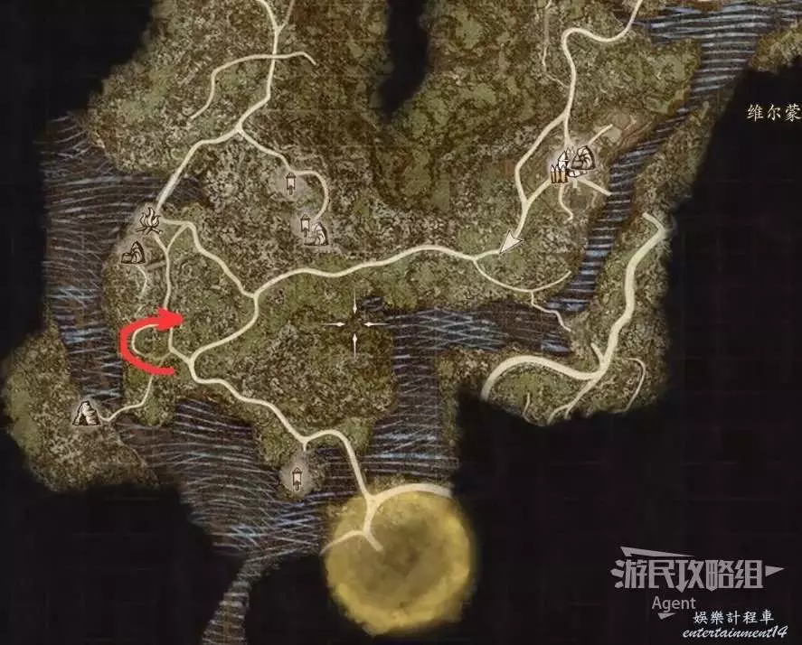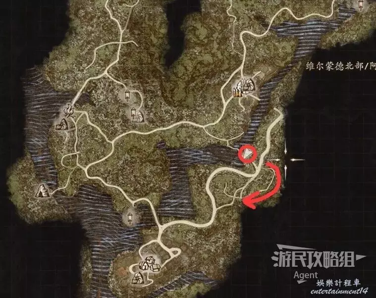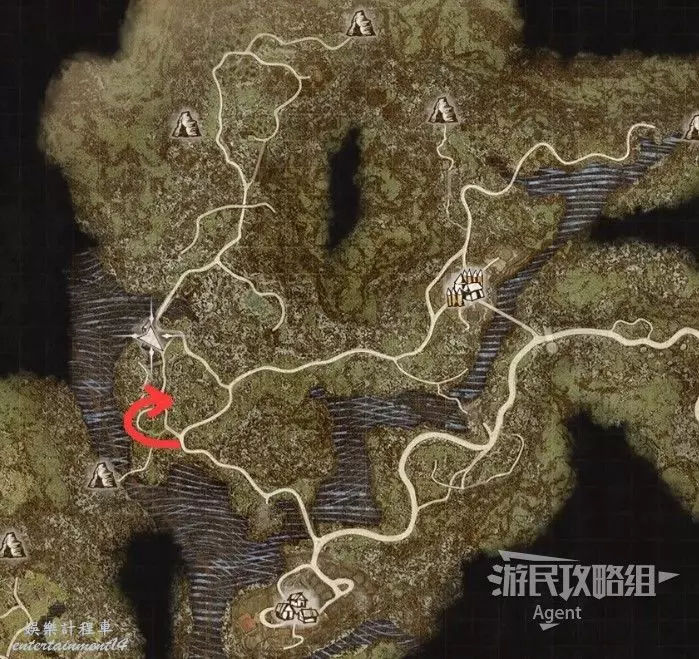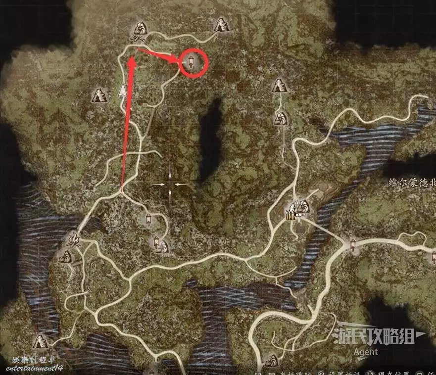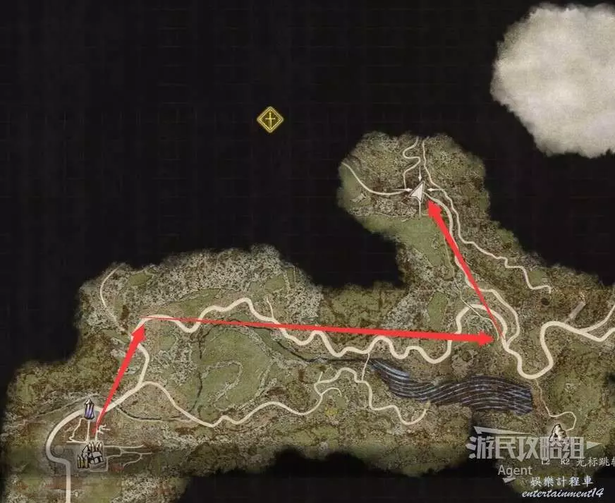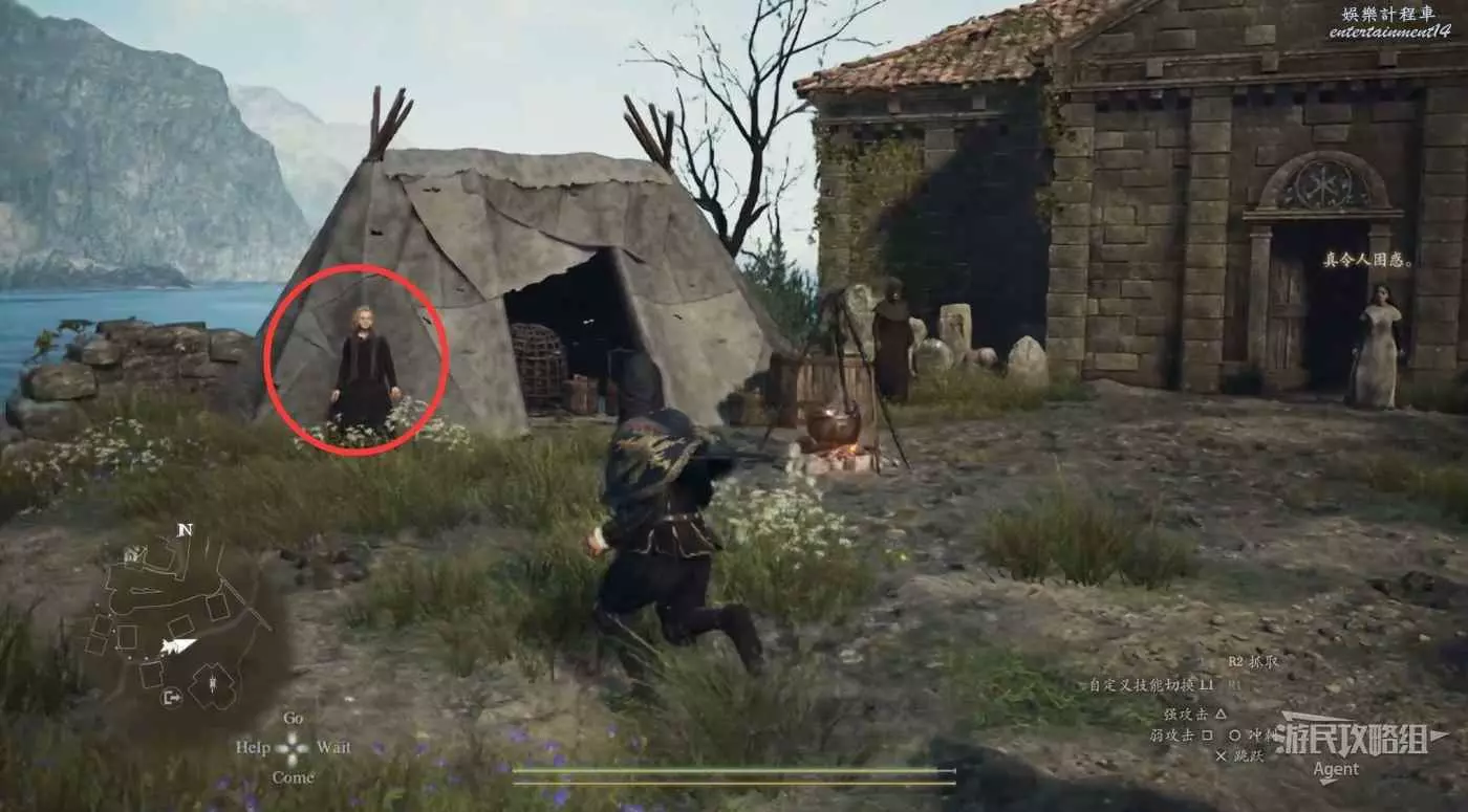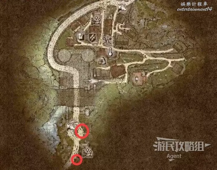 往南沿大路走,路上會有人告訴你情報,河邊橋頭還會遇到個人觸發劇情。