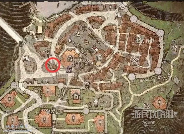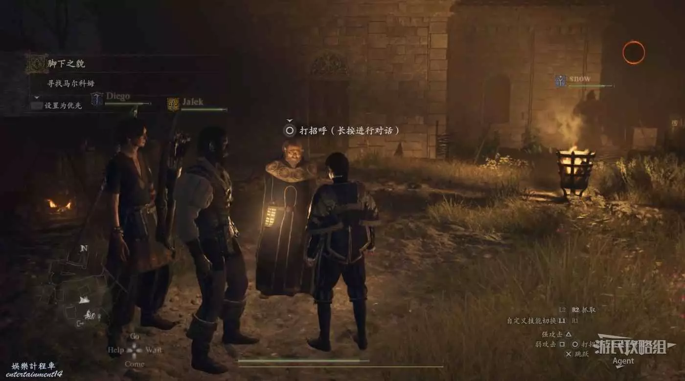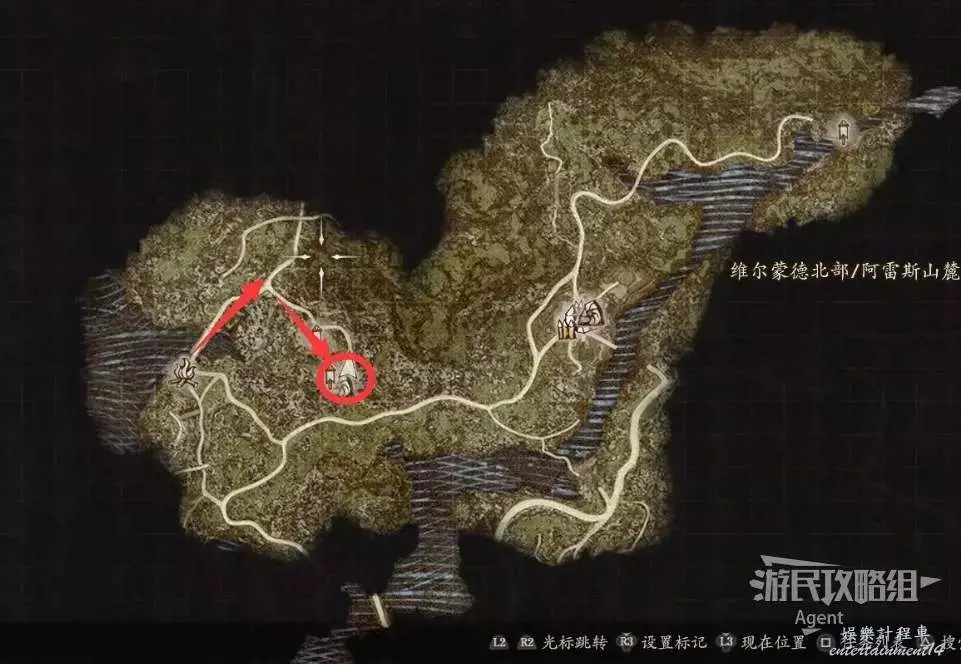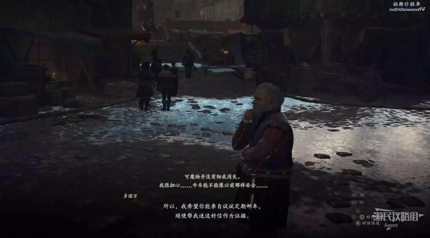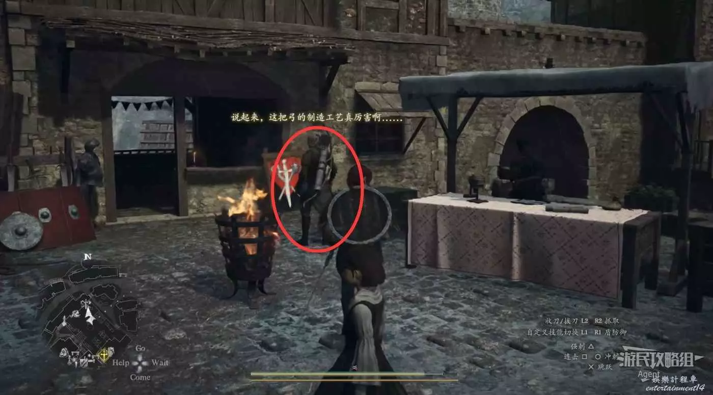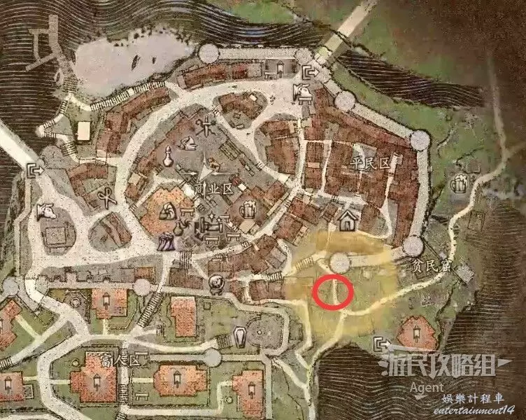 往南沿大路走,路上會有人告訴你情報,河邊橋頭還會遇到個人觸發劇情。