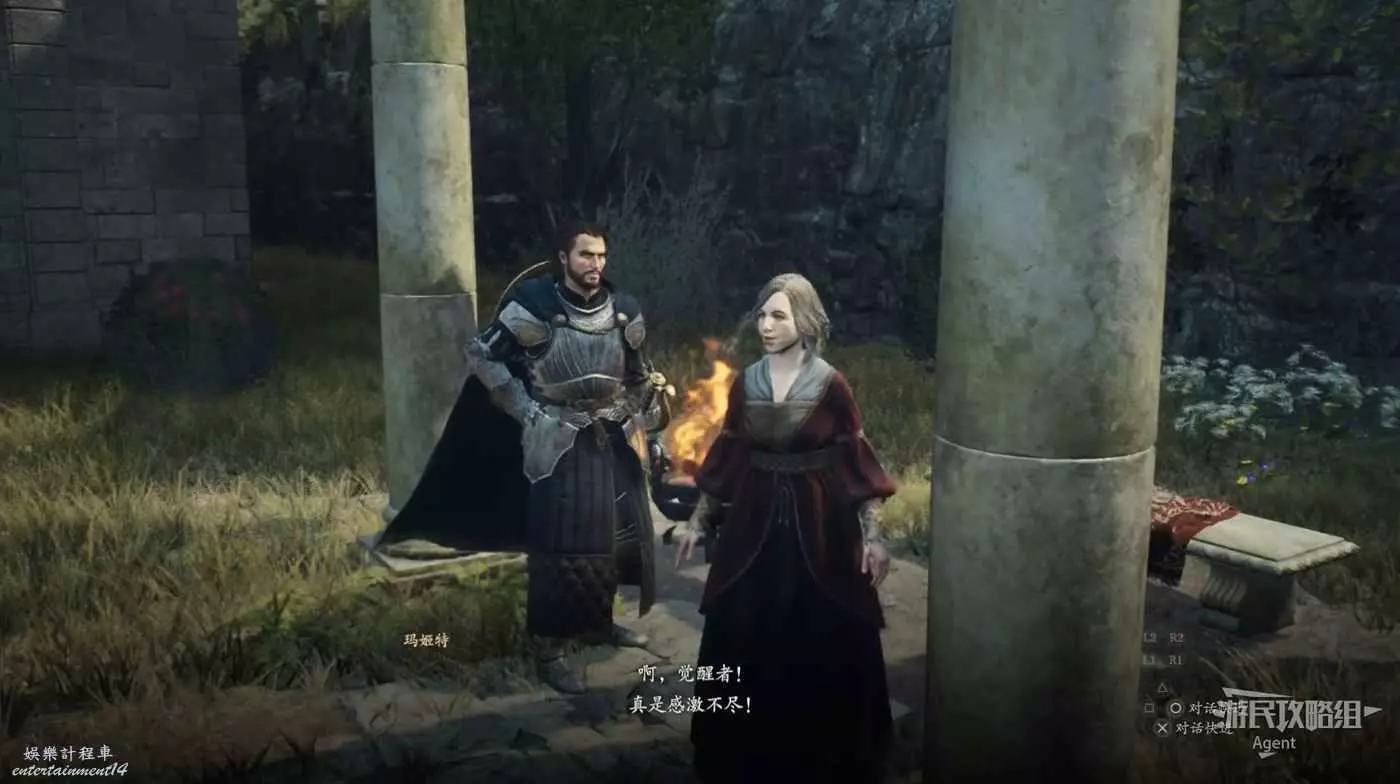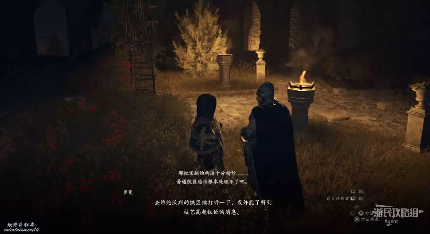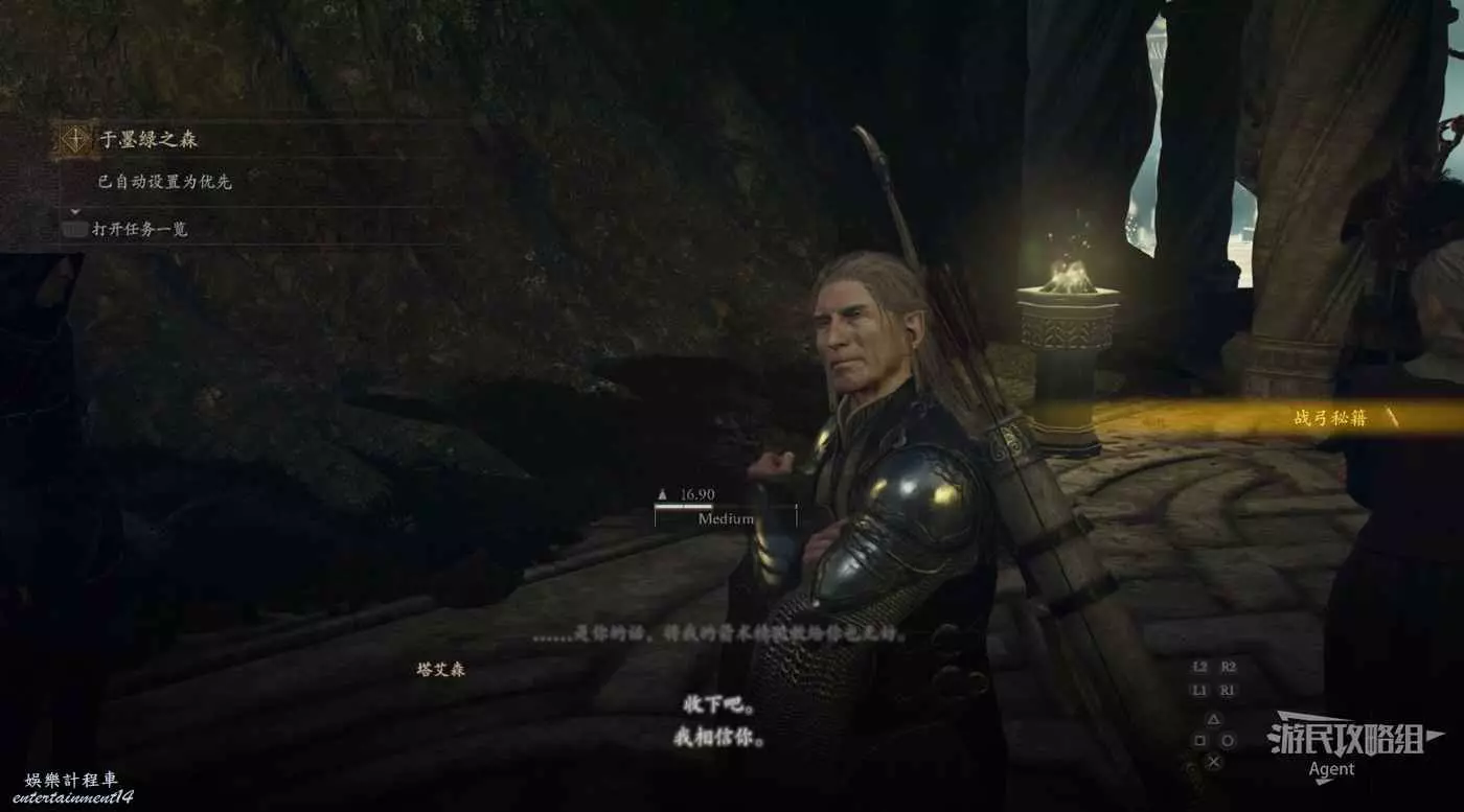 到下圖位置幫奧斯卡打怪,接到支線任務“鎮魂之鐘”,跟著他前往古戰場遺址調查安魂塔。