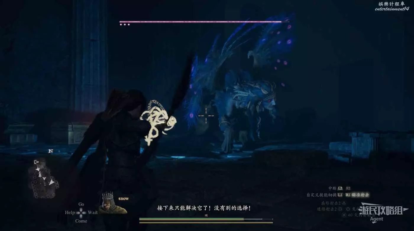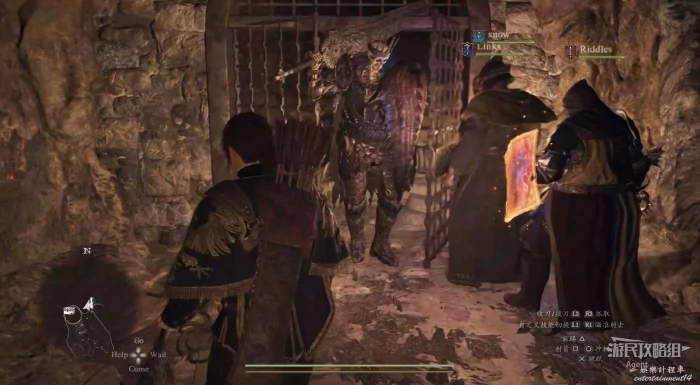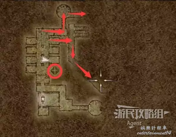 戰鬥開始後,打開物品欄,把剛才解謎獲得的“暴擊之箭”裝備上,朝他下半身射可一擊必殺,掉落睿智鑰匙。