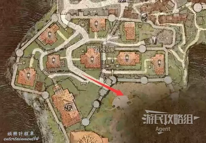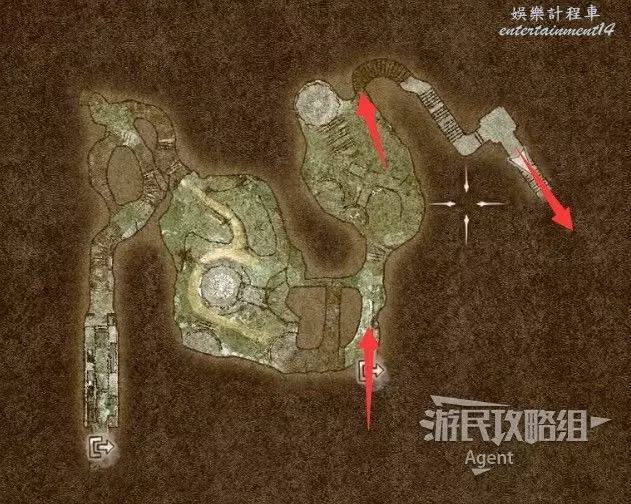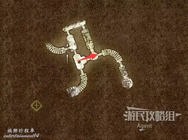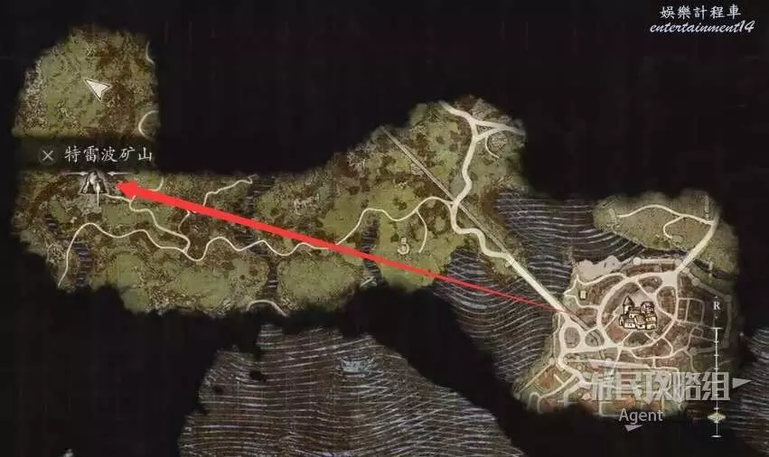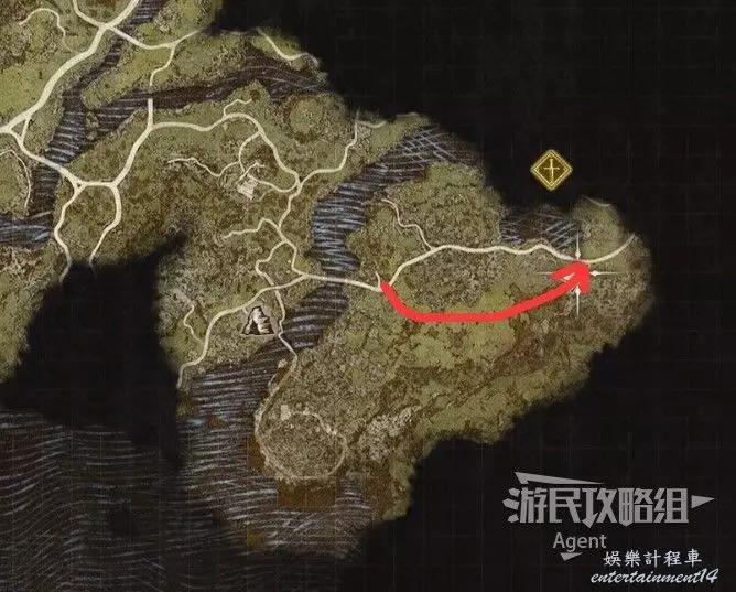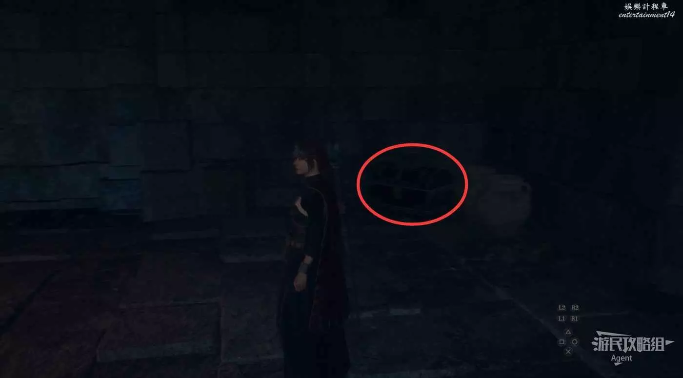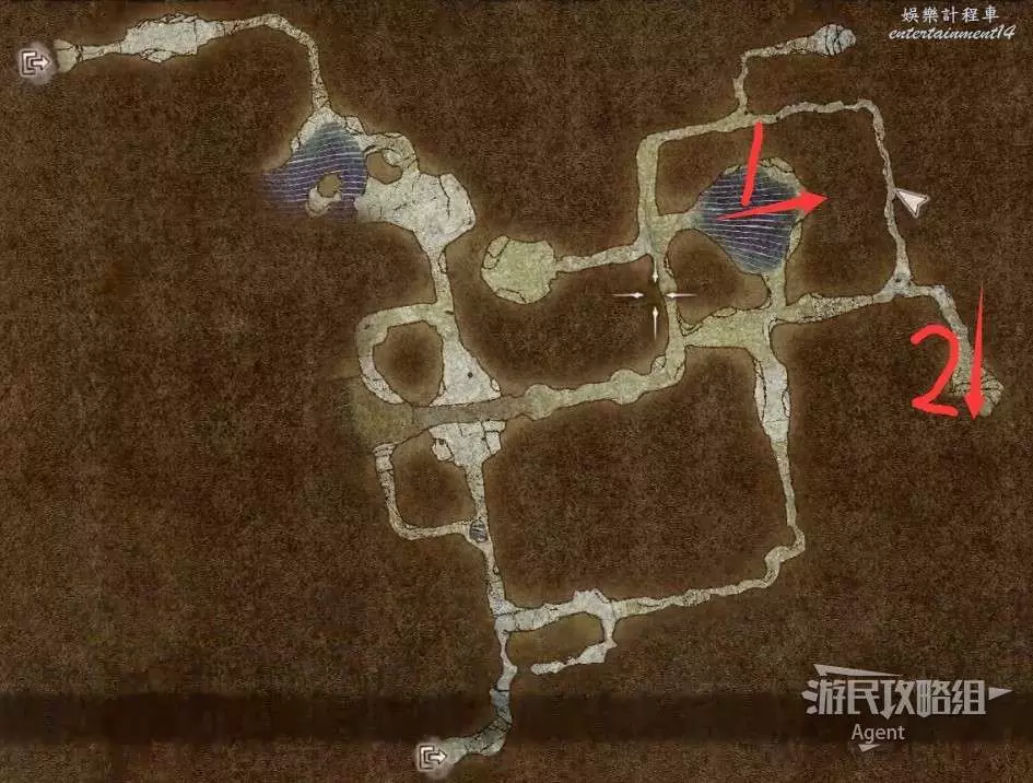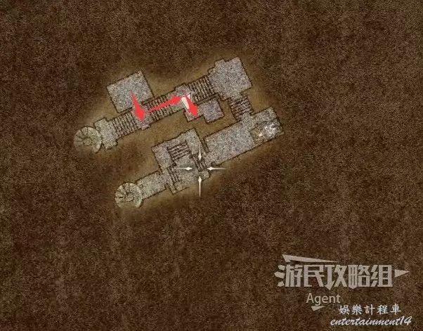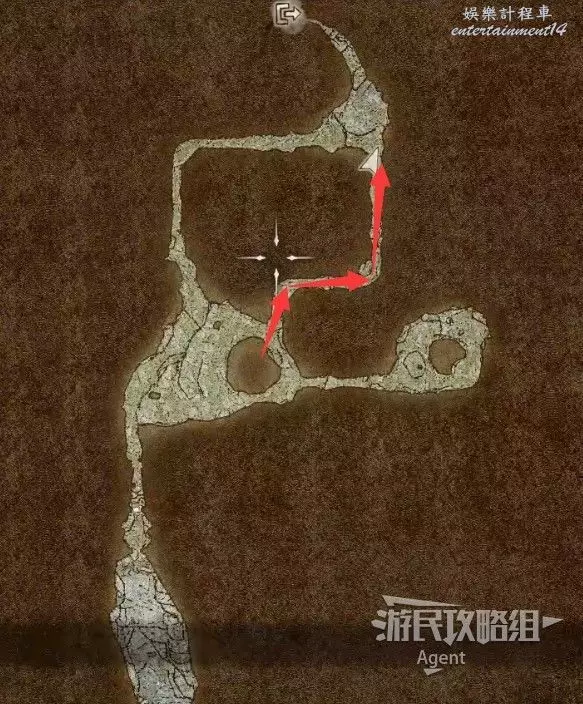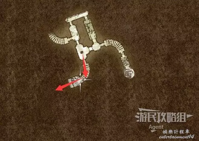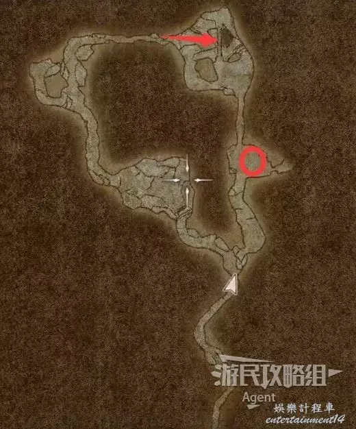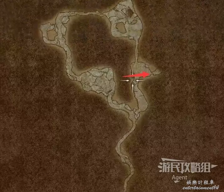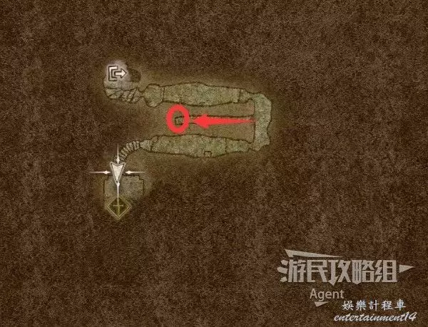 然後沿著箭頭方向走過隧道,可發現一塊隱藏的區域可探索。洞裡的寶箱需要從上面洞口爬梯子下去拿。