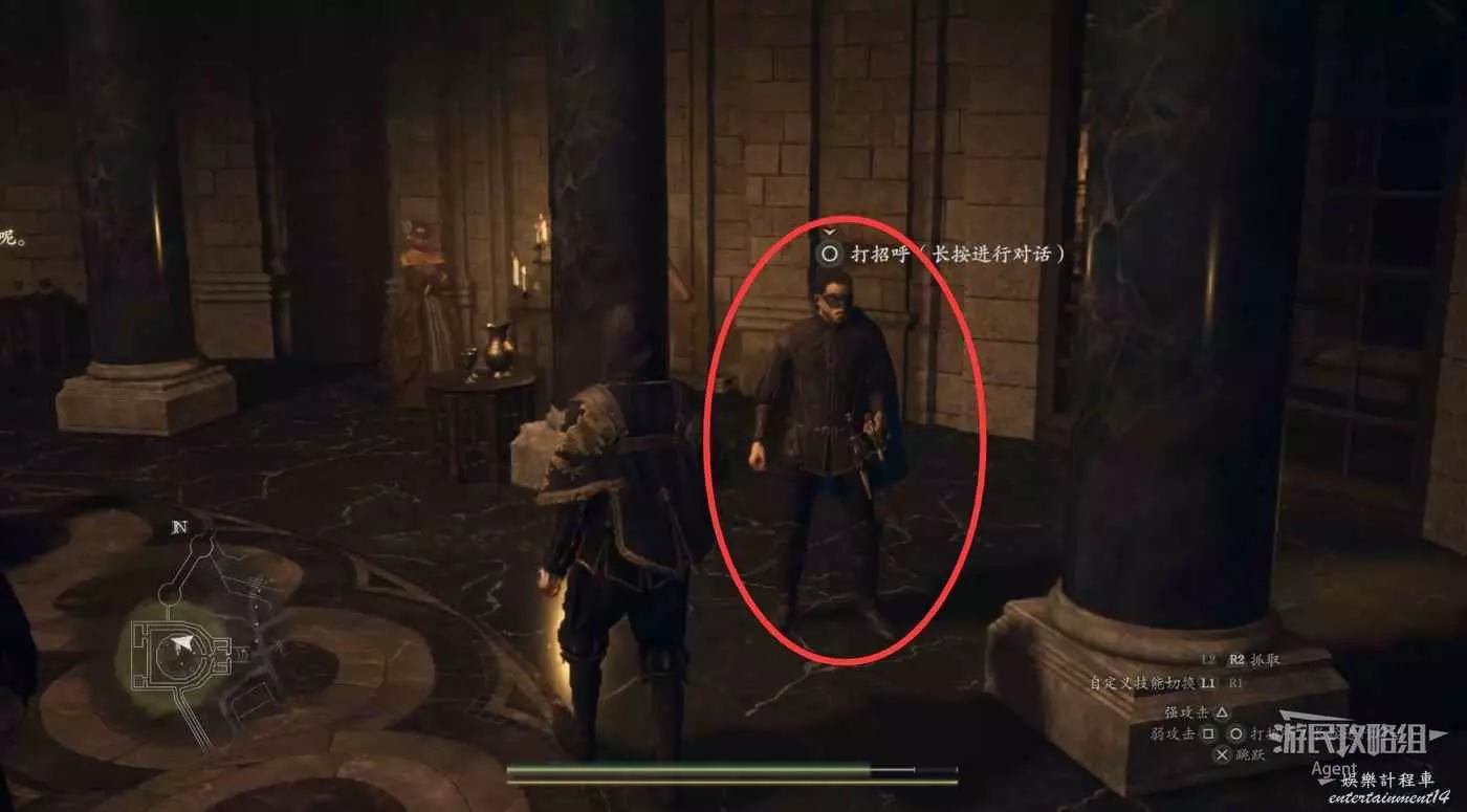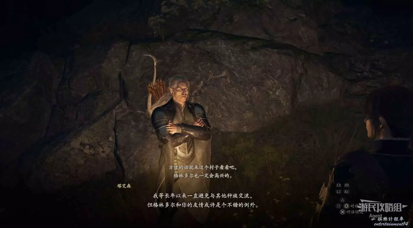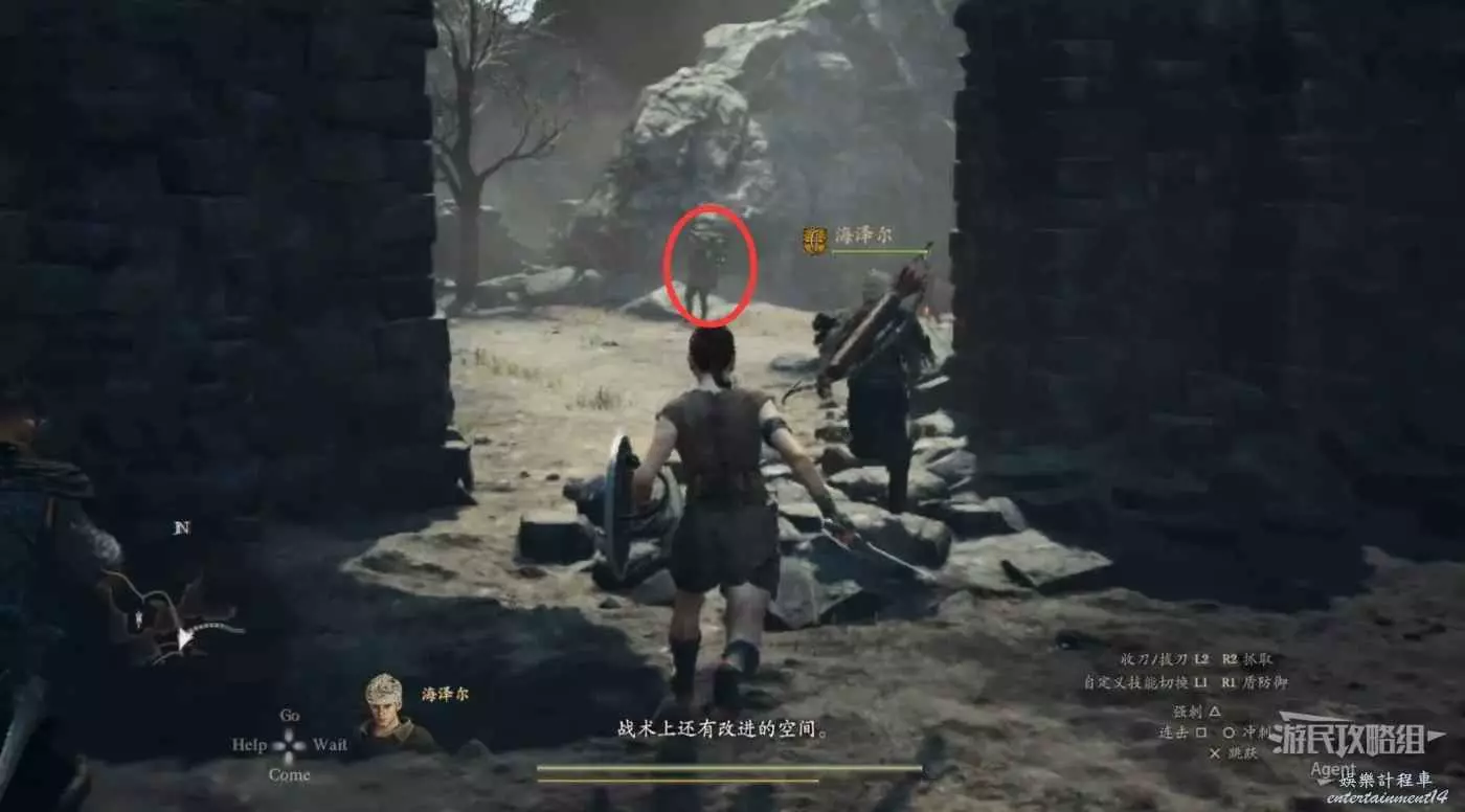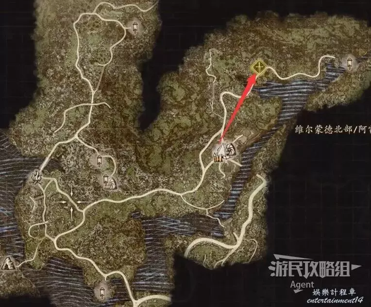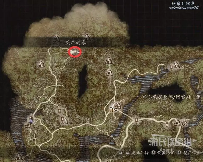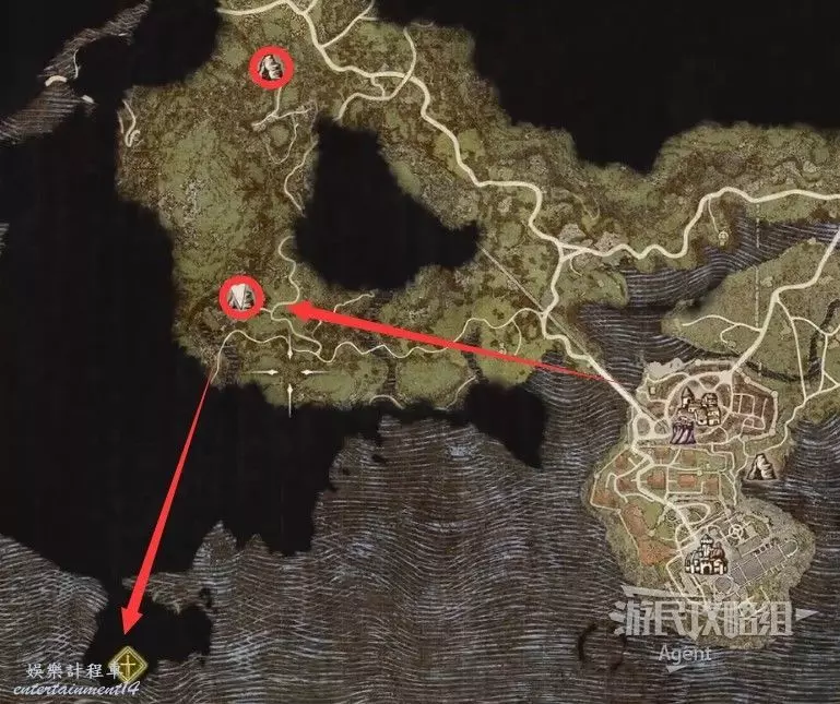 2、到關口旅店村東北方不遠處,在下圖位置的塔里的異界石,雇傭一個叫做SphinxParent(SphinxFather或SphinxMother也行)的追隨者,這是卡普空提供的官方追隨者,如果找不到就斷網,離線狀態下再看。