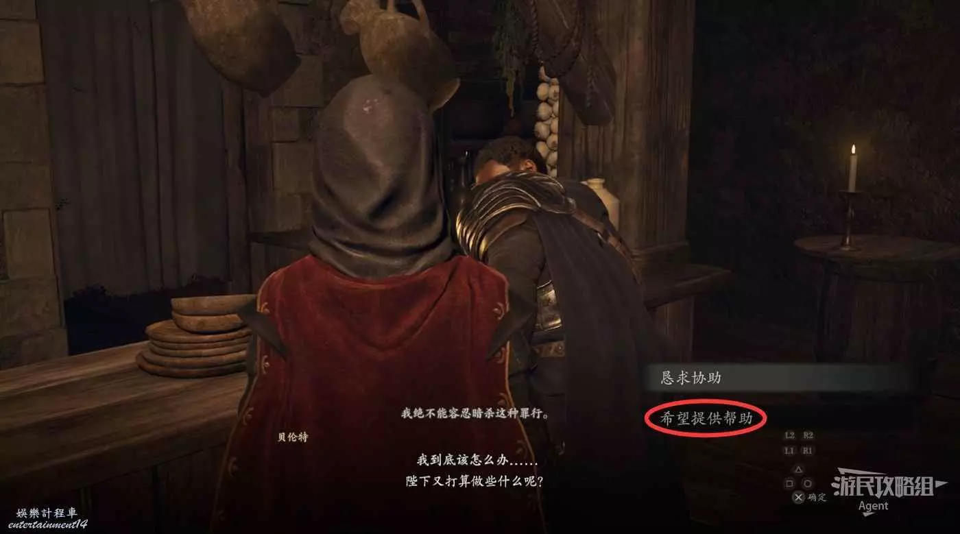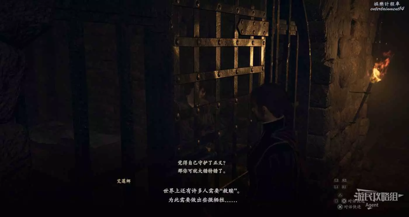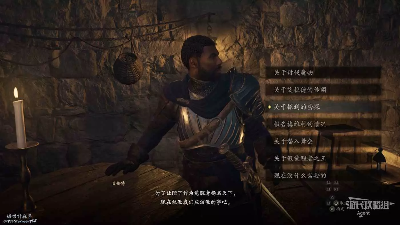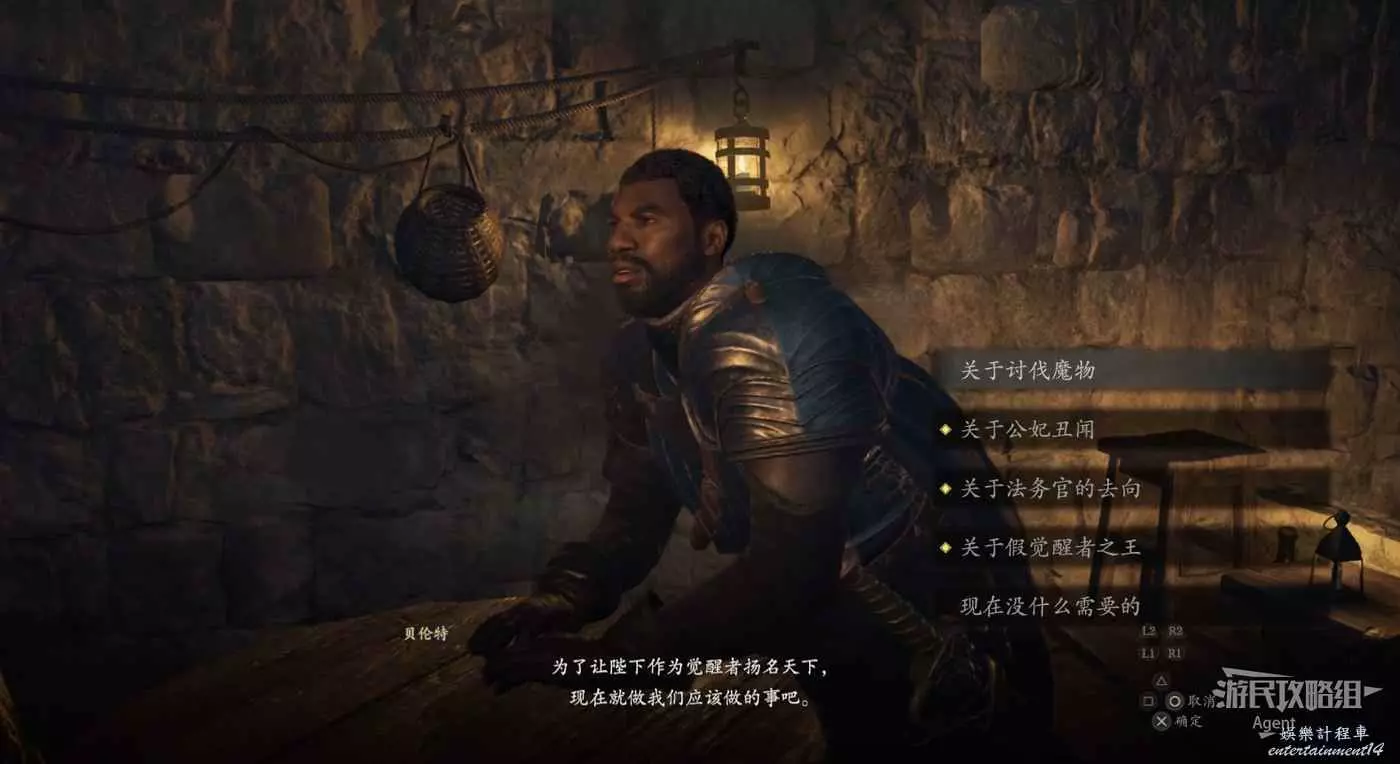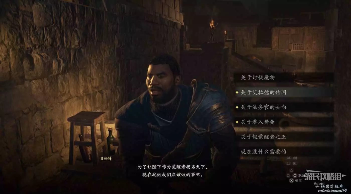 來到王城見到警衛長貝倫特,得知自己遊戲一開始被關在監牢的真相。