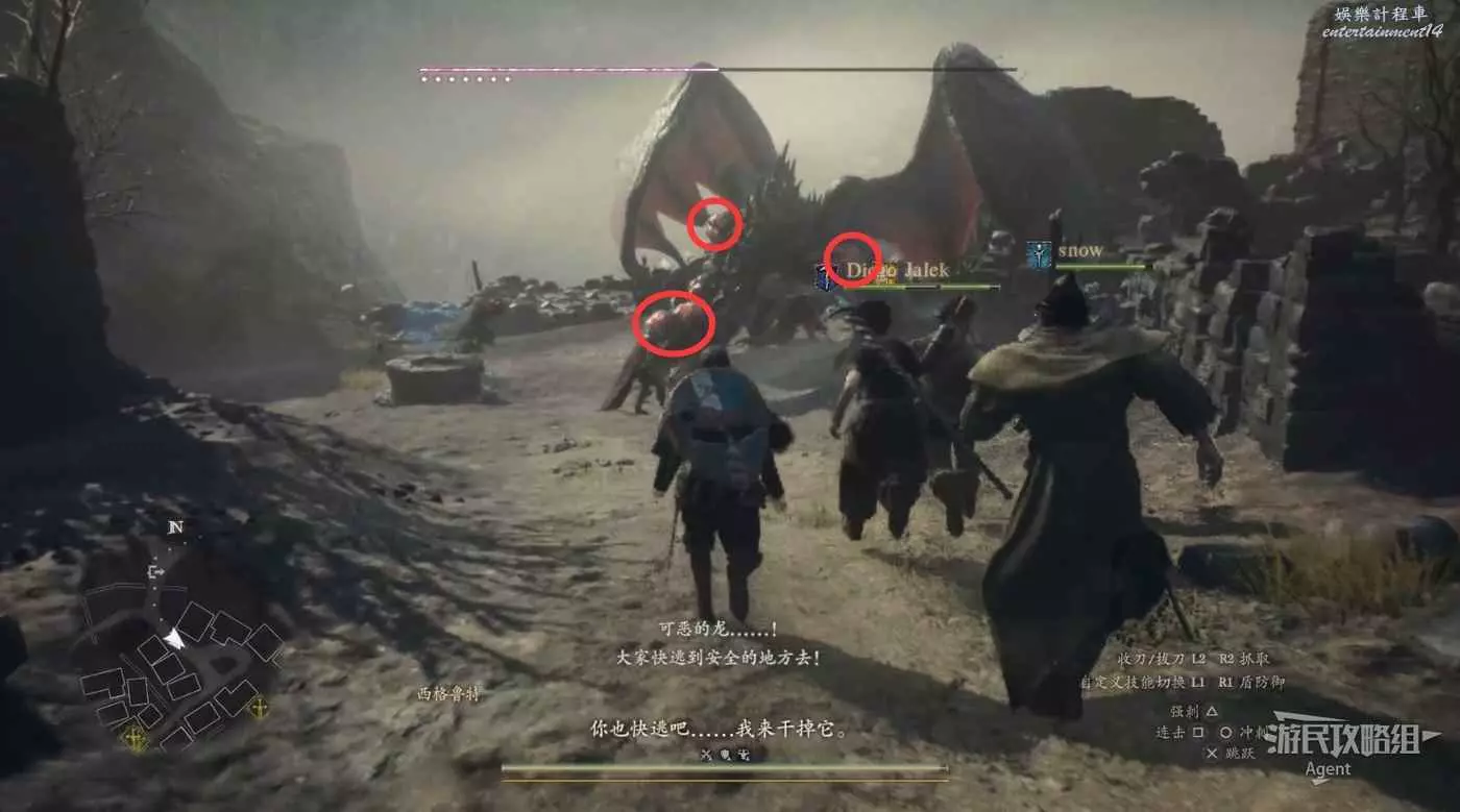 古戰場遺址外有頭龍,可以用戰場遺址的弩炮射龍,感興趣的朋友可以試試。