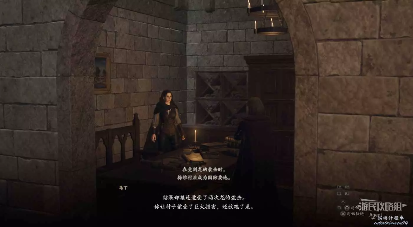 過橋來到被龍燒毀的梅維村。門口的商人賣一次性的監獄鑰匙,有錢的話備點,尤其是喜歡在城裡搞事容易被抓的玩家需要。