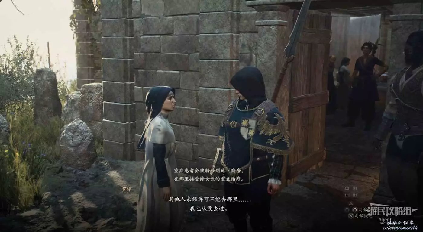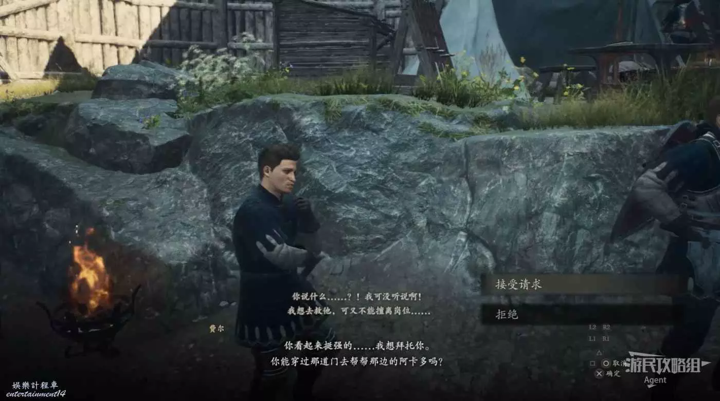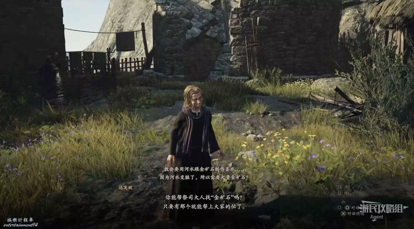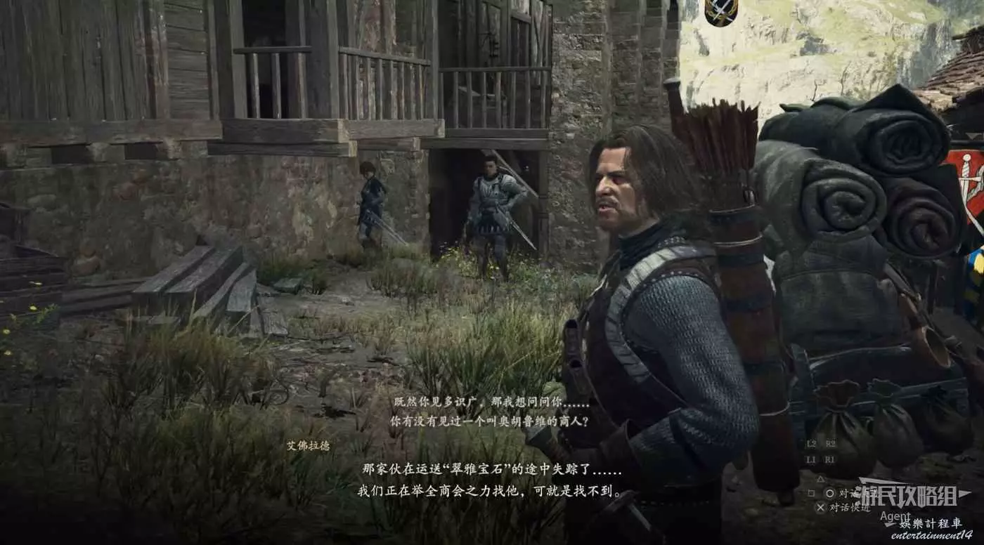 和牛棚旁的人對話,接到支線任務“掠奪與慈悲”。旁邊倆士兵會推薦你找牛棚旁的人對話。