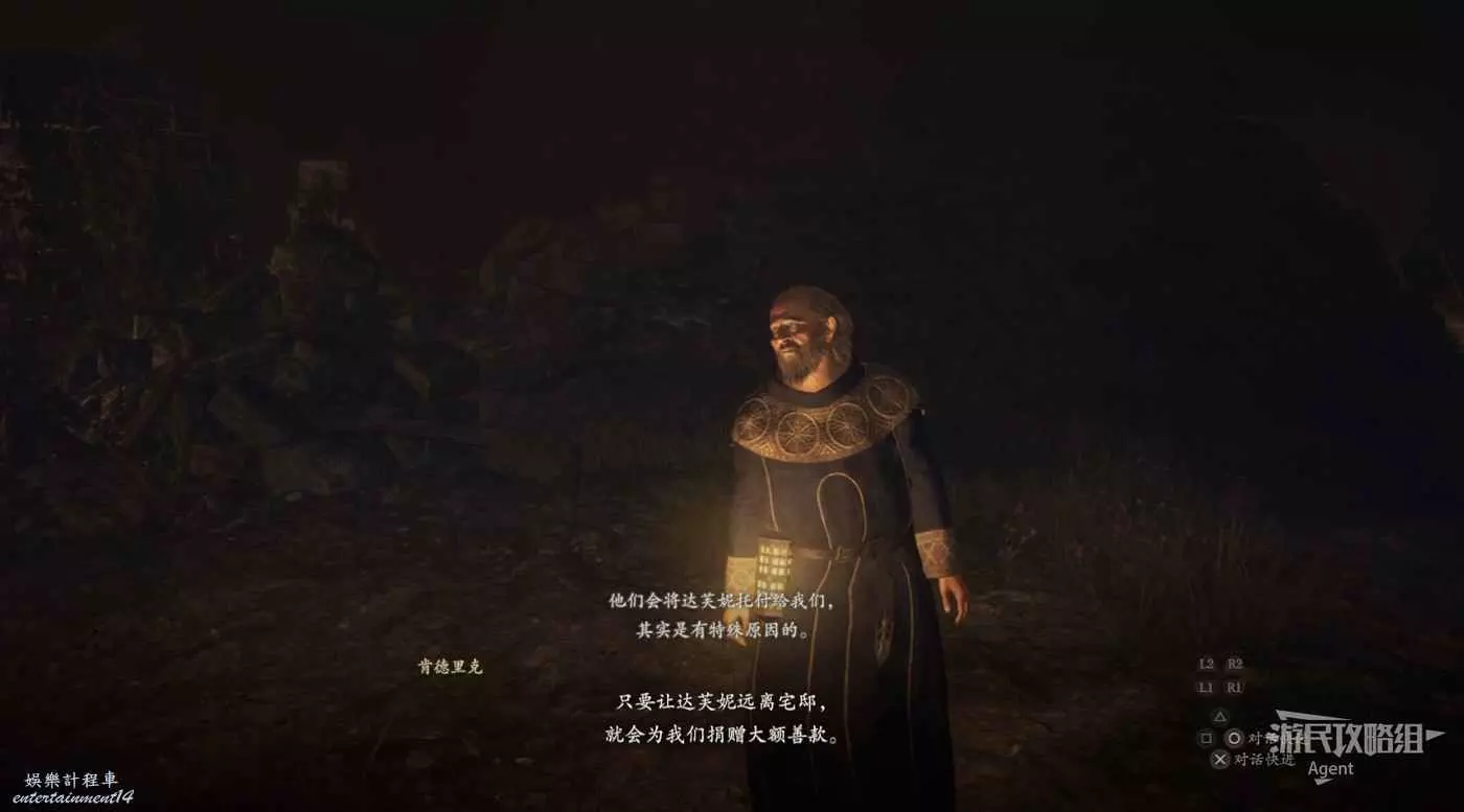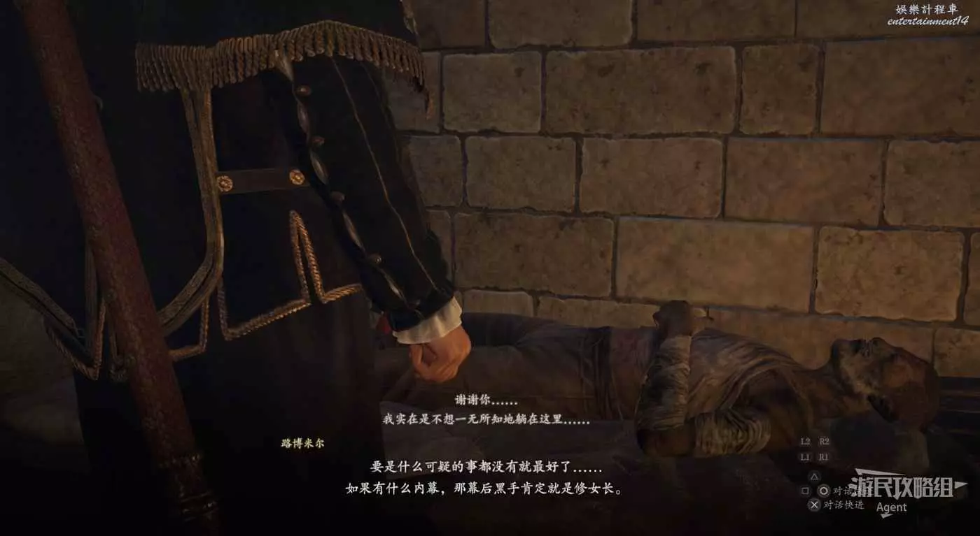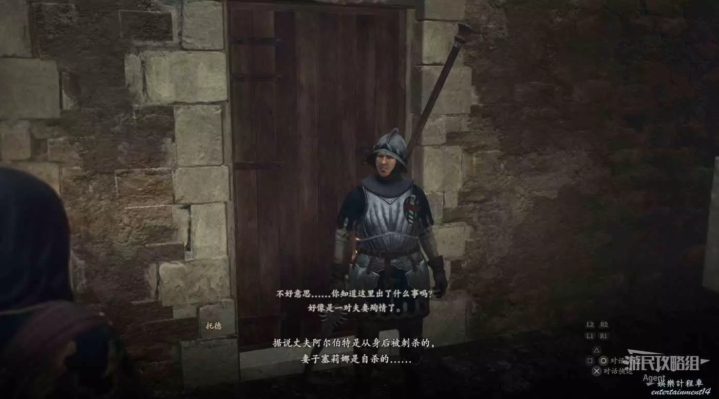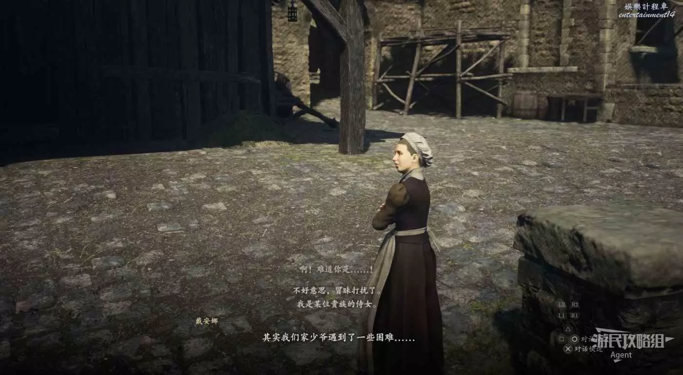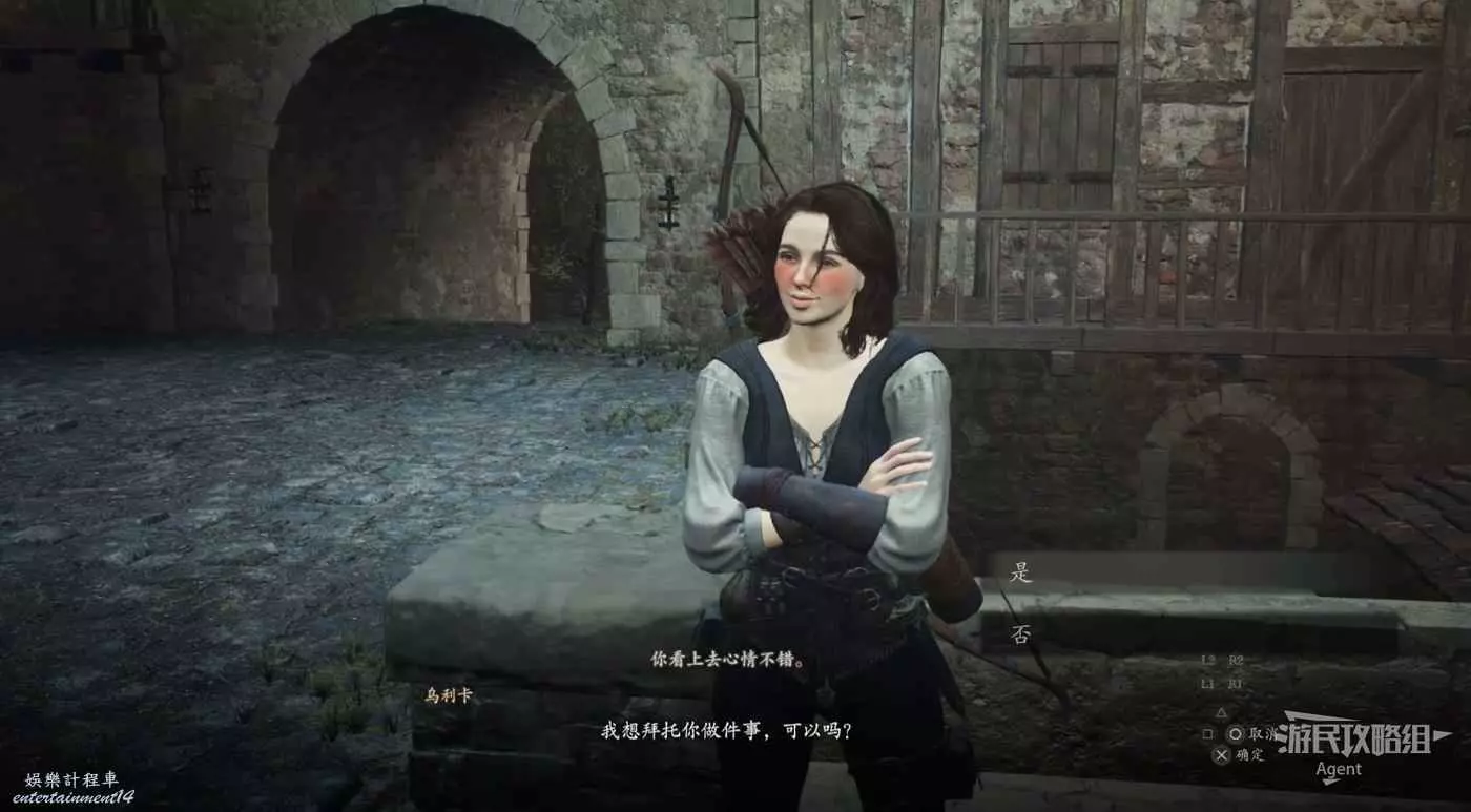 和牛棚旁的人對話,接到支線任務“掠奪與慈悲”。旁邊倆士兵會推薦你找牛棚旁的人對話。