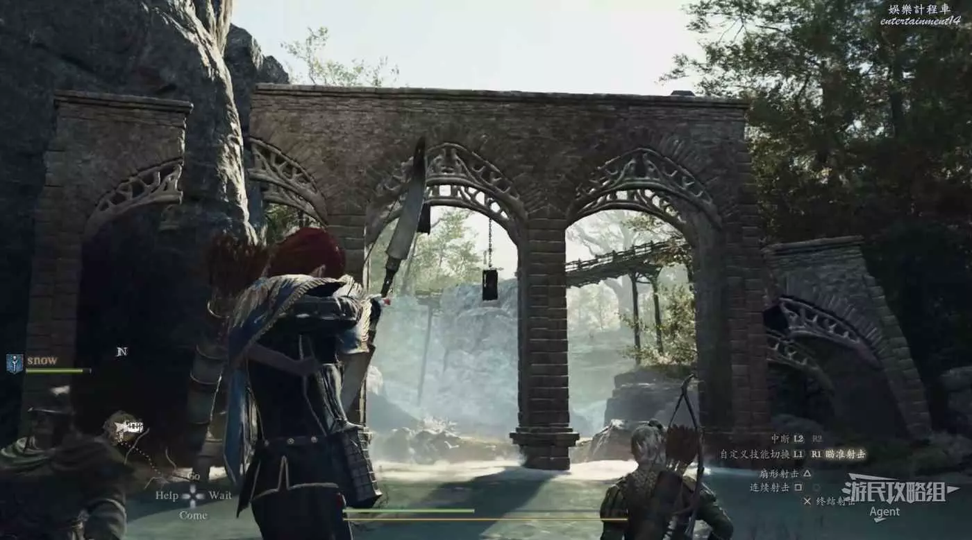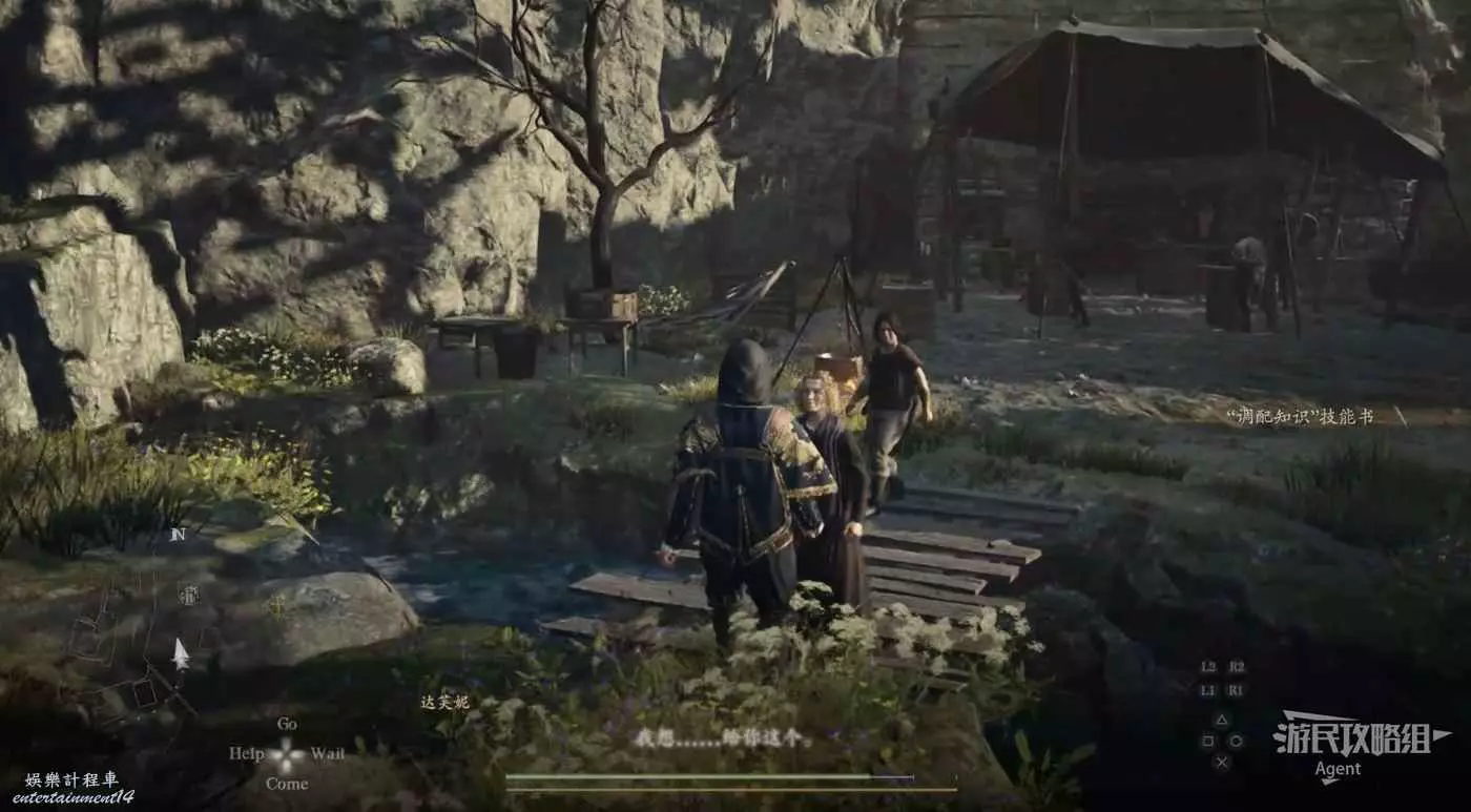 河對岸高處的寶箱暫時拿不到,需要等下去了梅維村以後,才能繞路過去拿,到時還可順便解鎖此處的梯子(是從梅維村回營地的捷徑)。