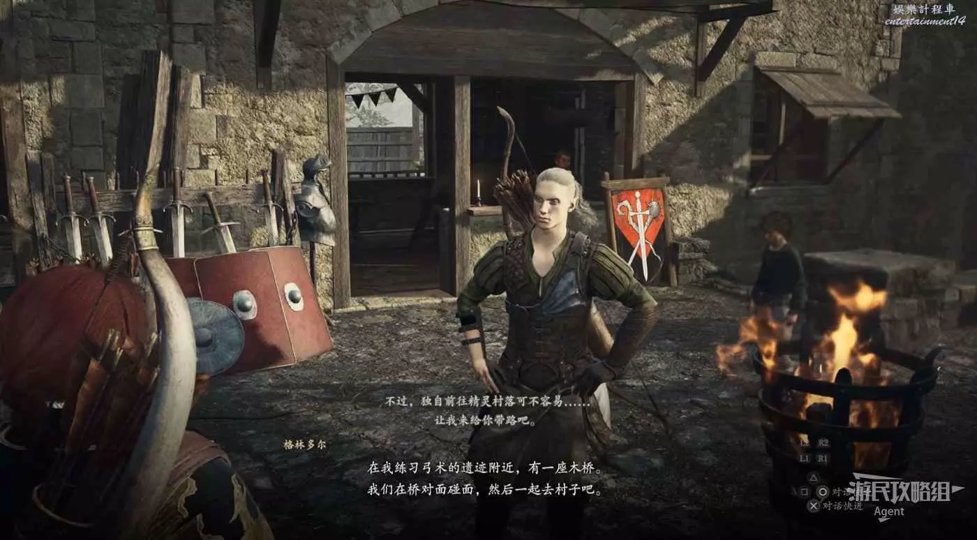 通過關卡後往南走,不遠處來到布連的老家,見到鬥士大師布連,以及之前你介紹給他的精神小夥。