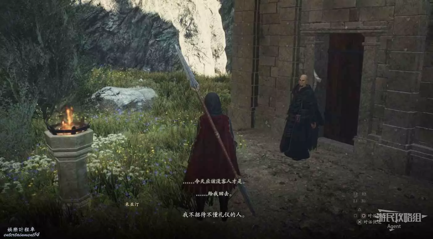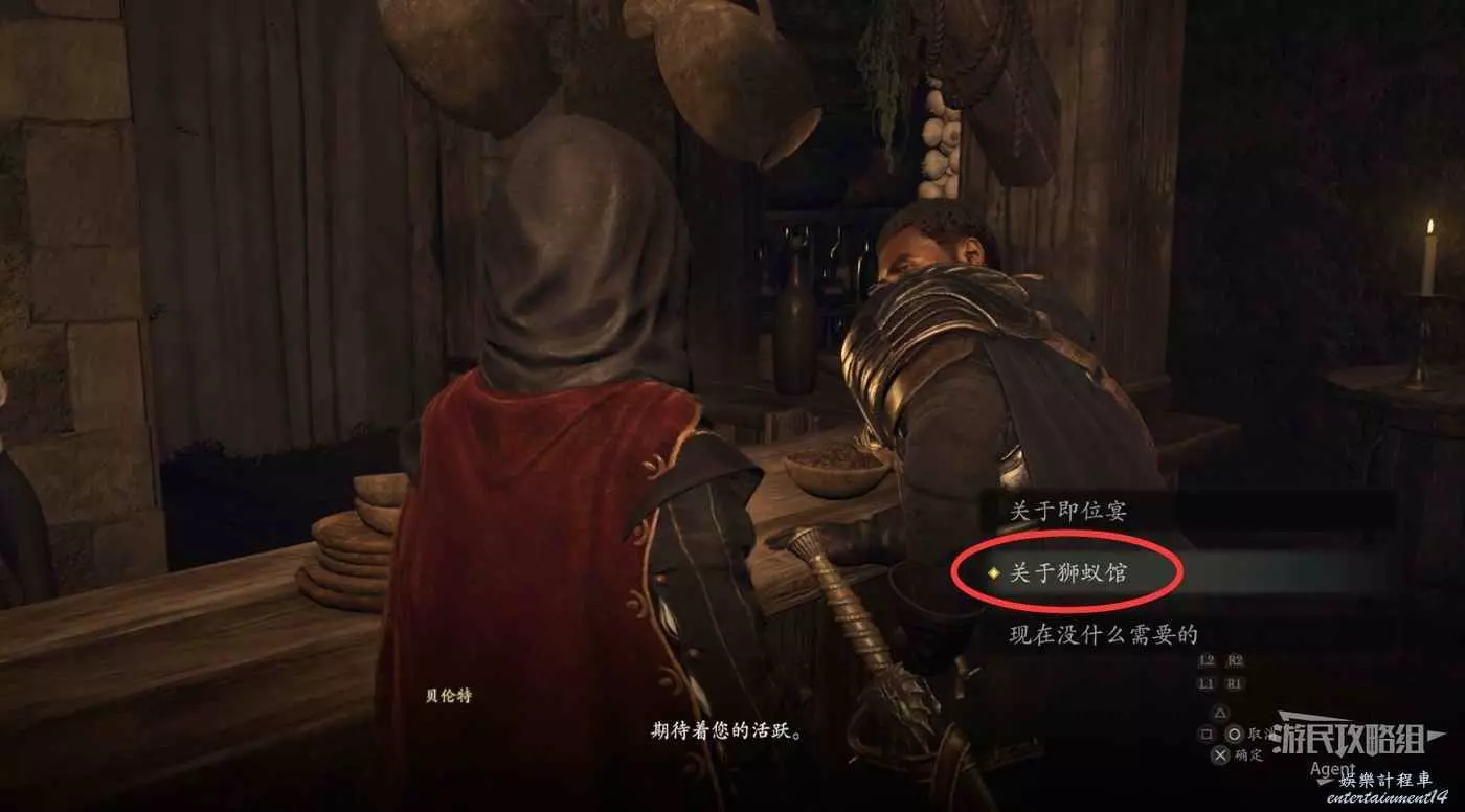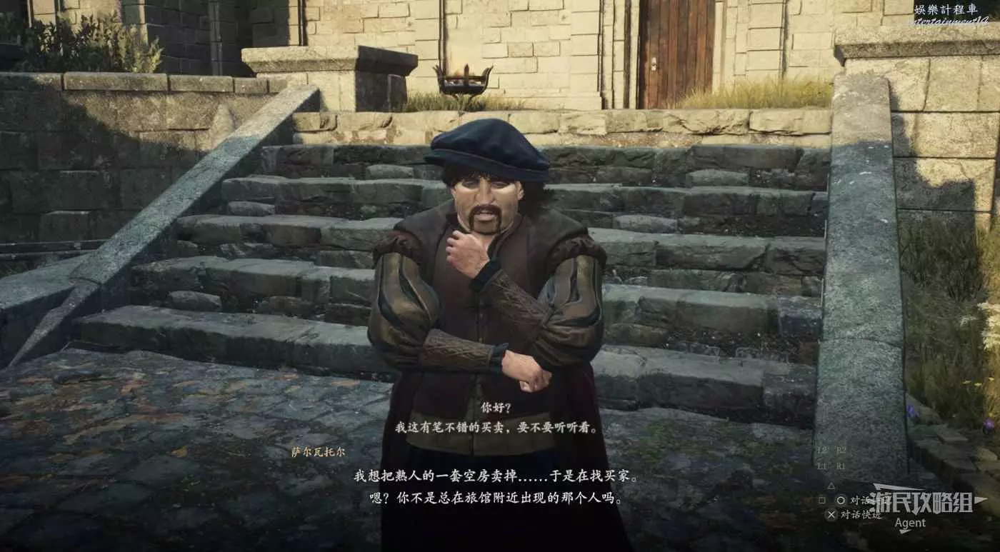 出南門準備離開營地時,npc會推薦你去旅店休息。