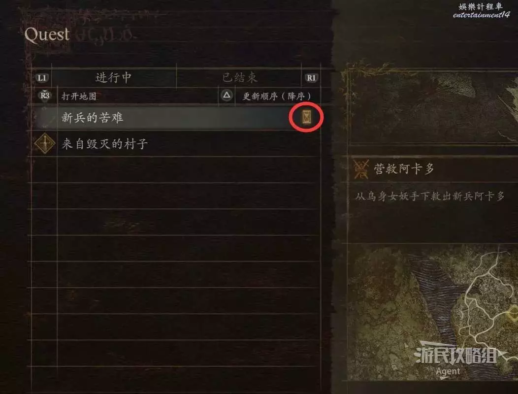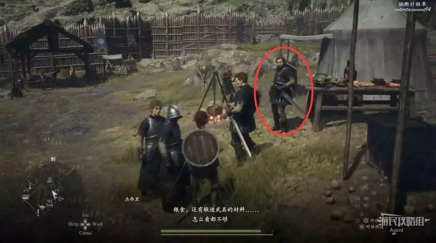 在營地裡的簡易旅店住宿休息後準備出南門離開,門口接到支線任務“新兵的苦難”。