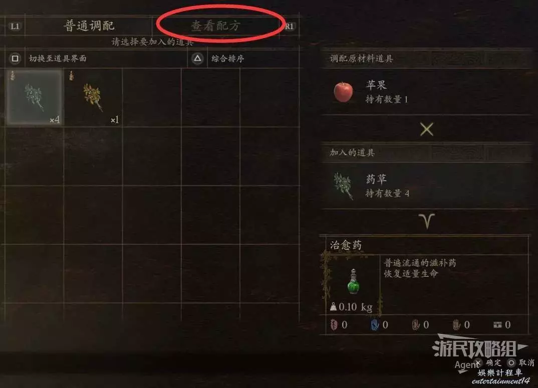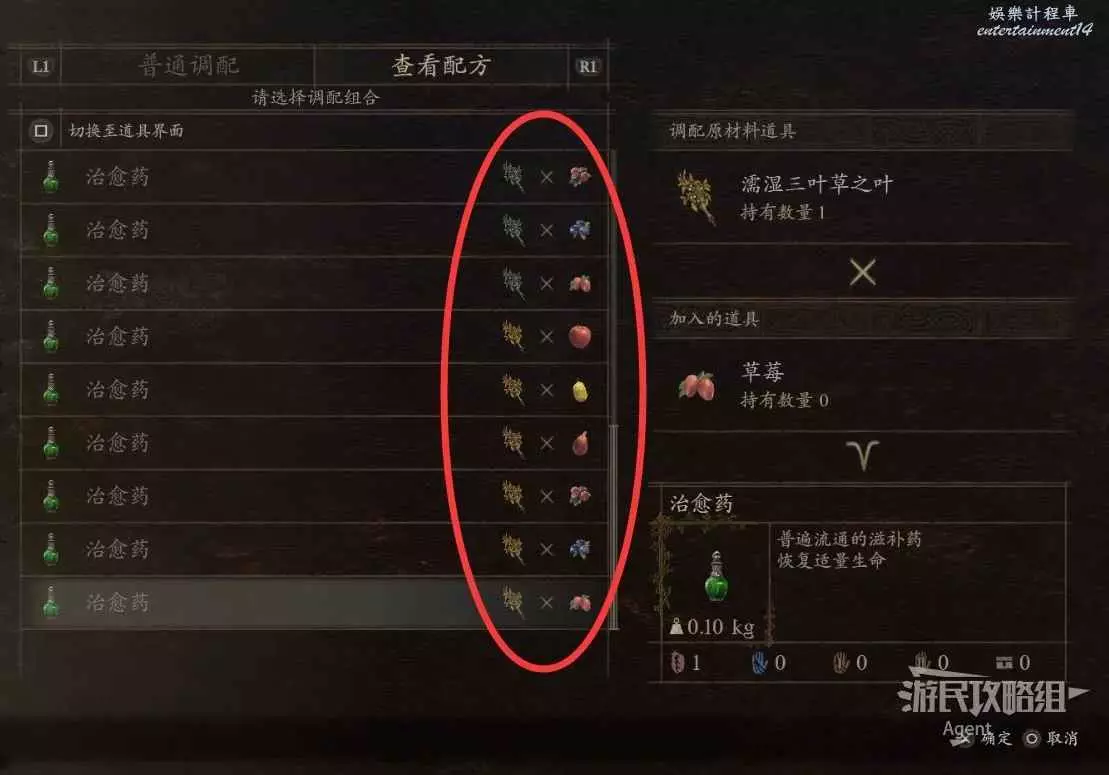 查看配方發現,多種水果和藥草都可以合成治癒藥。