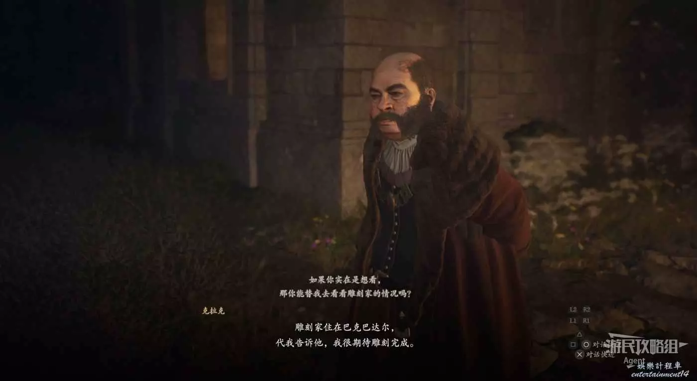 跟隨奧斯卡來到古戰場遺址的安魂塔,他敲鐘之後任務完成,會送你“戰場遺址的舊鑰匙”。