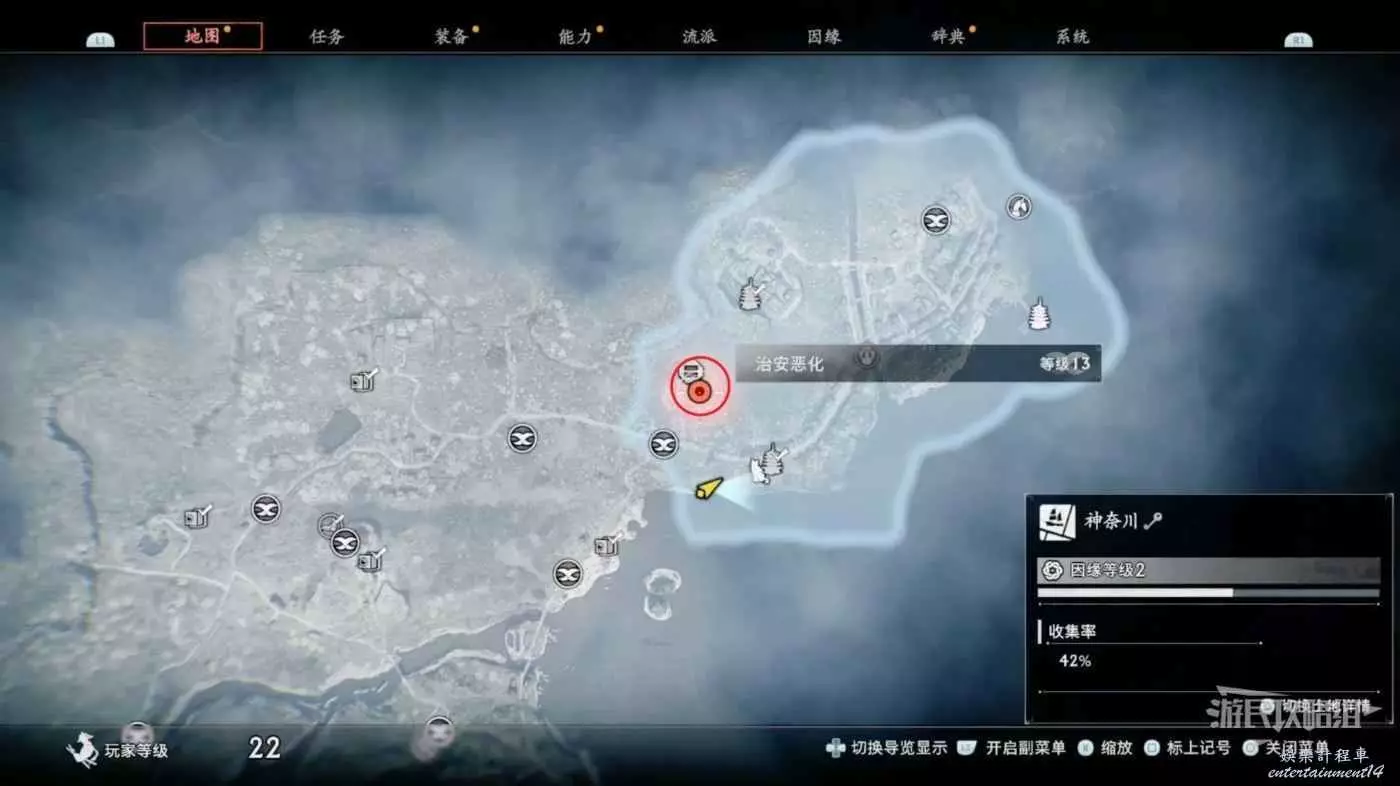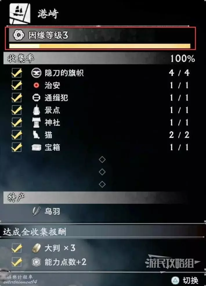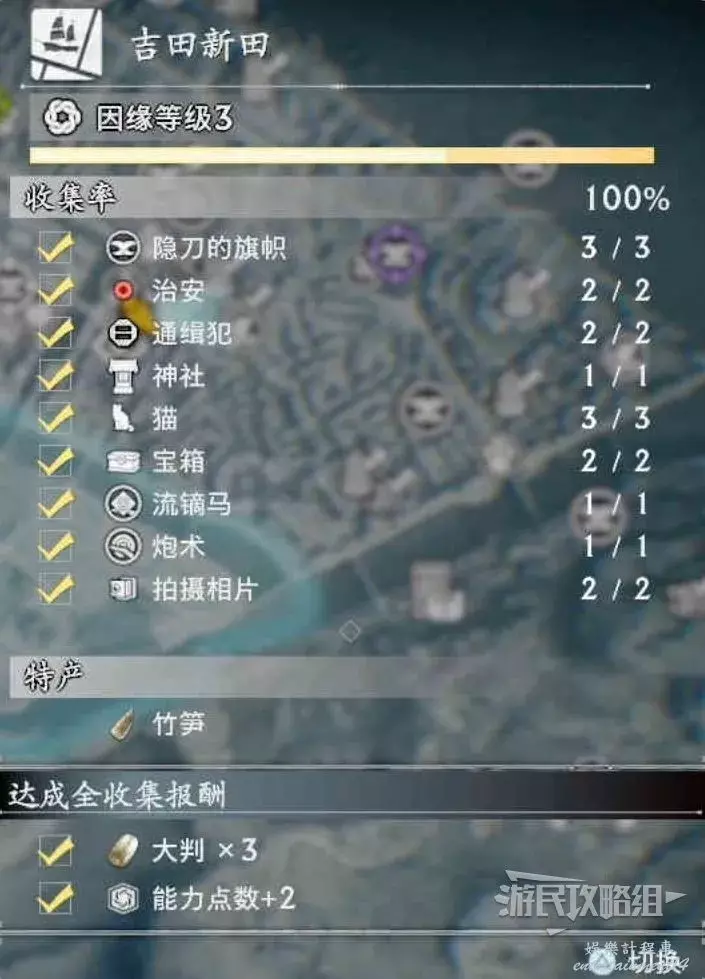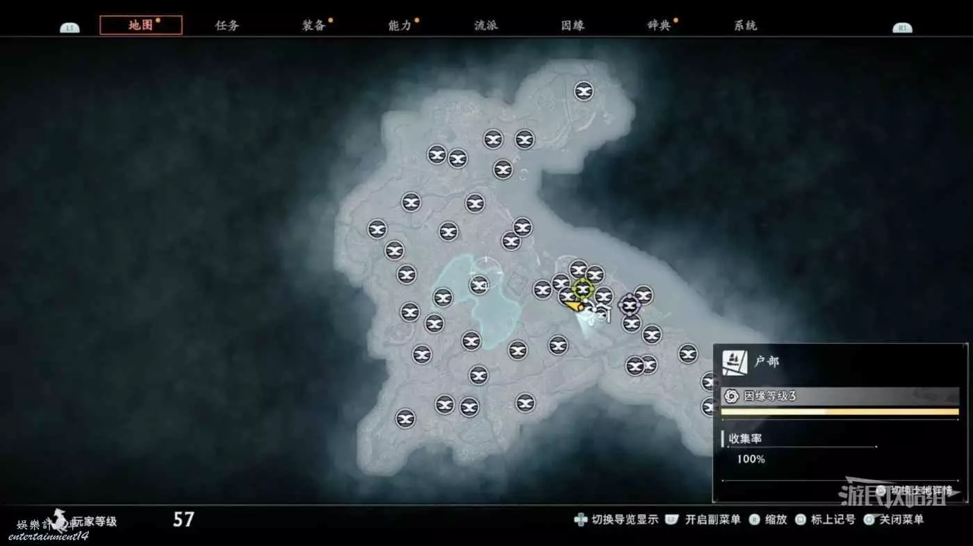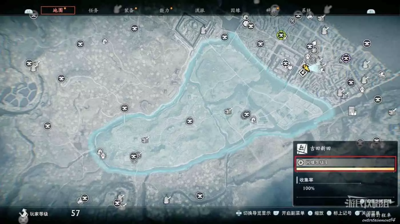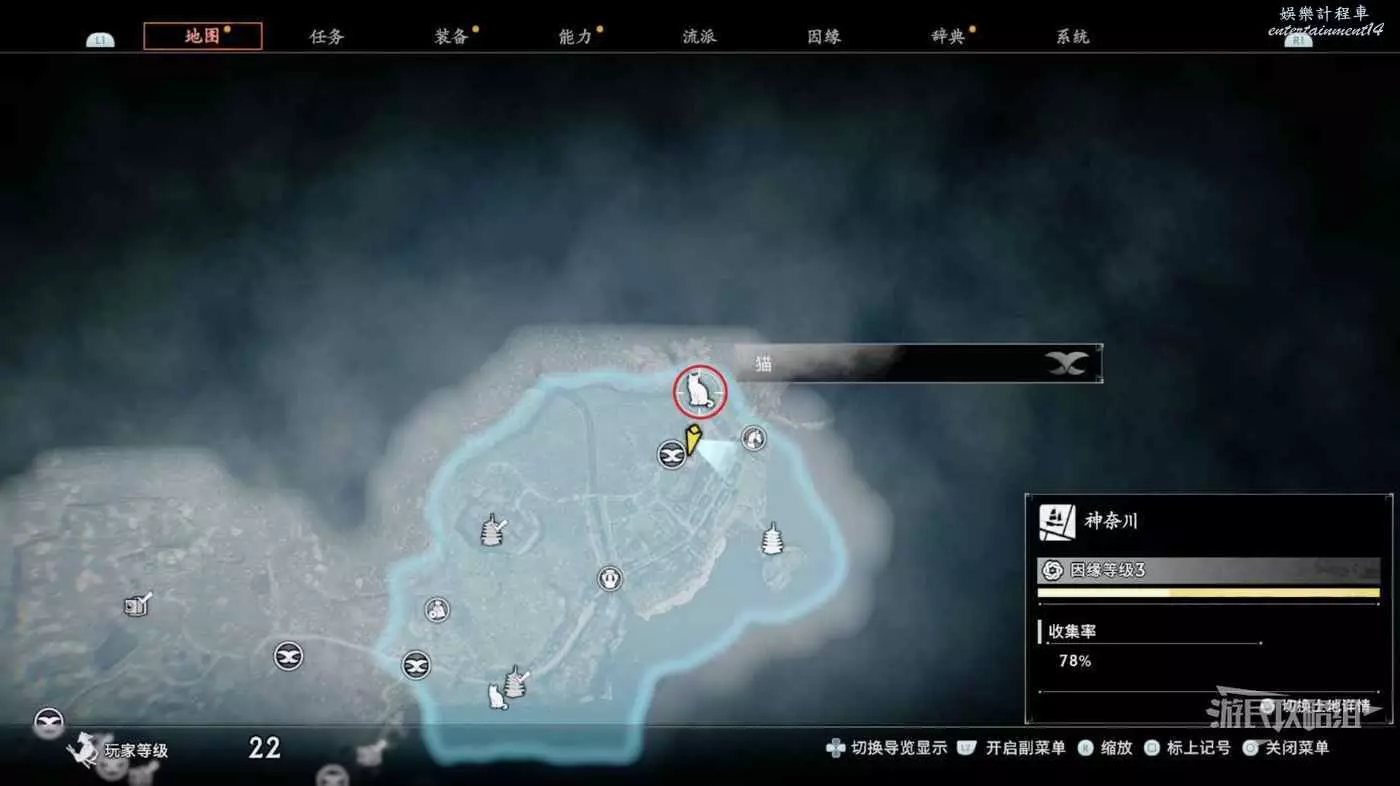 地圖探索最重要的便是提升此地的姻緣等級,當某個地區的姻緣等級到達滿級後,此地的所有收集要素都會在地圖上為你標註出來。