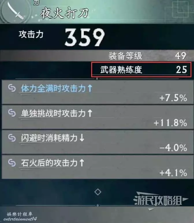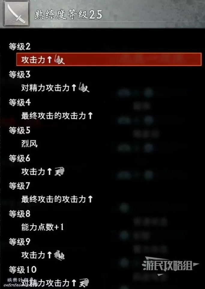 熟練度等級會提升此類型武器的攻擊力數值,並解鎖特殊攻擊。