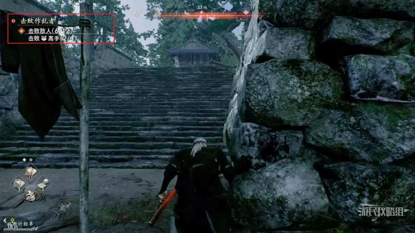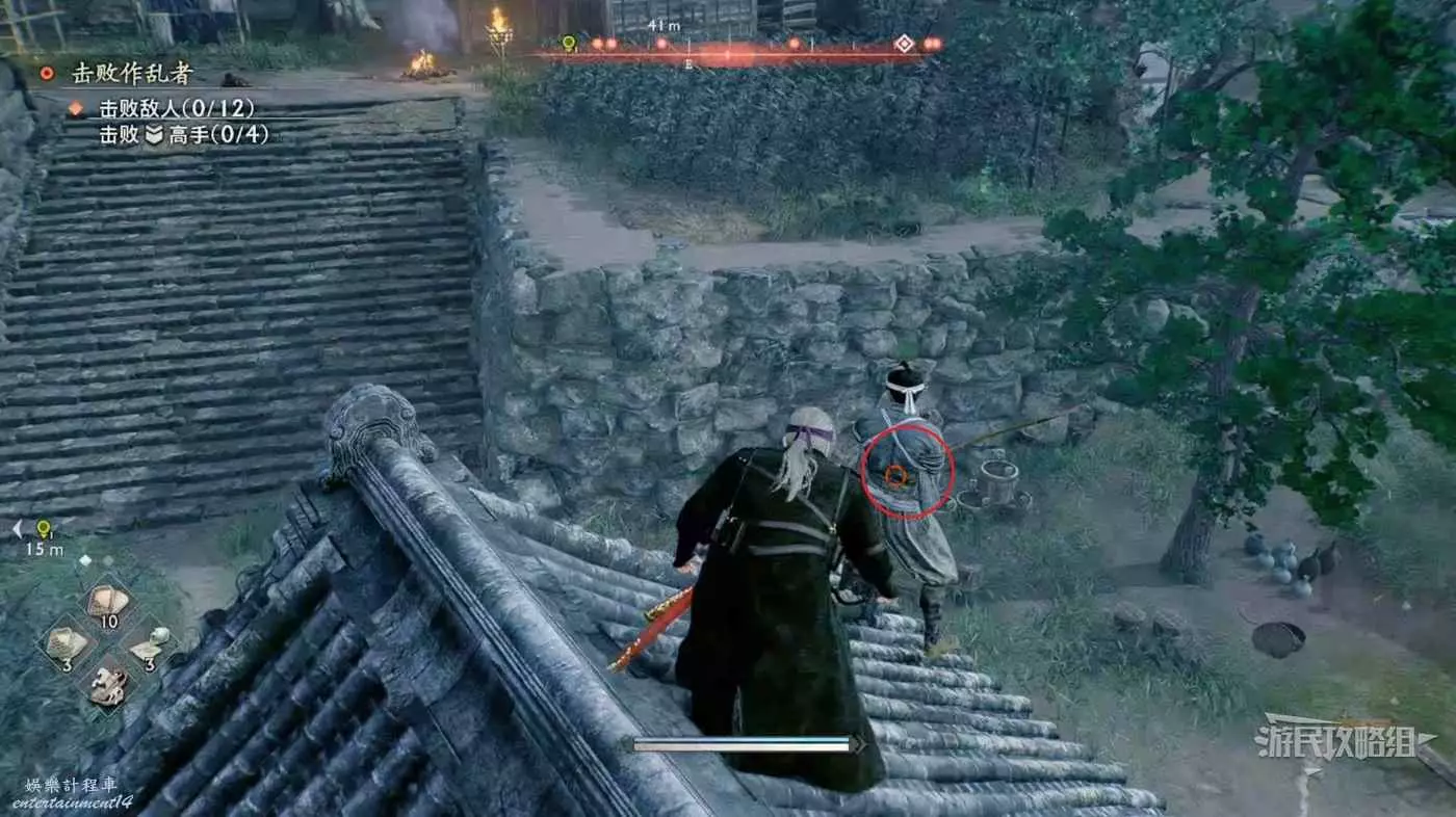 暗殺方面需要潛行到敵人的身後,當看到敵人身上有一個紅色的三角時按下三角鍵即可一擊斃命敵人,但要注意暗殺只會消耗高手一半的血量。·