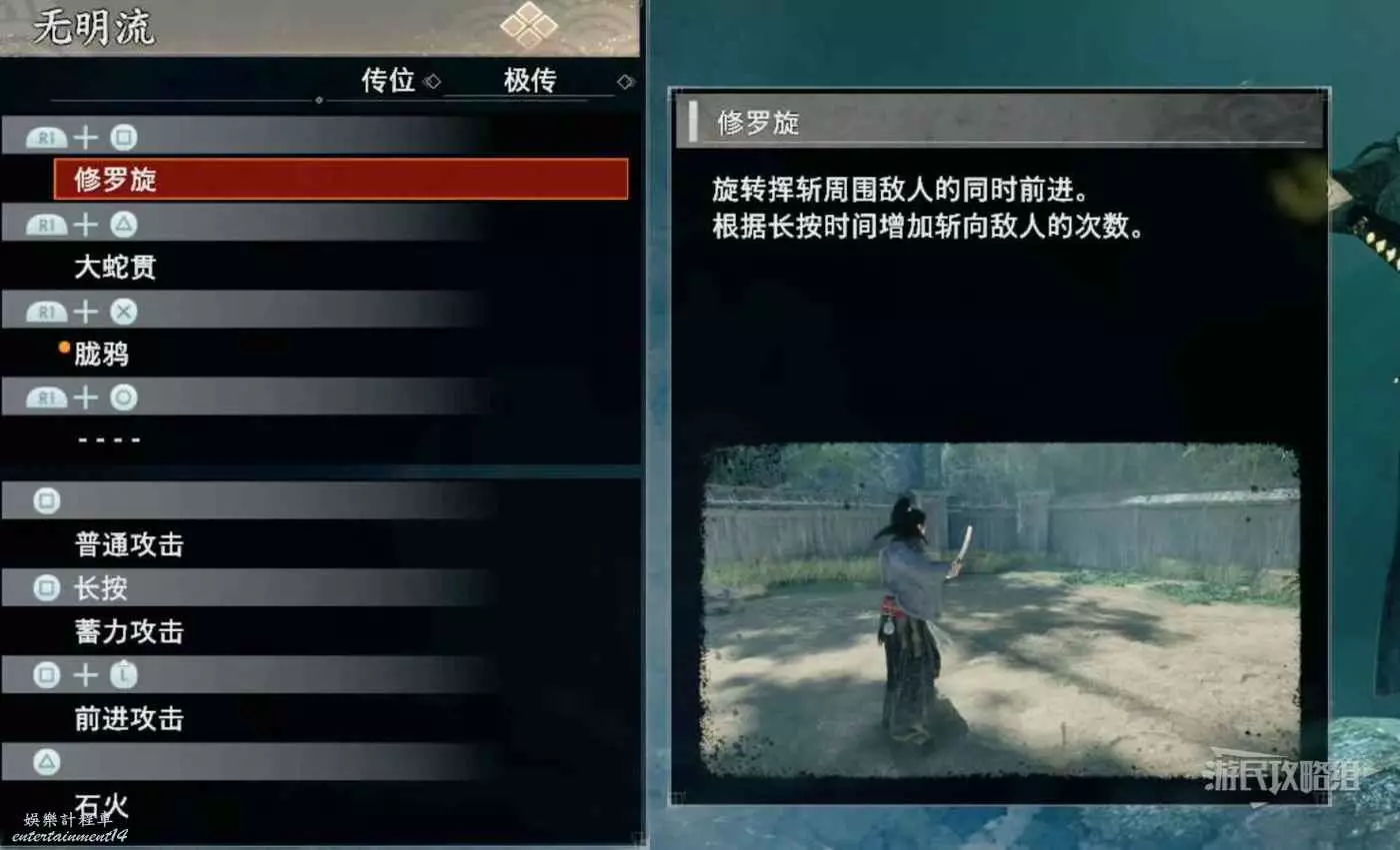 5、當武器熟練等級到達某個值會解鎖特殊招式“紫電”與“烈風”,紫電可以,烈風可以