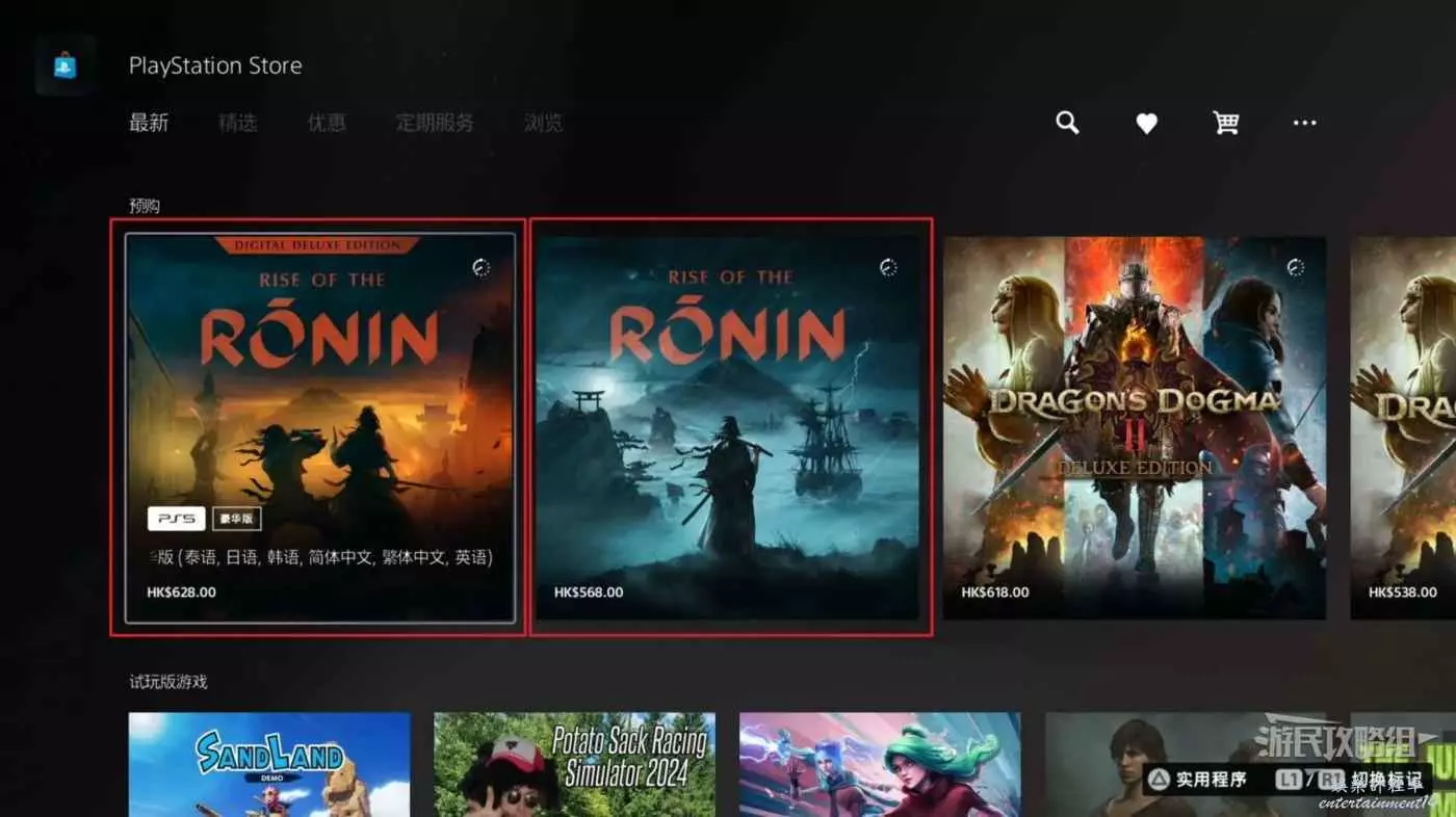 2、打開PS5,打開商店,在最新的子標籤中往下滑到預購頁面,此處可以選擇兩個不同的版本。
