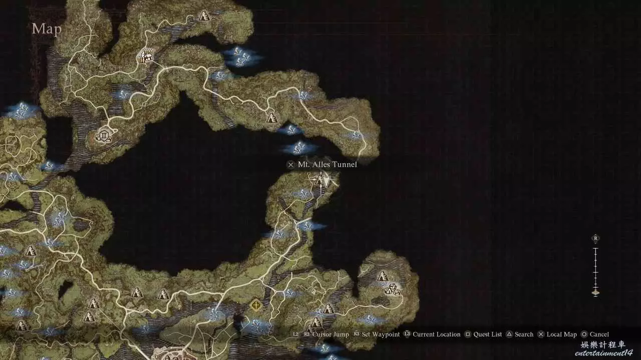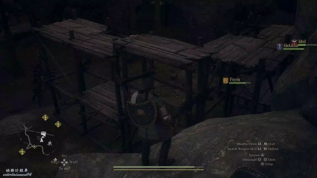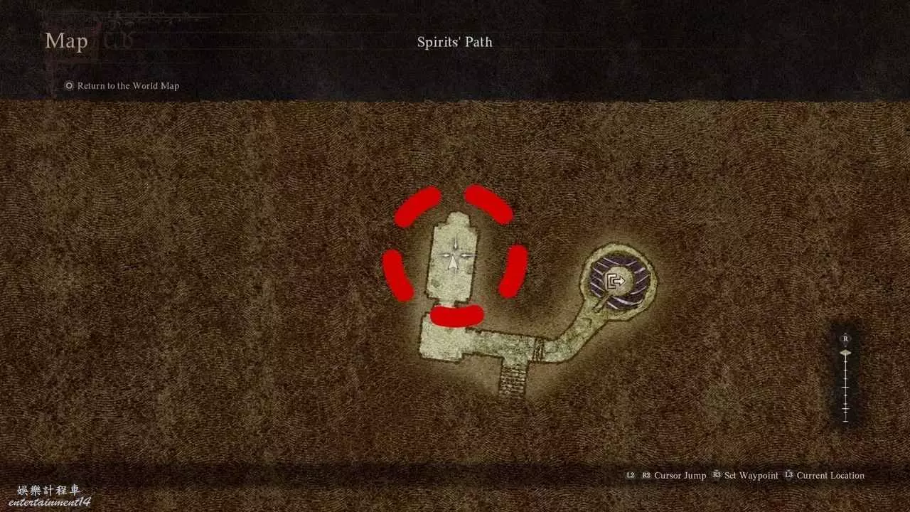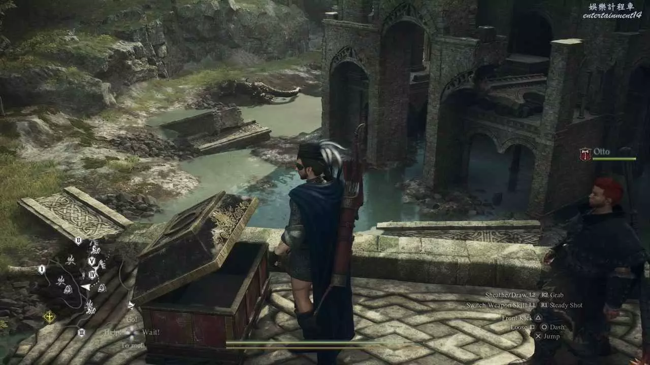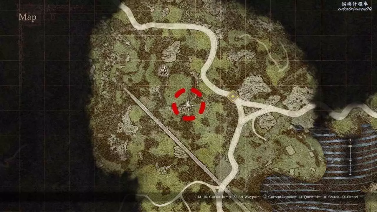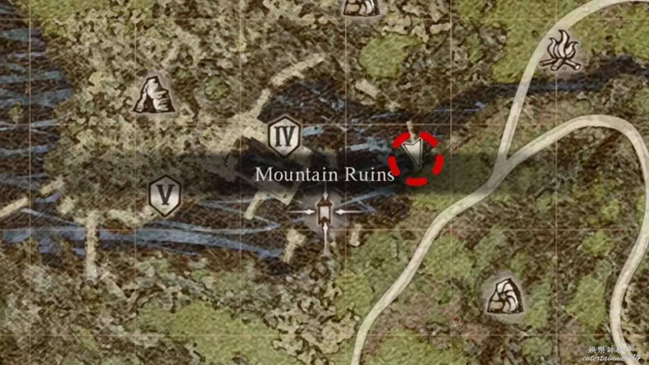 前往山中廢墟,跳到右側的廢墟平臺上。