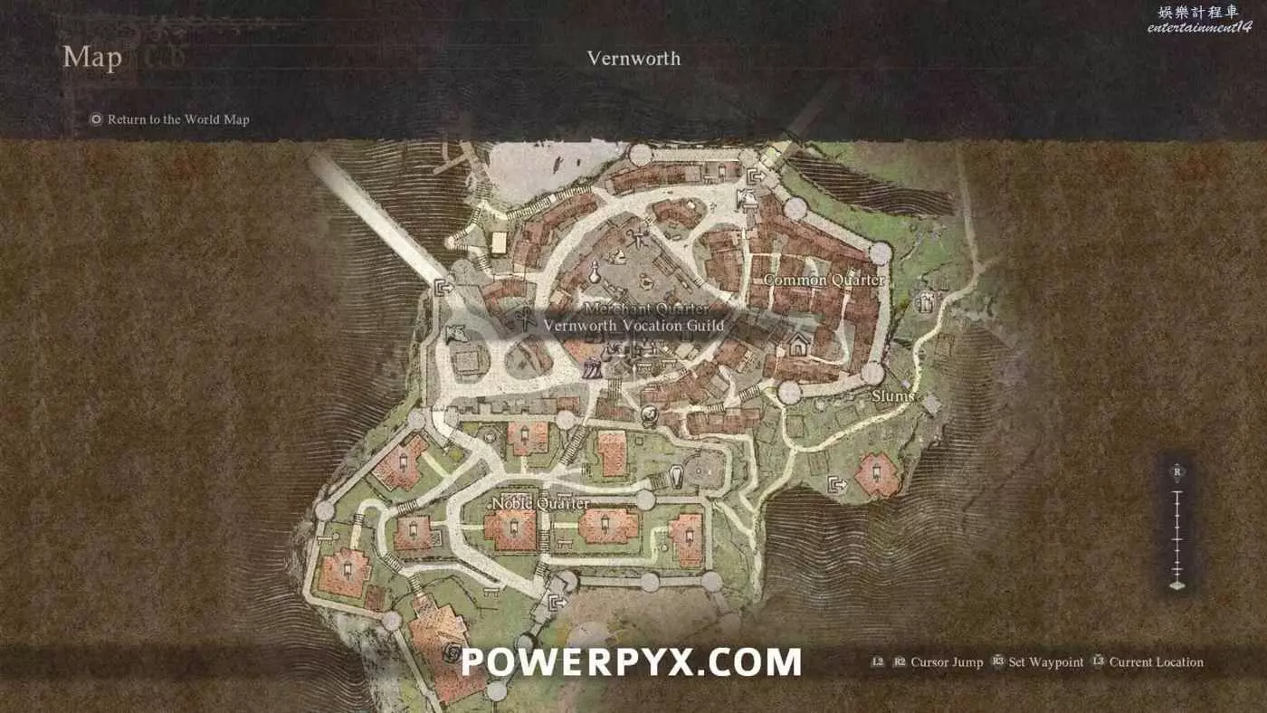 在維綸沃斯的公會大廳也可以更換職業。位元於地圖北半部分的主要城鎮,維綸沃斯職業公會就在明星露滴酒館的西邊。
