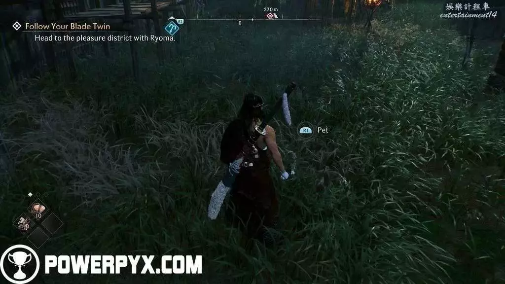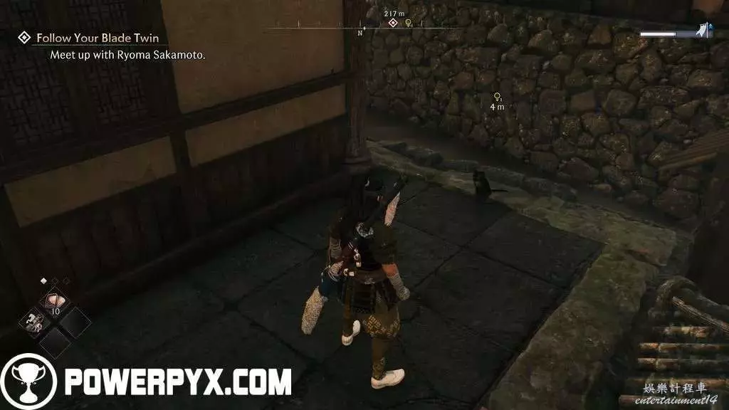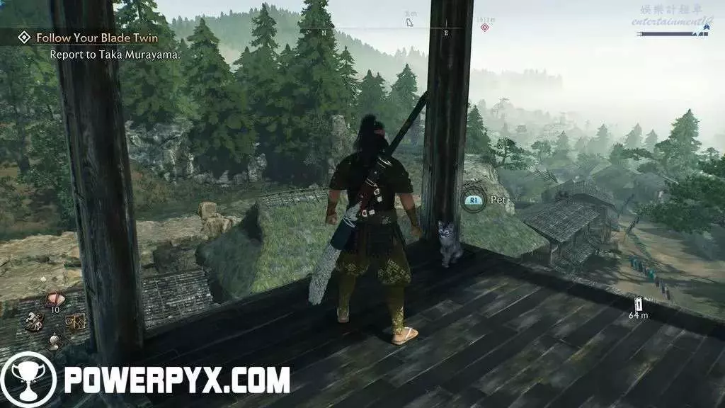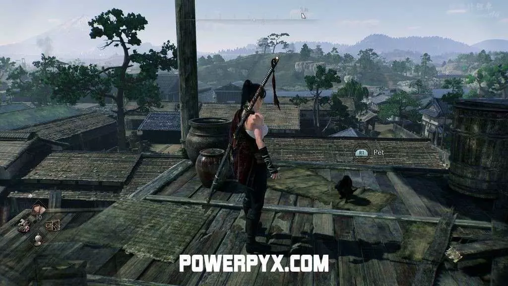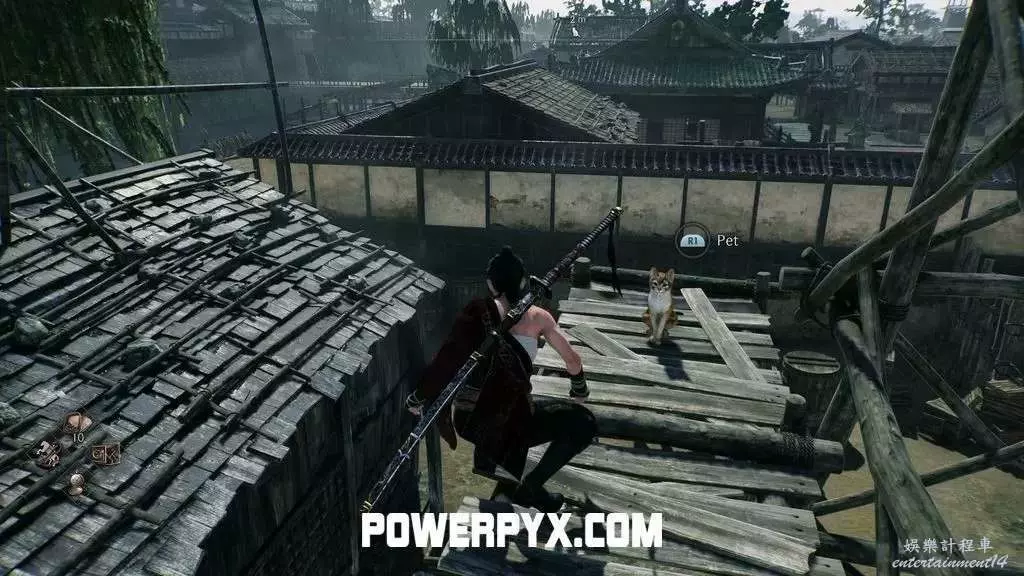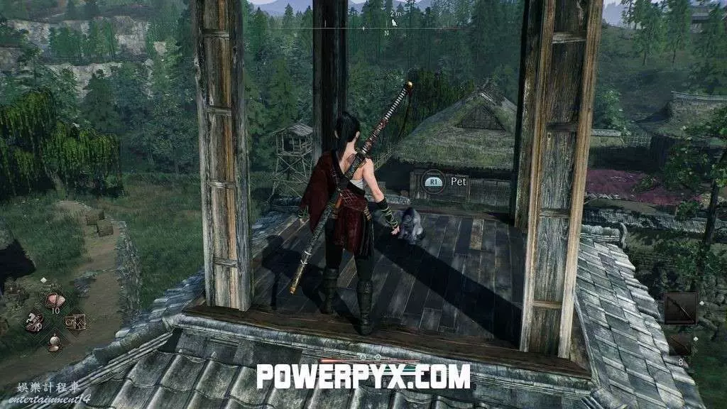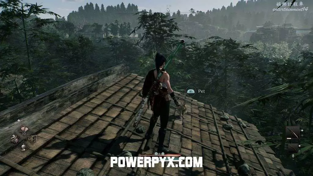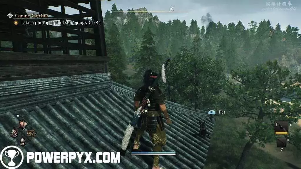 在房子頂上,儘量用L3潛行慢慢靠近,以免驚嚇到它。