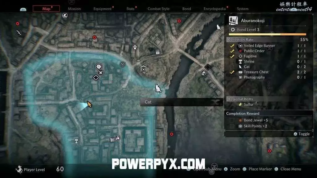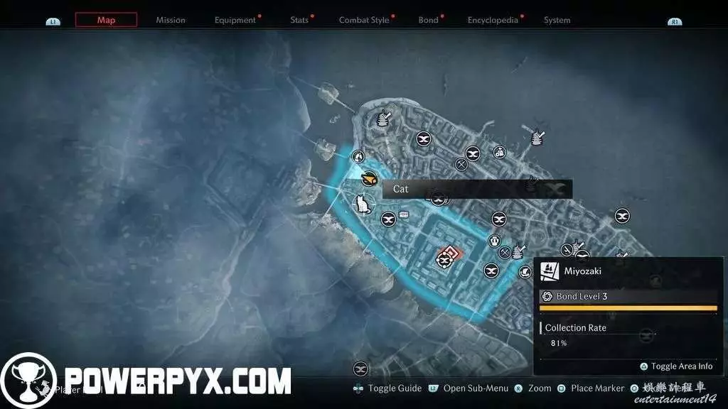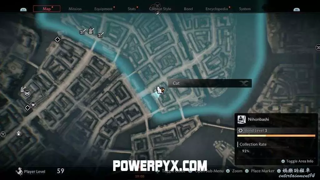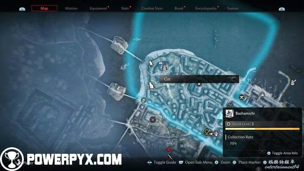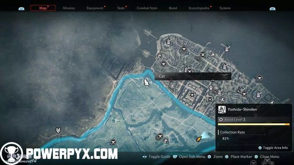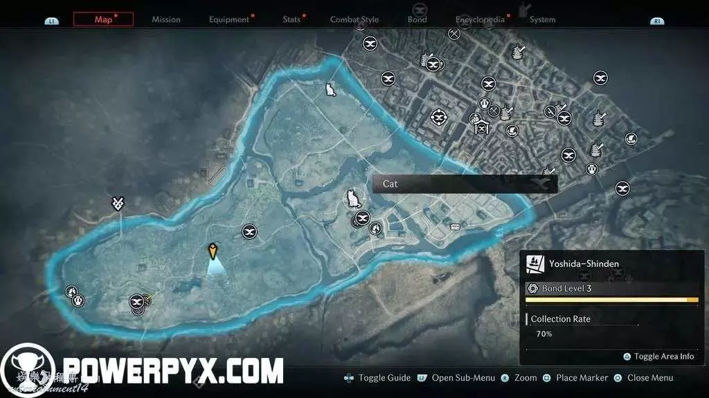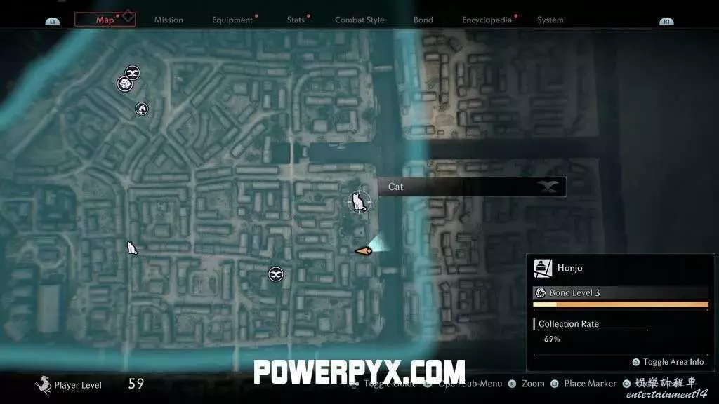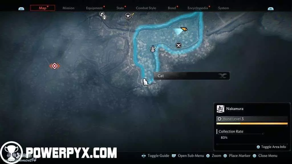 所有的貓咪都不用擔心漏掉,通關後依然可以自由探索並收集。每找到一隻貓咪後,只需撫摸它就能“收集”,然後在橫濱的小販處換取獎勵,也可以在據點中兌換獎勵(跟隨主線解鎖)。注意三花一旦受到驚嚇就會立刻逃走,所以要悄悄接近。其他品種的貓不會被聲音驚擾,可以正常靠近。