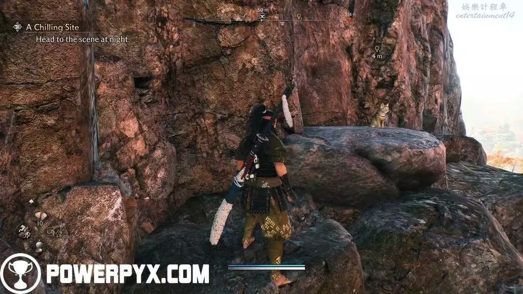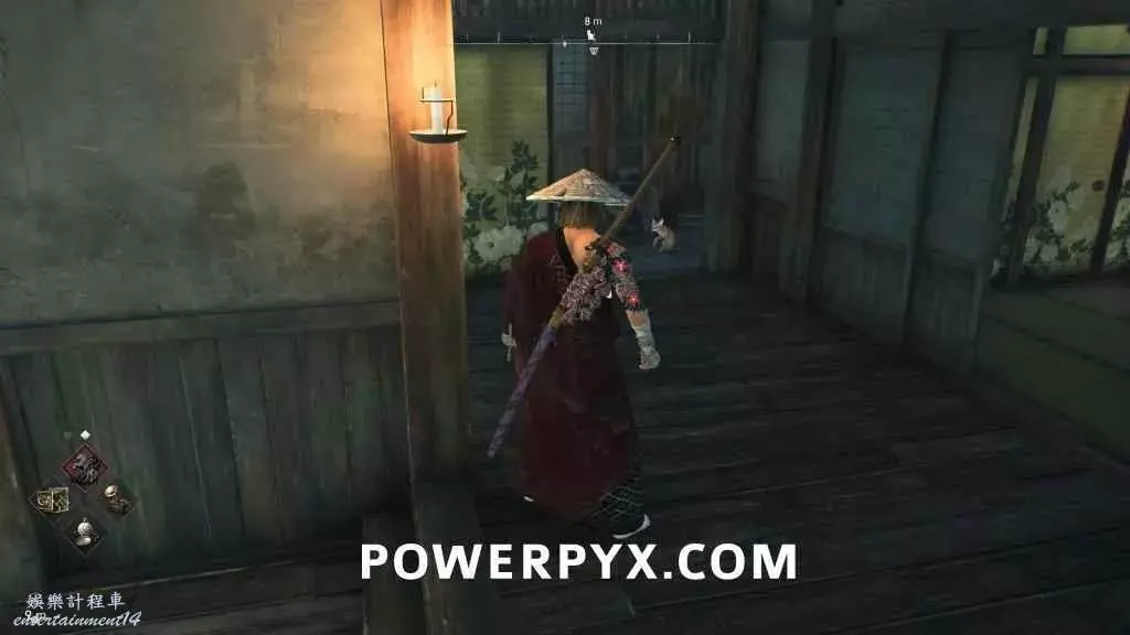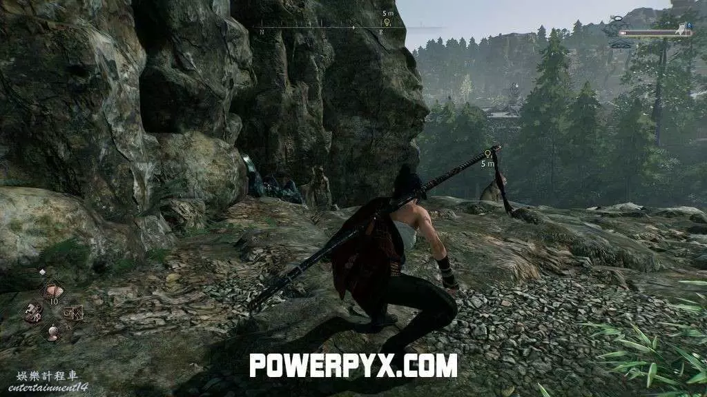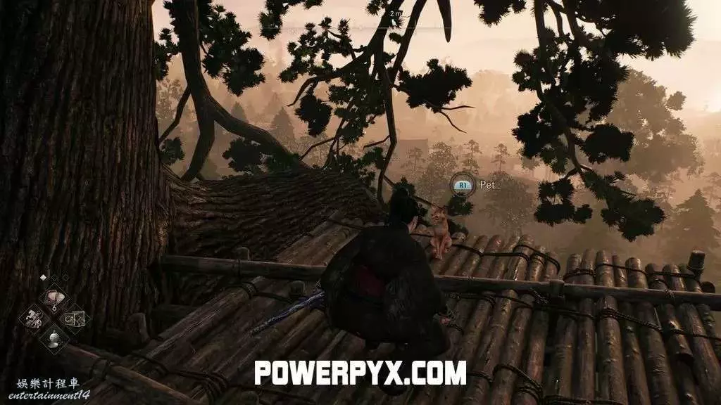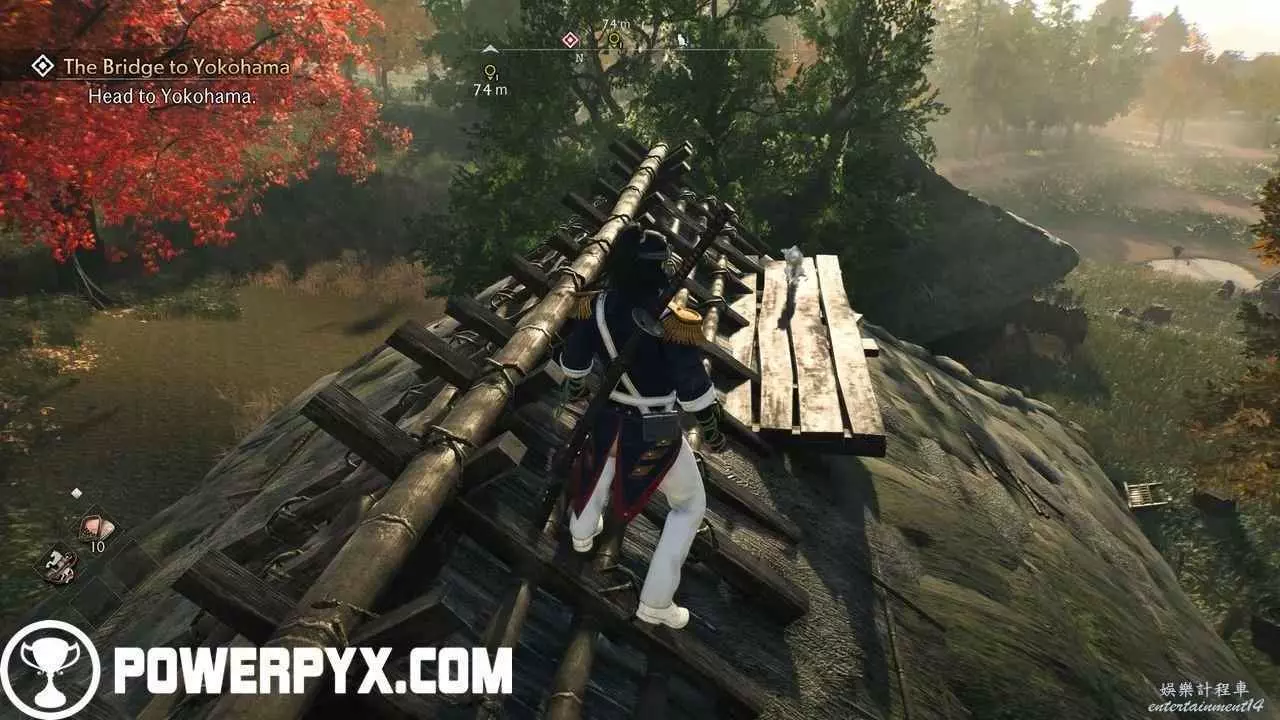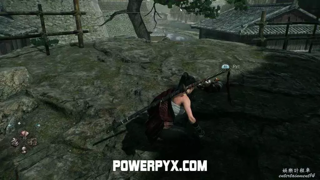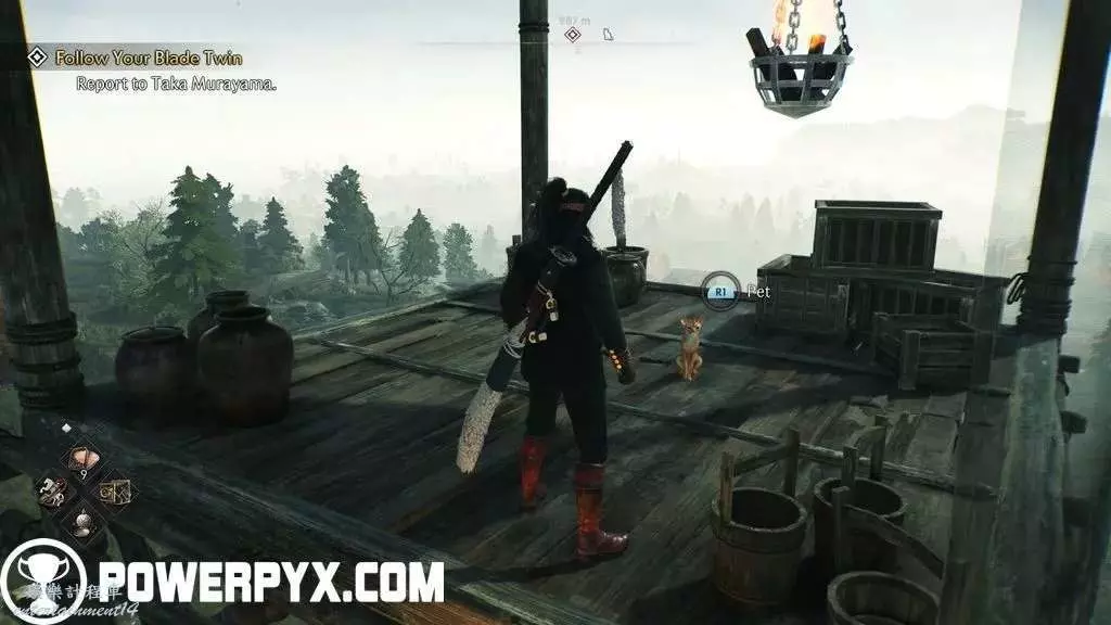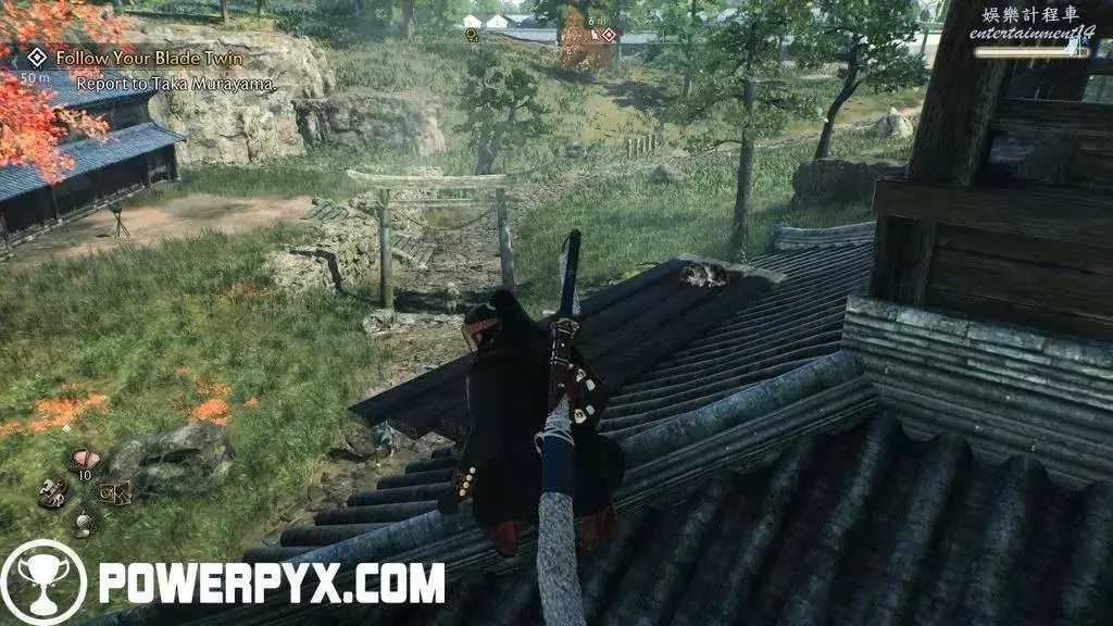 位於神社後面的樹上,利用鉤繩先爬上樹。
